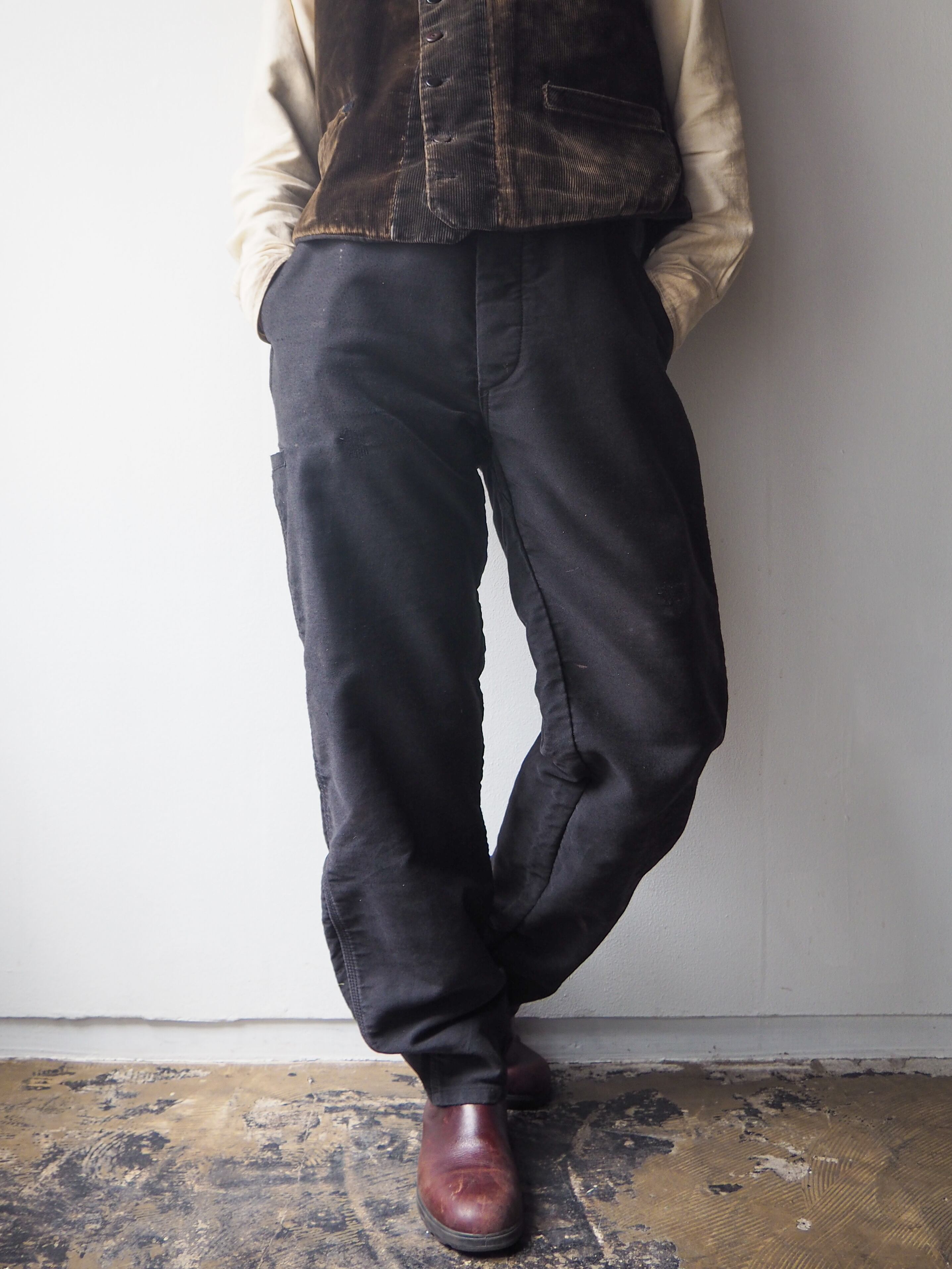 南仏の老舗ワークウェアブランドLE LABOUREUR(ル・ラブルール)より、1960年代頃のブラックモールスキン素材を使用したワークトラウザーのご紹介です。