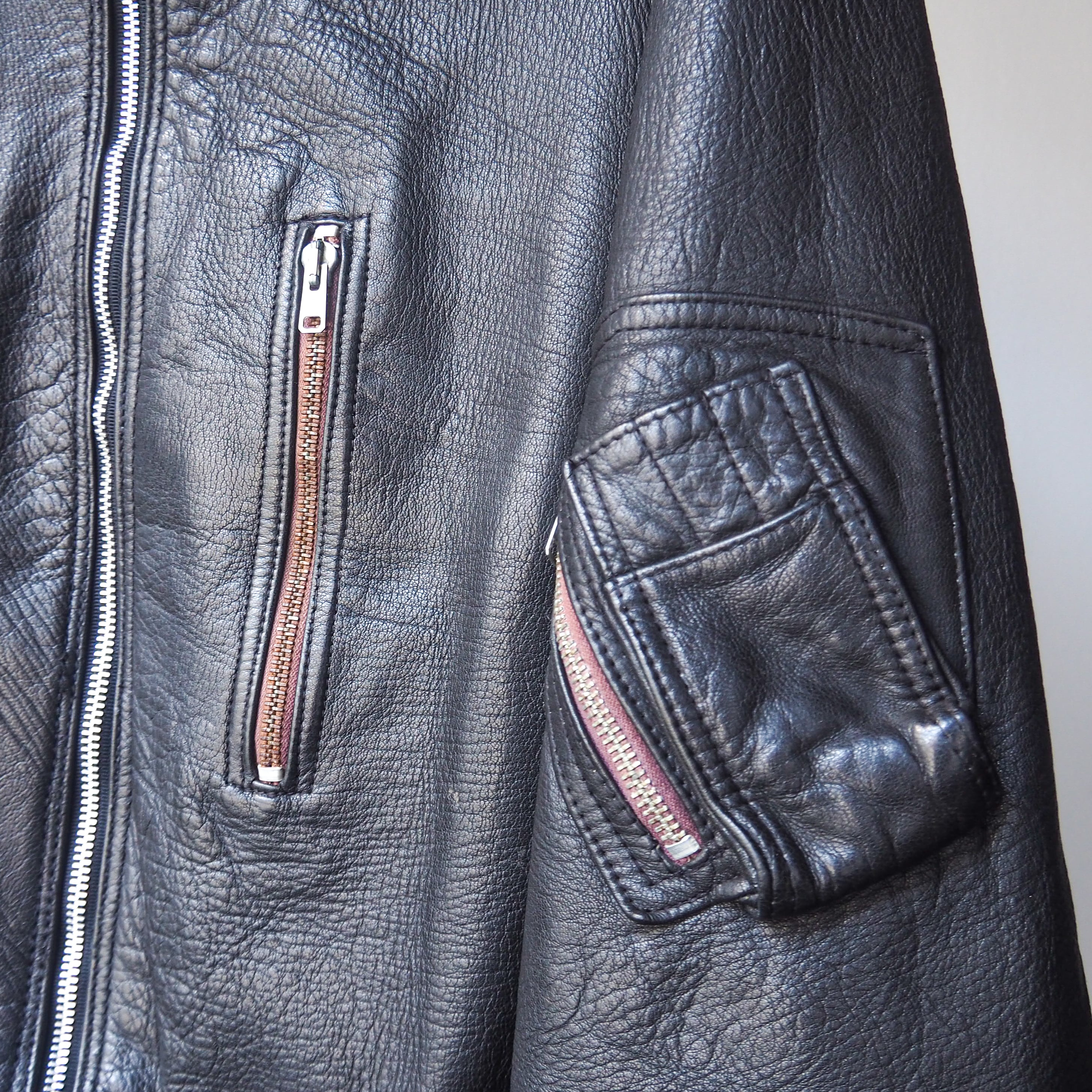 上品な艶感漂うクールなブラックレザーにかのメゾンも惚れ込んだアシンメトリーなデザイン設計。その背景を抜き差しにしてもシンプルに格好良く上質なレザージャケットです。