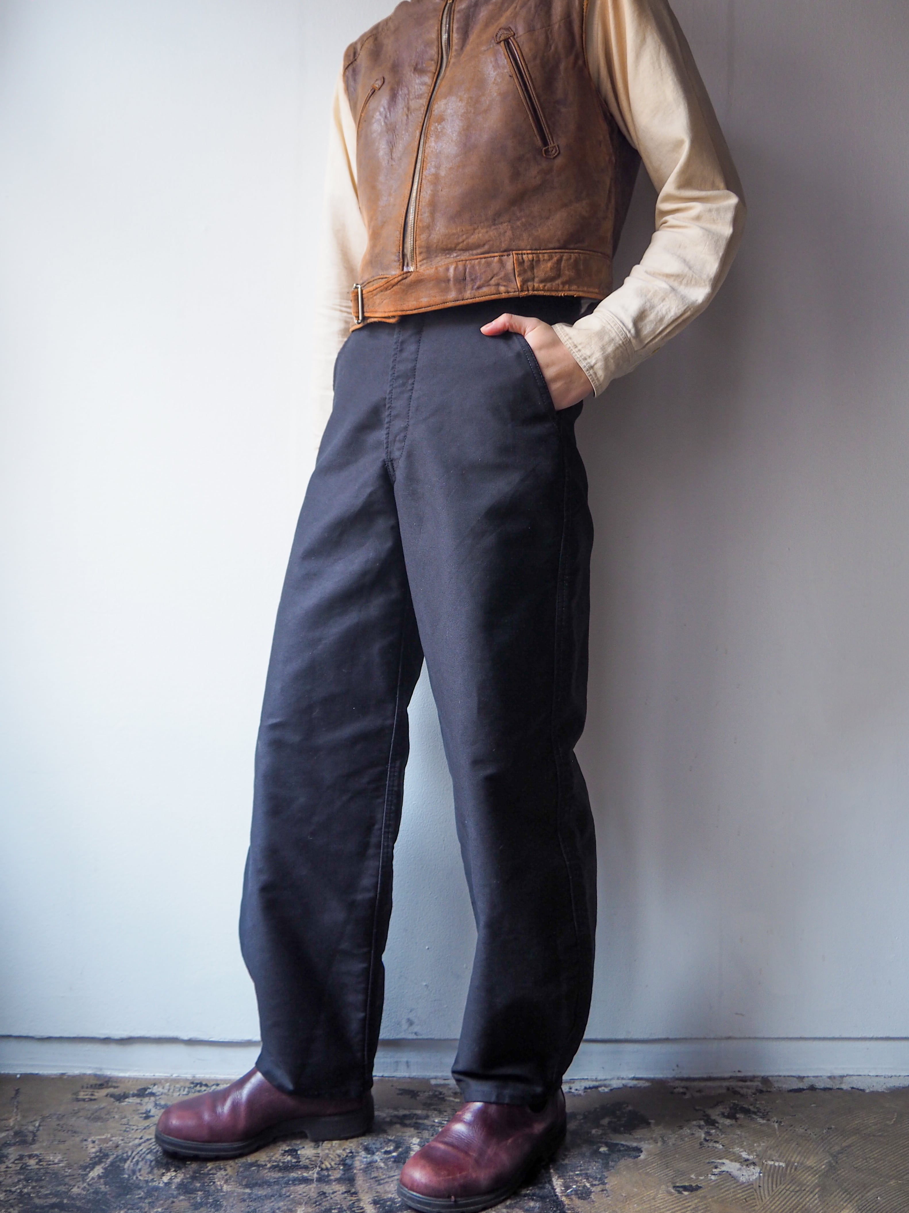南仏の老舗ワークウェアブランドLE LABOUREUR(ル・ラブルール)より、1960年代頃のブラックモールスキン素材を使用したワークトラウザーのご紹介です。