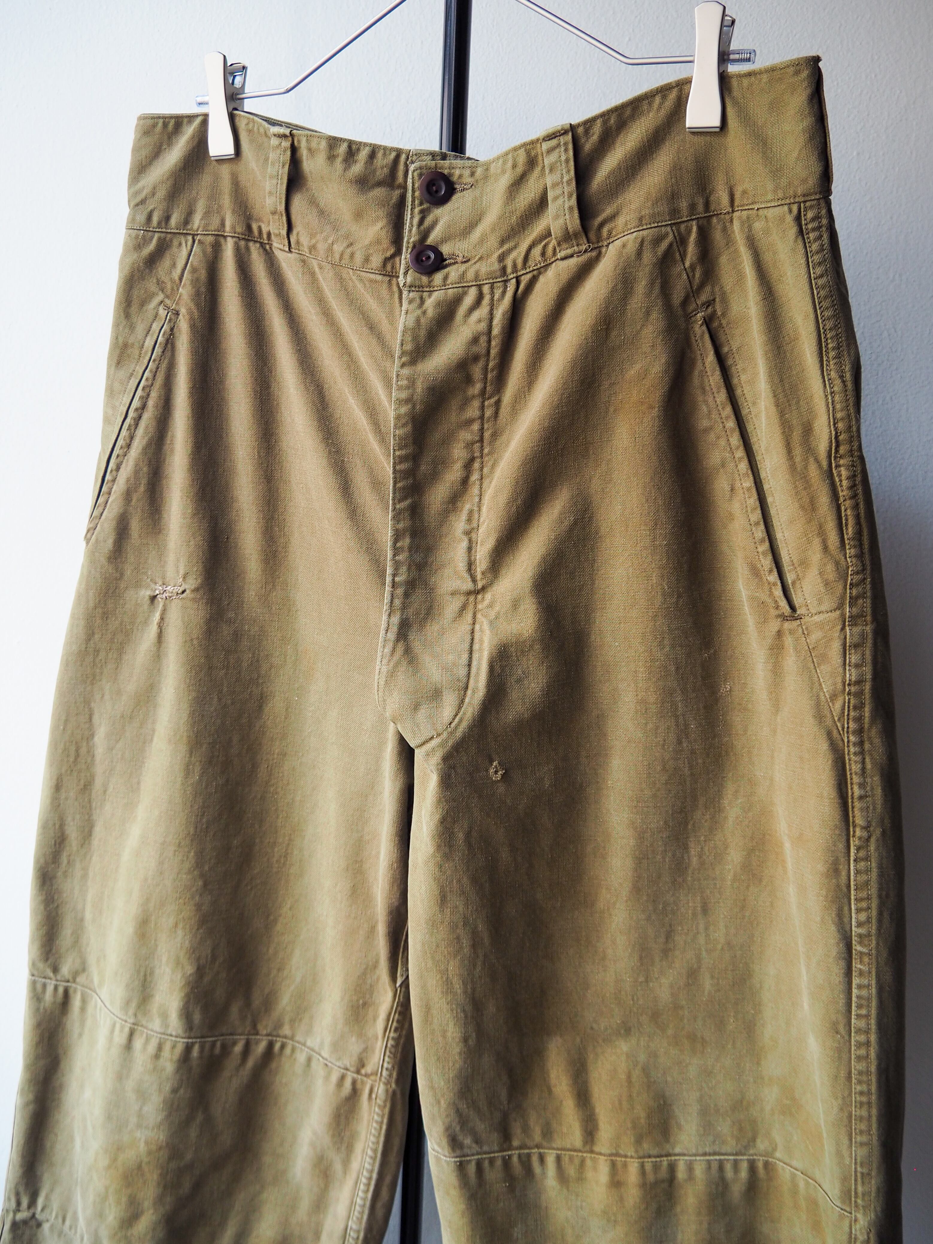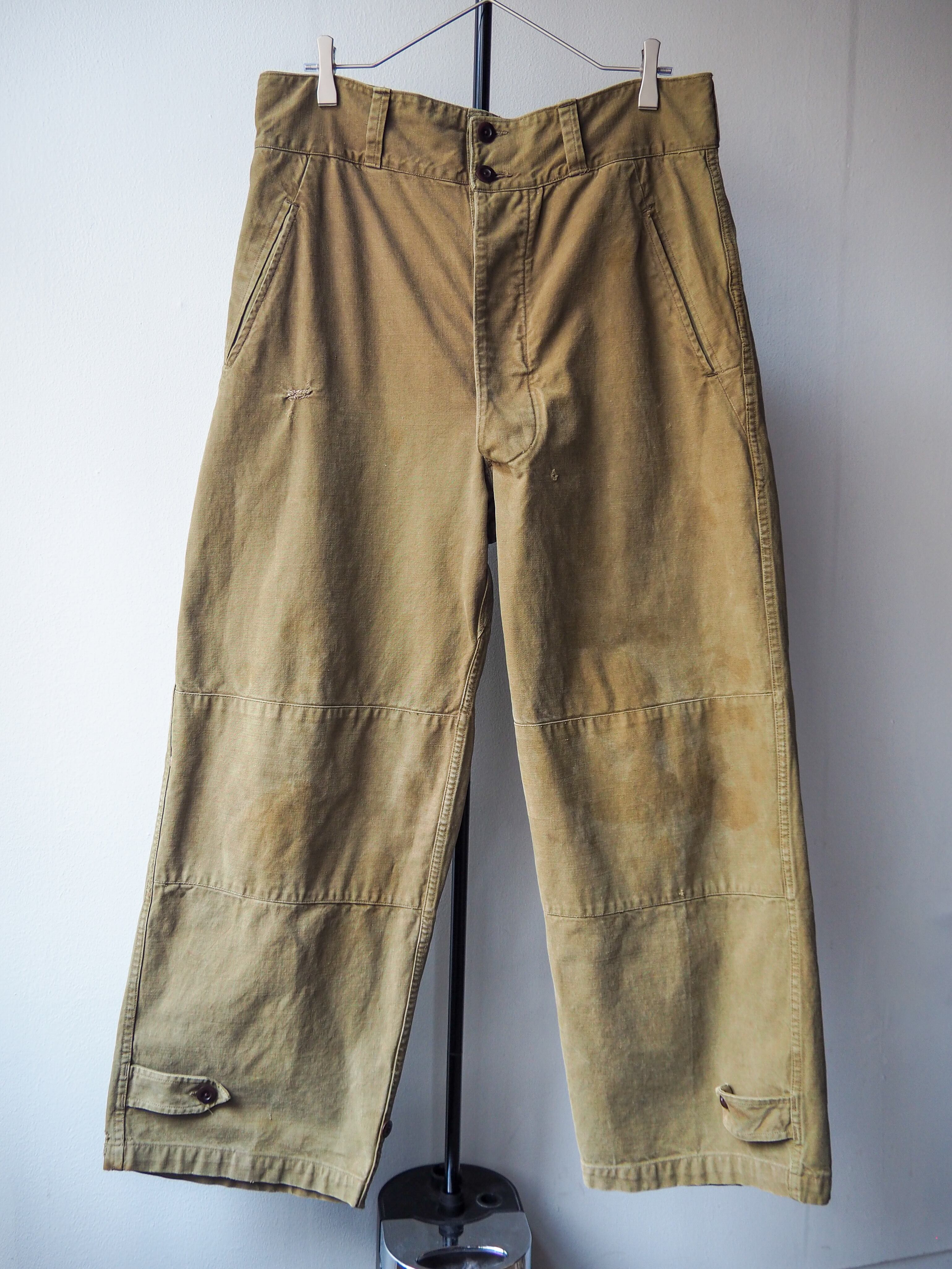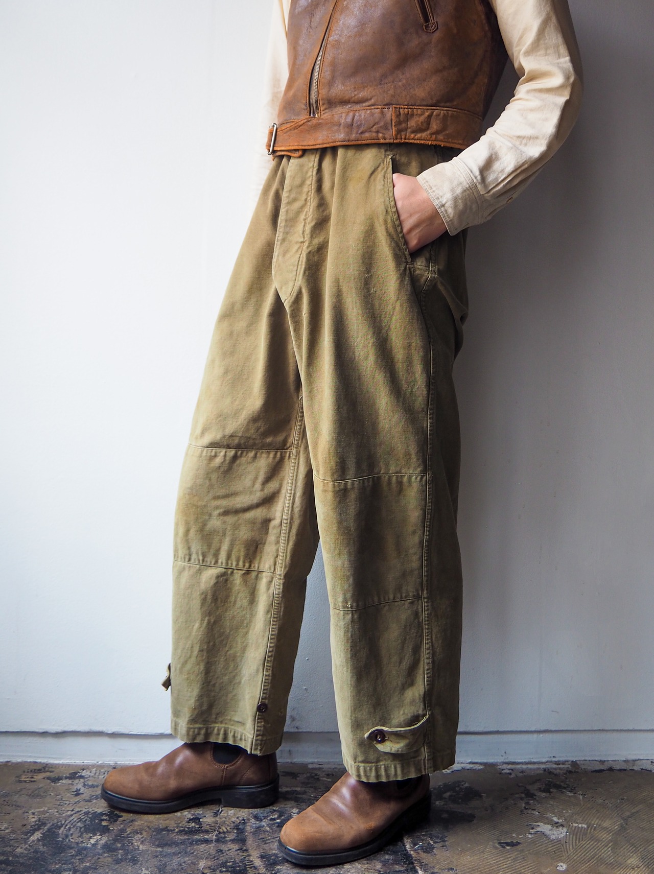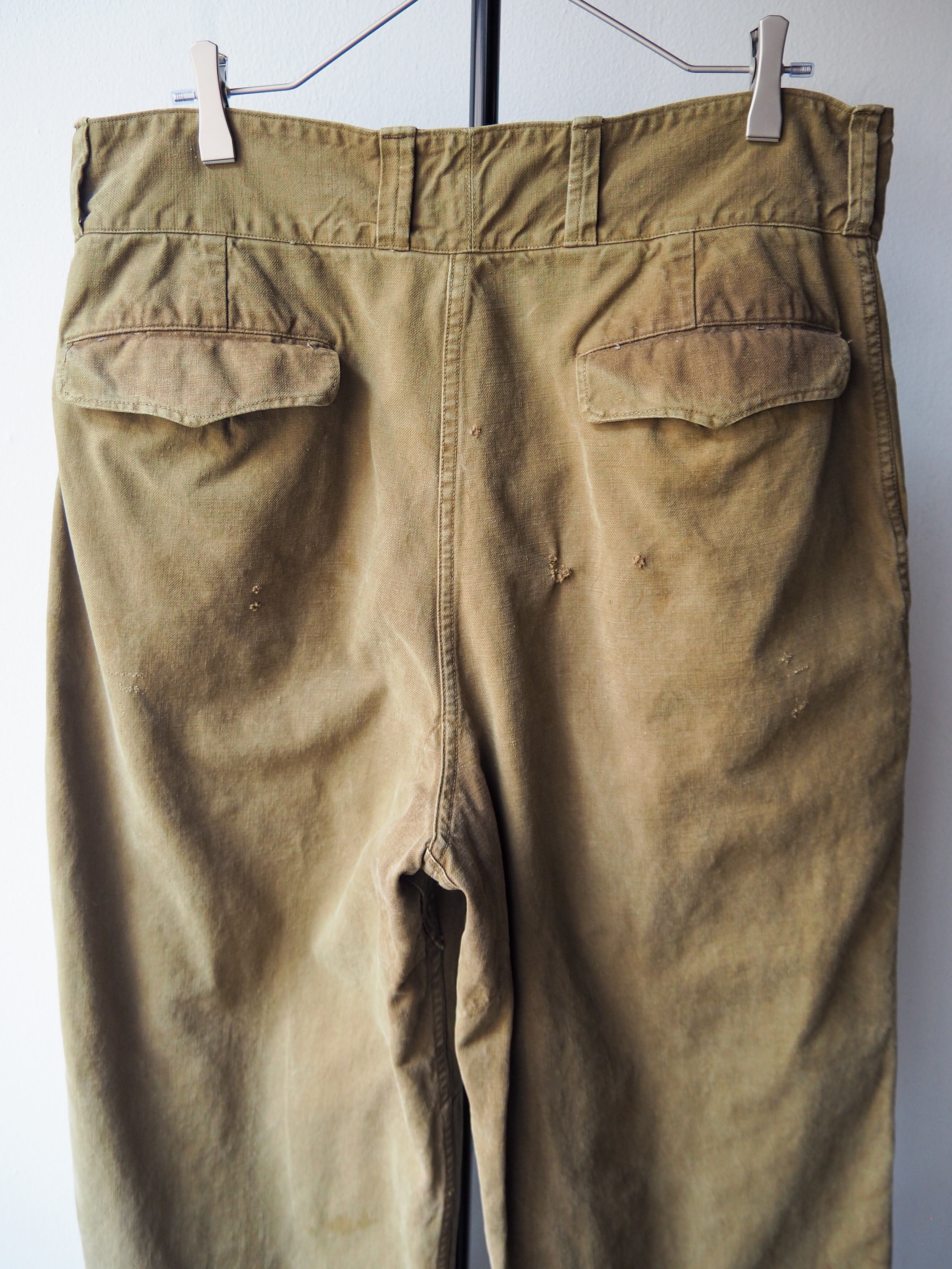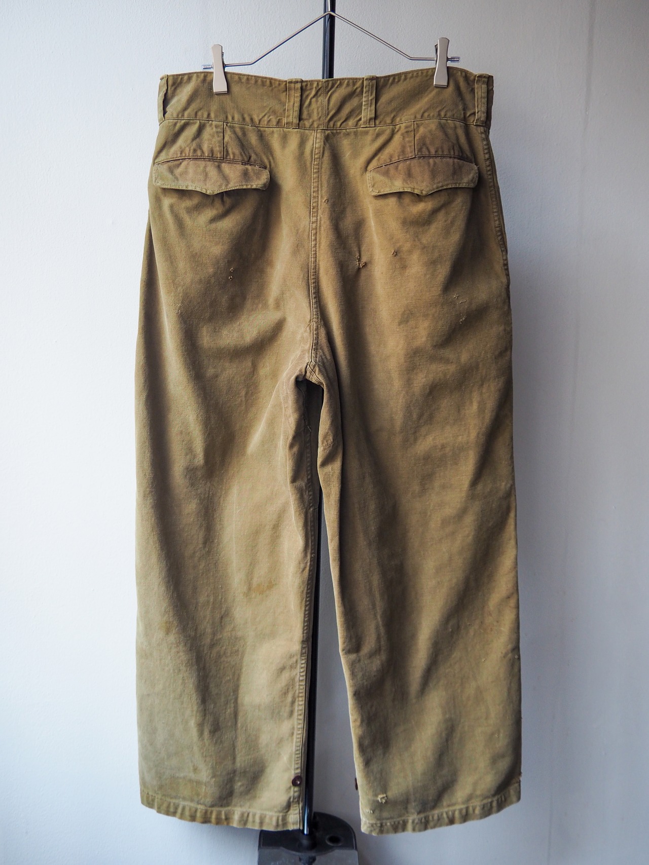 フラップ裏や股の当て布、ポケットの仕立て、裾のアジャスターなど細部まで丁寧に作り込まれたディテールとデザイン性の高さ。そしてコットン素材特有の経年変化と、軍モノの中でも「名作」と言われる所以が随所に感じられます。
