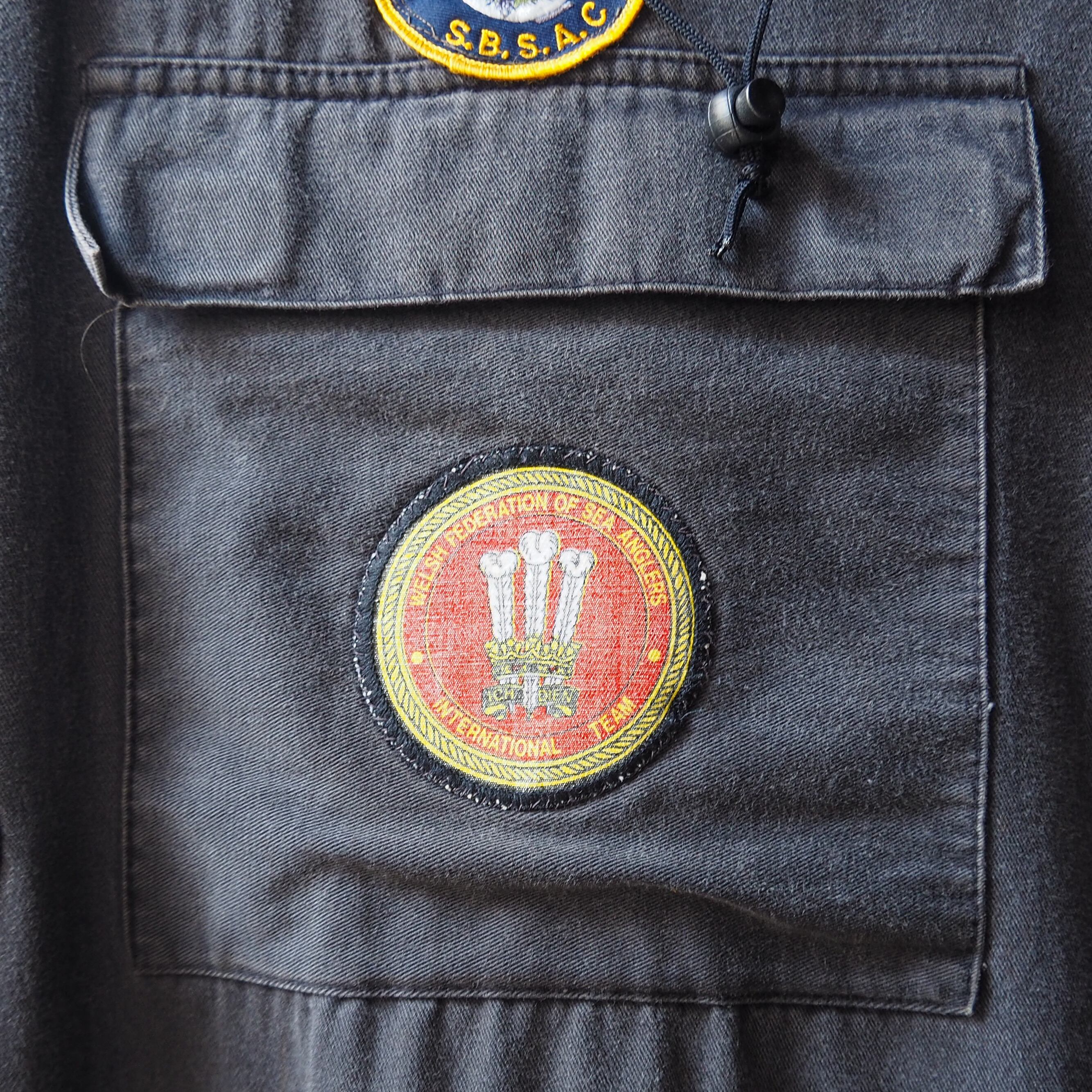 イギリスの各種ダイビング、アイルランドの釣り連盟等至る所にワッペンが貼られています。背面の刺繍はおそらく拠点となっていたウェールズのダイバー団体のもの。