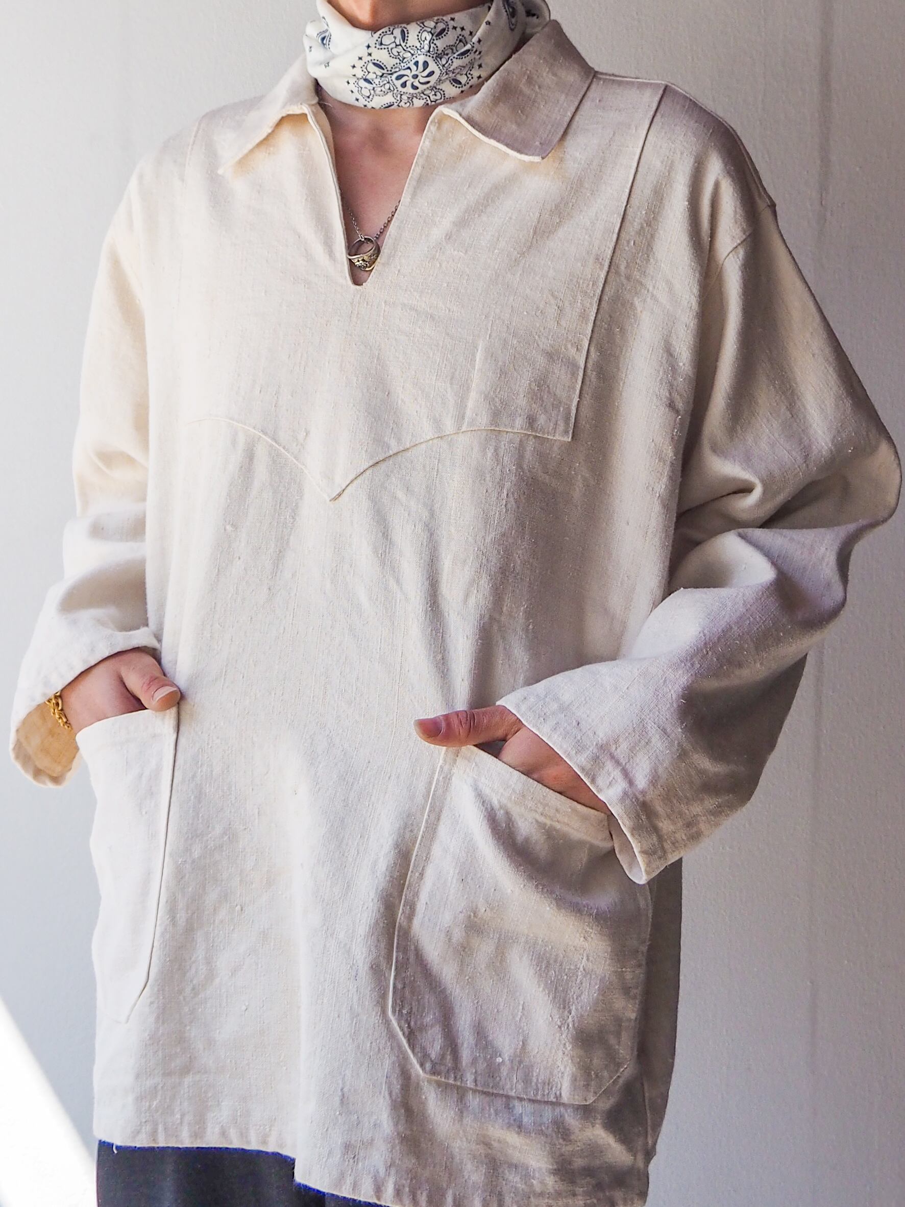 1940-50s French Fabric Cotton×Linen Fisherman Smock