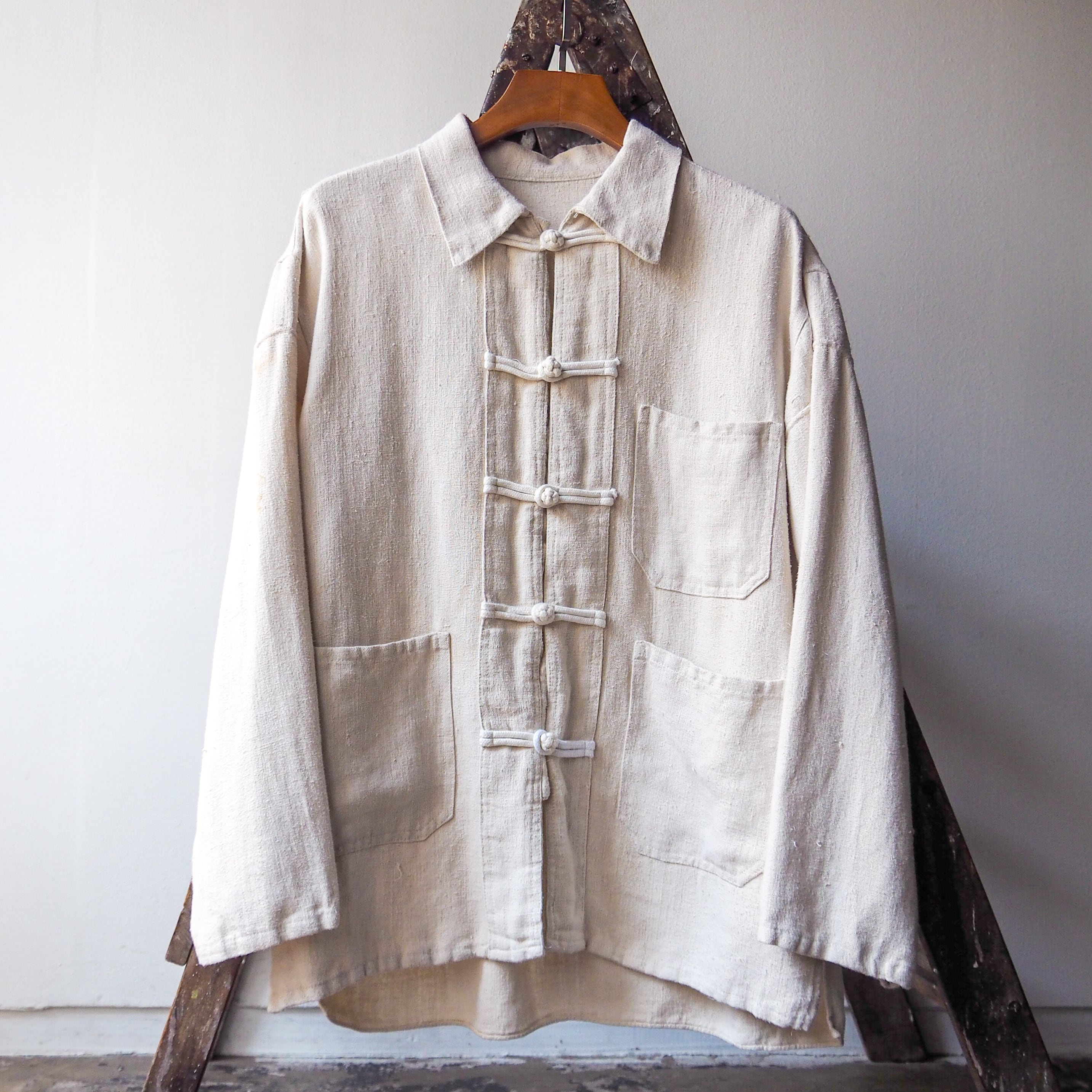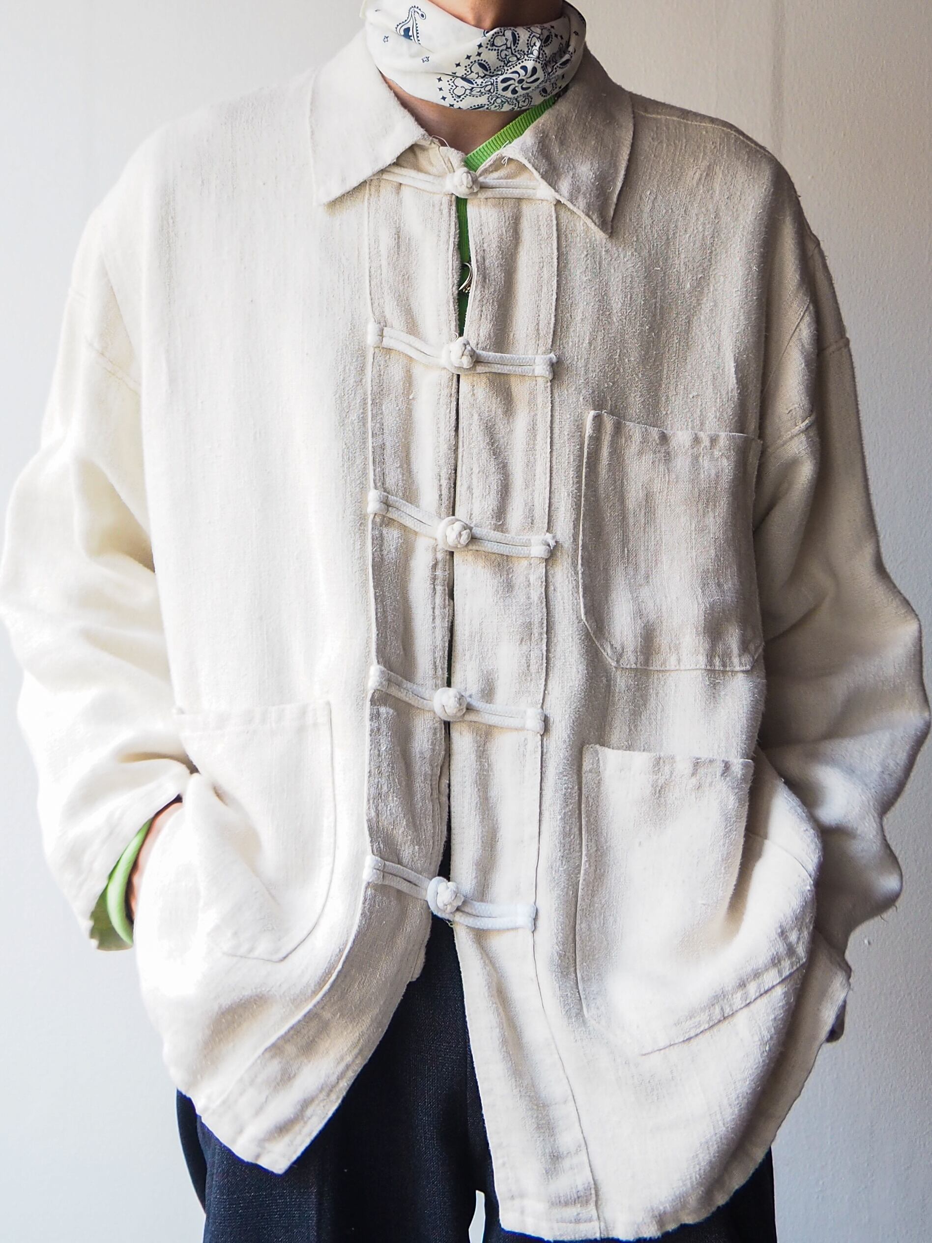 1940-50s French Fabric Cotton×Linen China Shirts Jacket