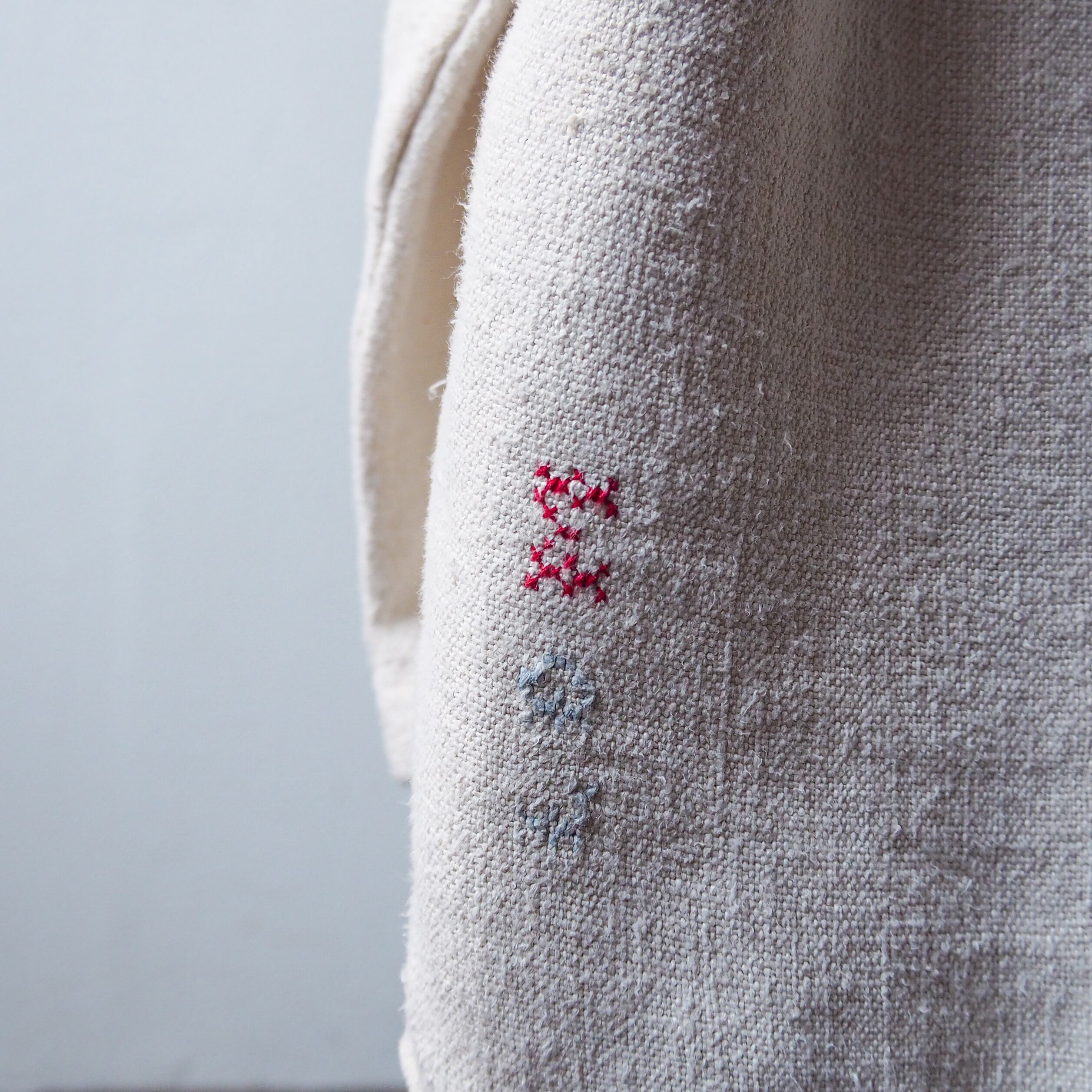 ボディはコットン9:リネン1に相当する、ネップによる凹凸間のある表情豊かな生地感。染色の行われていない優しいアイボリーカラーが素敵です。
