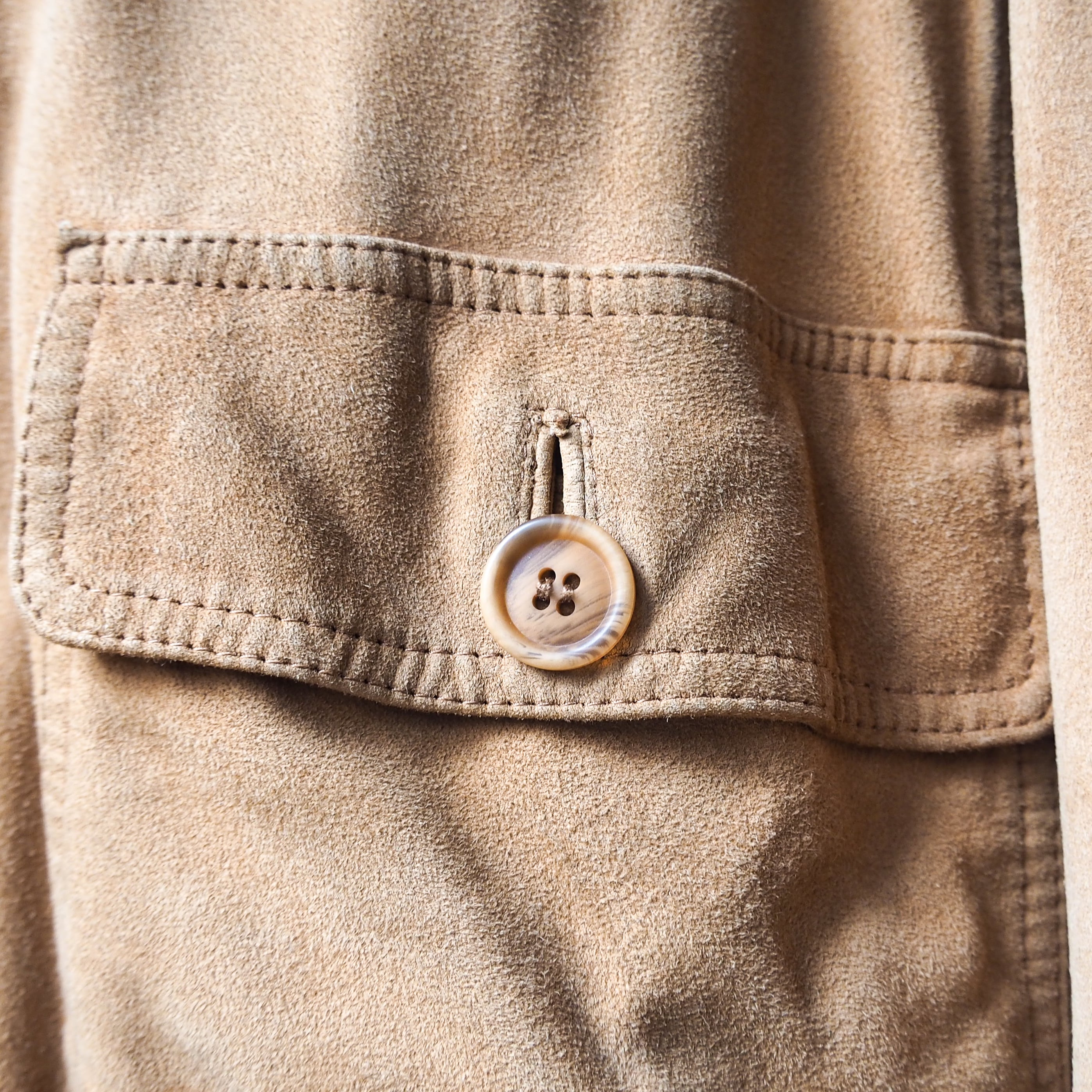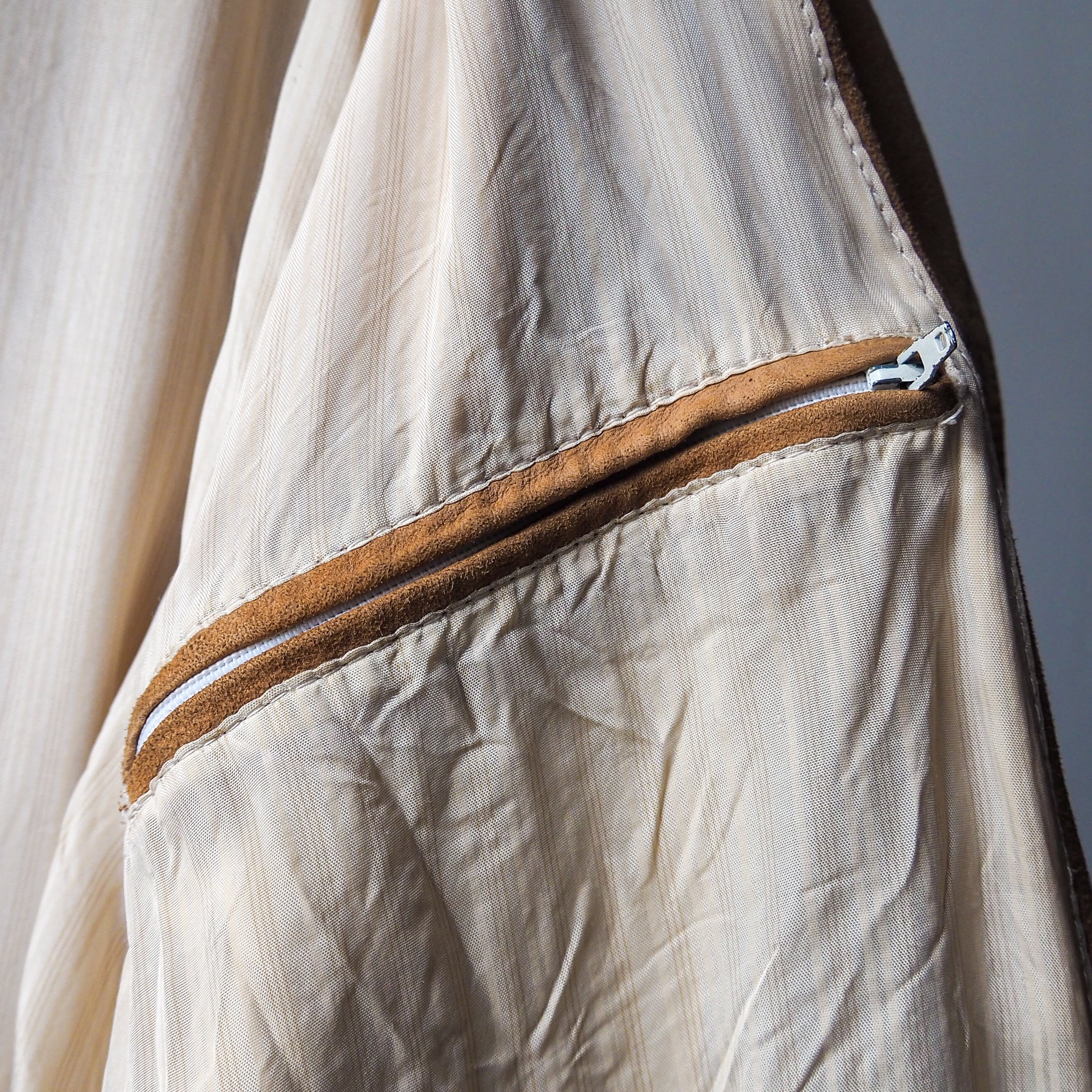 1960年代ごろの比較的古い年代の1着になりますので特に革質が良く、非常にソフトで滑らかなスエード生地から生まれる上品なドレープ感を贅沢にオーヴァーなサイジングでお楽しみ頂けます。