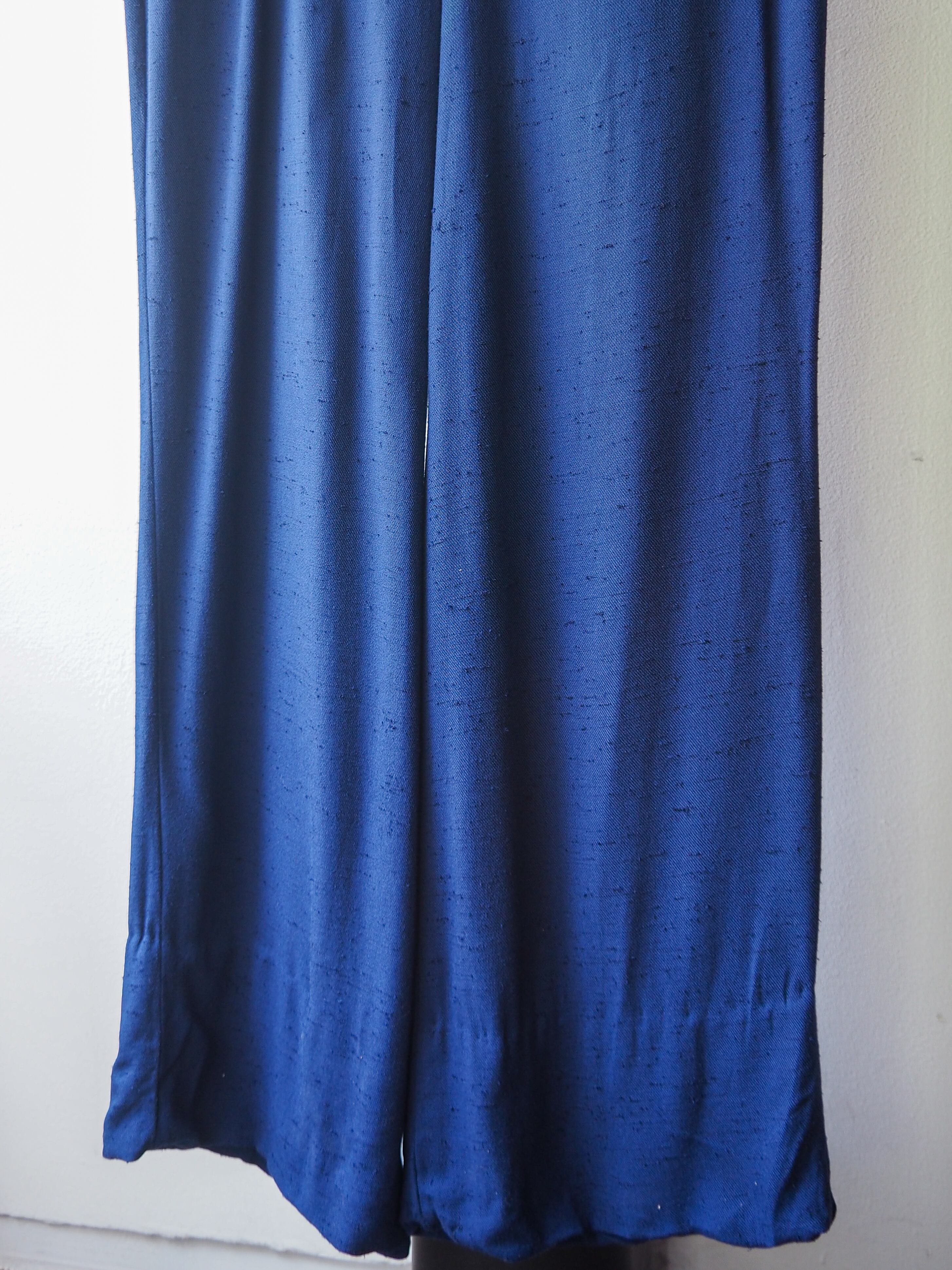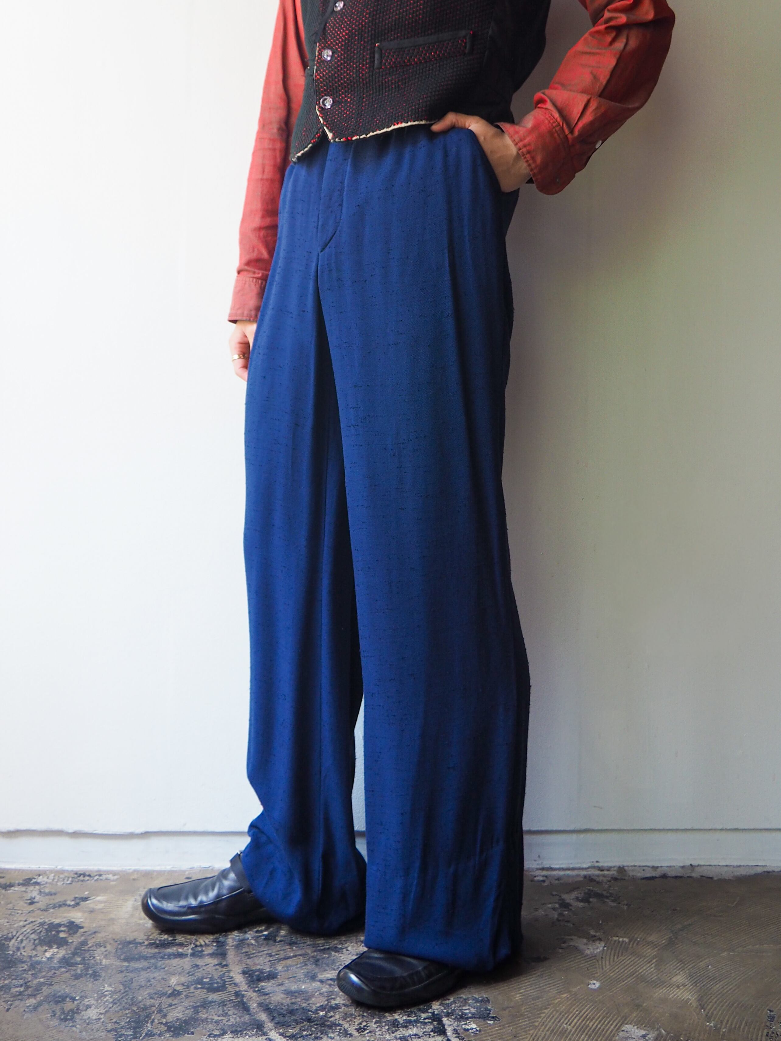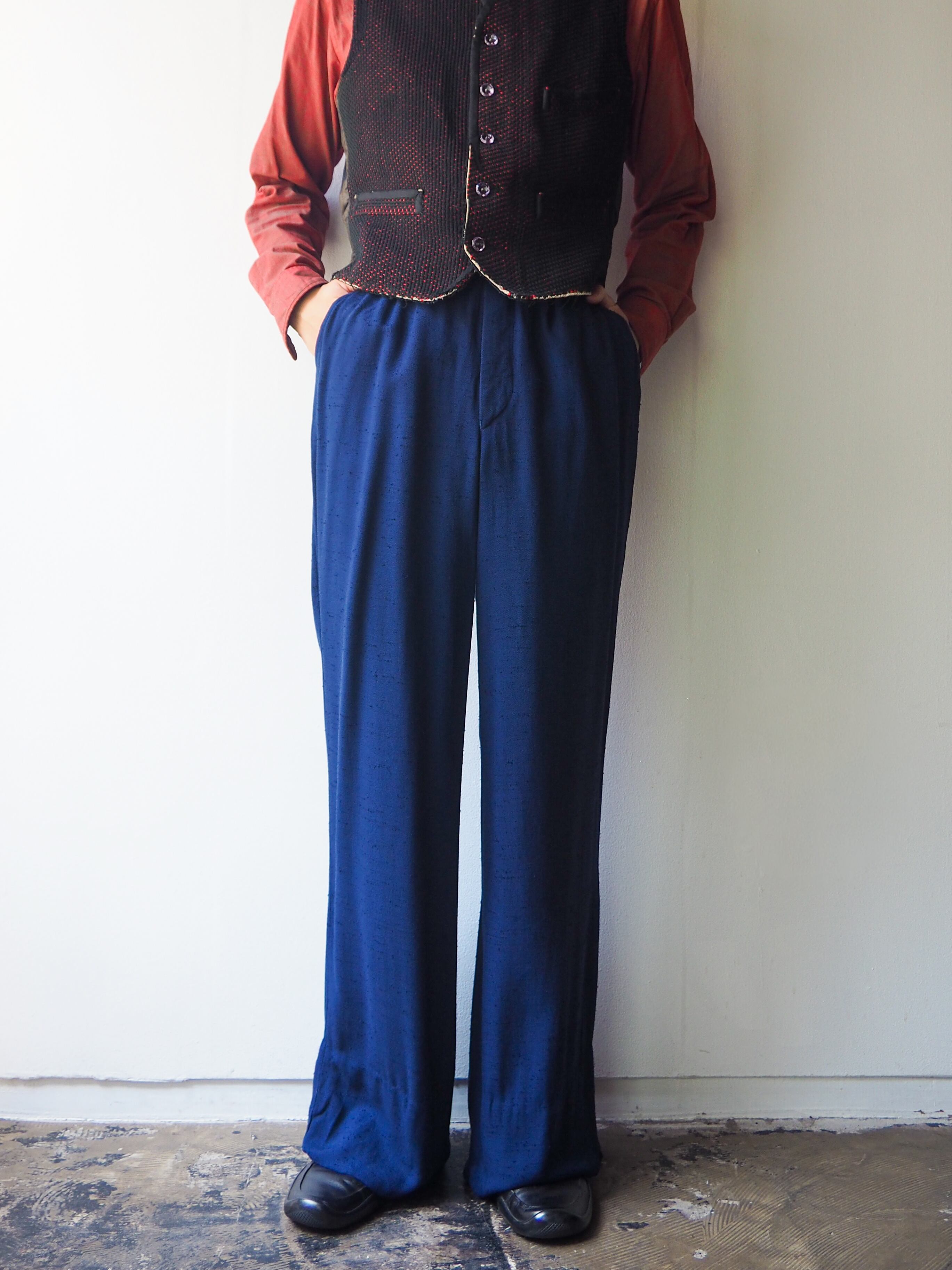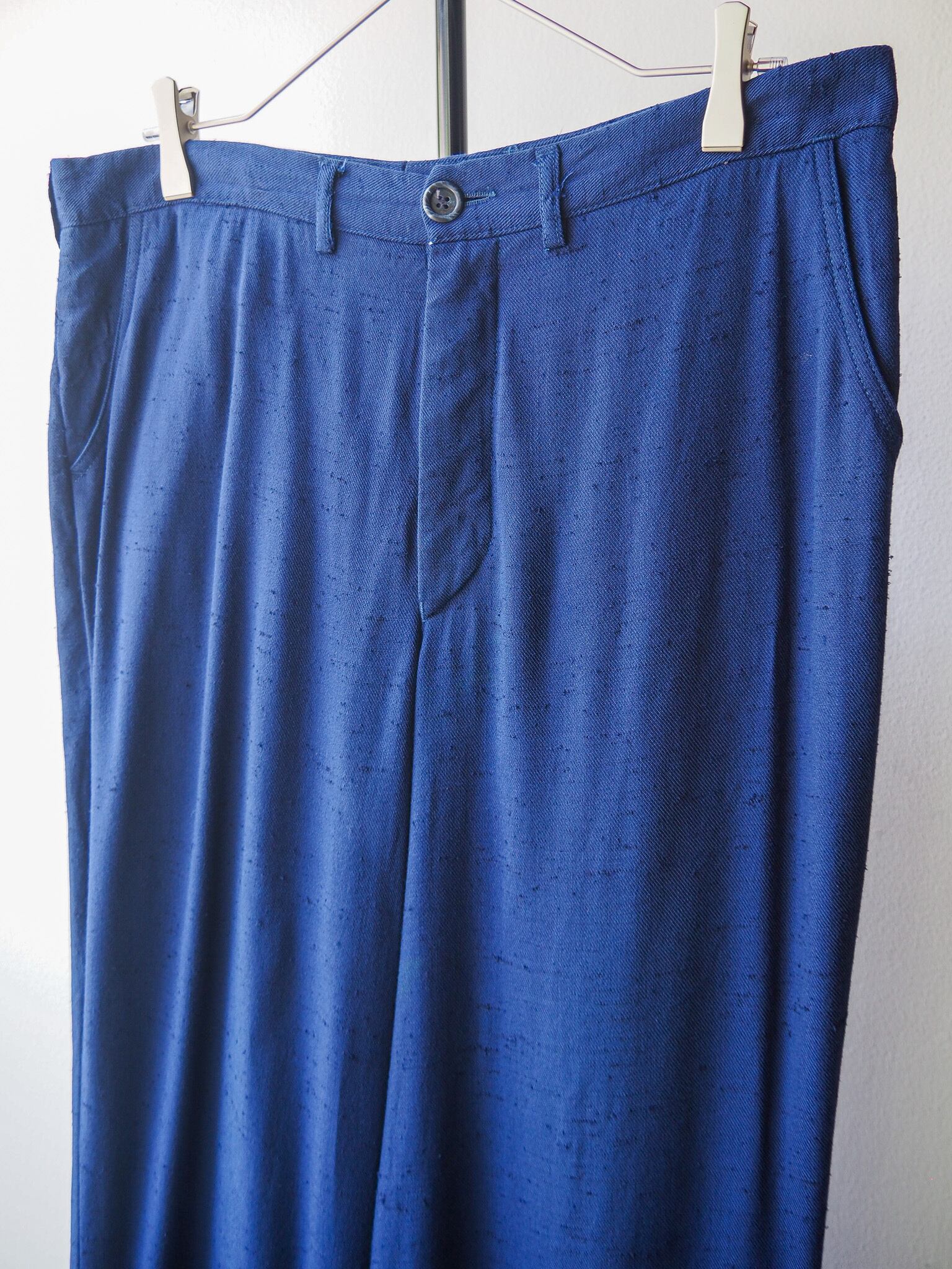 元々はシルクの代用品として発明されたとろみのある質感のビスコース。擦れて入るネップにノータックのウエスト。