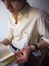 セミワイドのレギュラーカラーに控えめなボタン配列。
