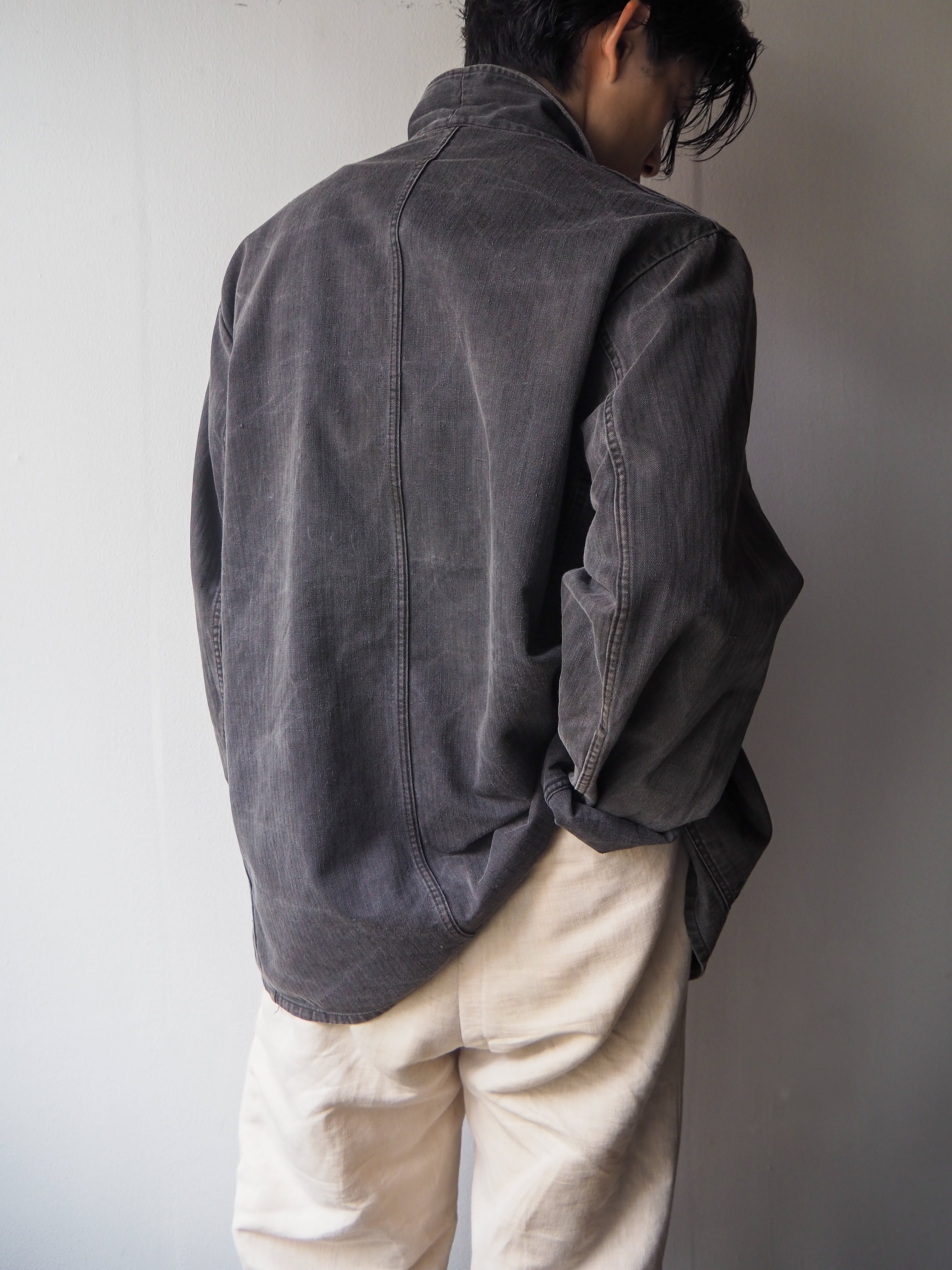 1970s Germany Black HBT Faded Work Jacket