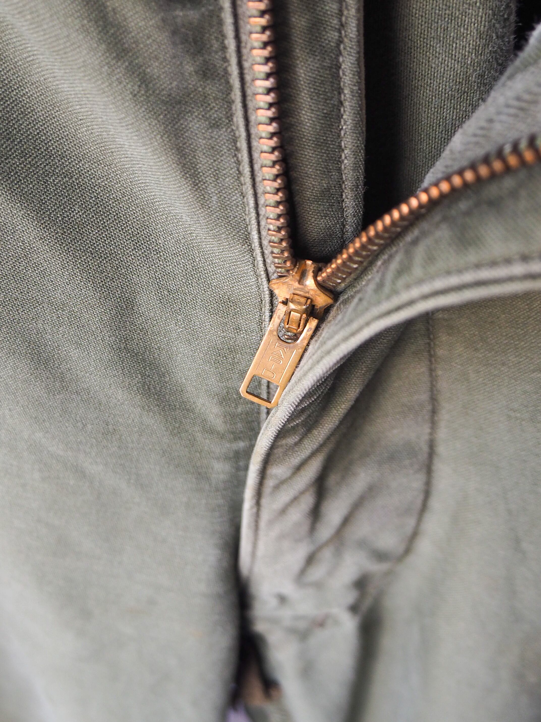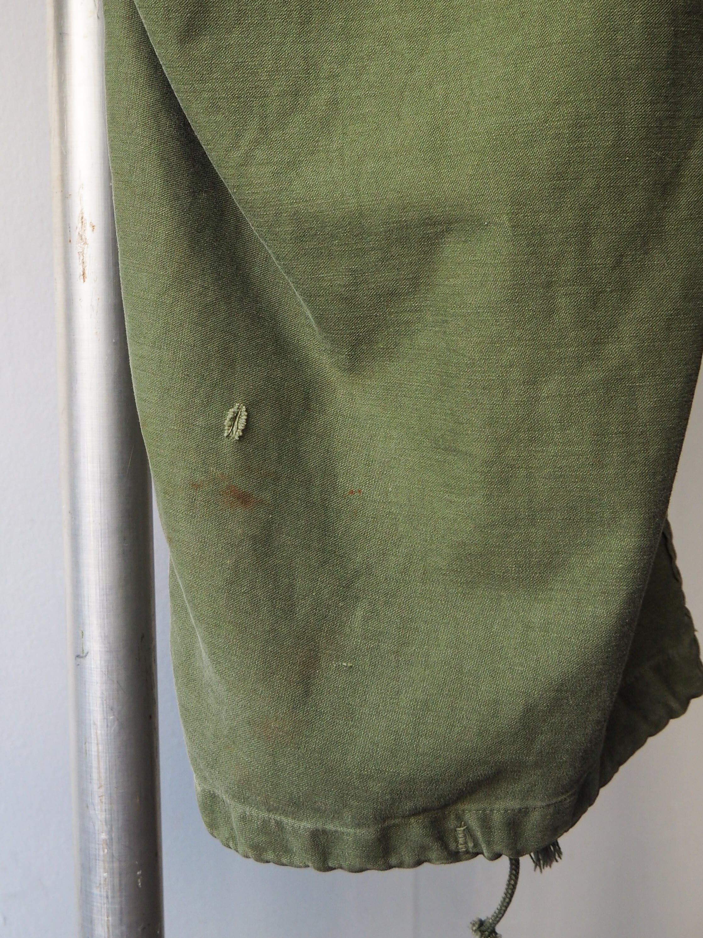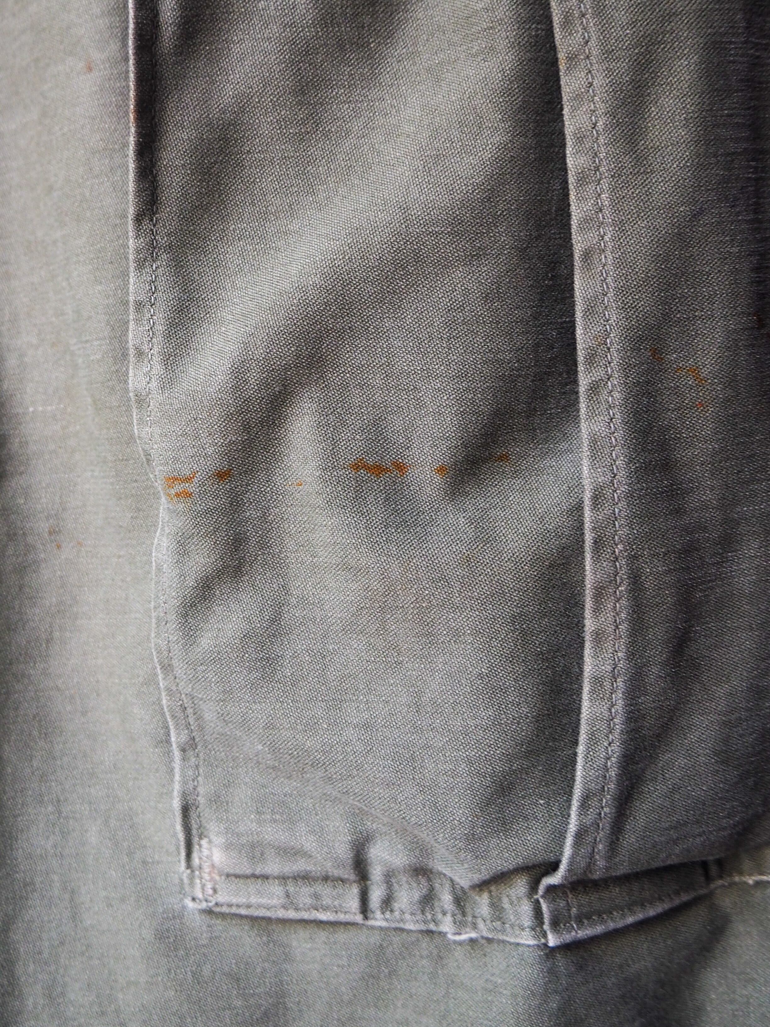 程よく使用感の出たクタっとした柔らかい生地感。各所にリアルクローズとして使用されていたシミや古傷が見られます。歴戦を潜り抜け、今回こうしてご紹介させていただくに至った猛者ですので、雰囲気のうちとしてご着用いただけますと幸いです。