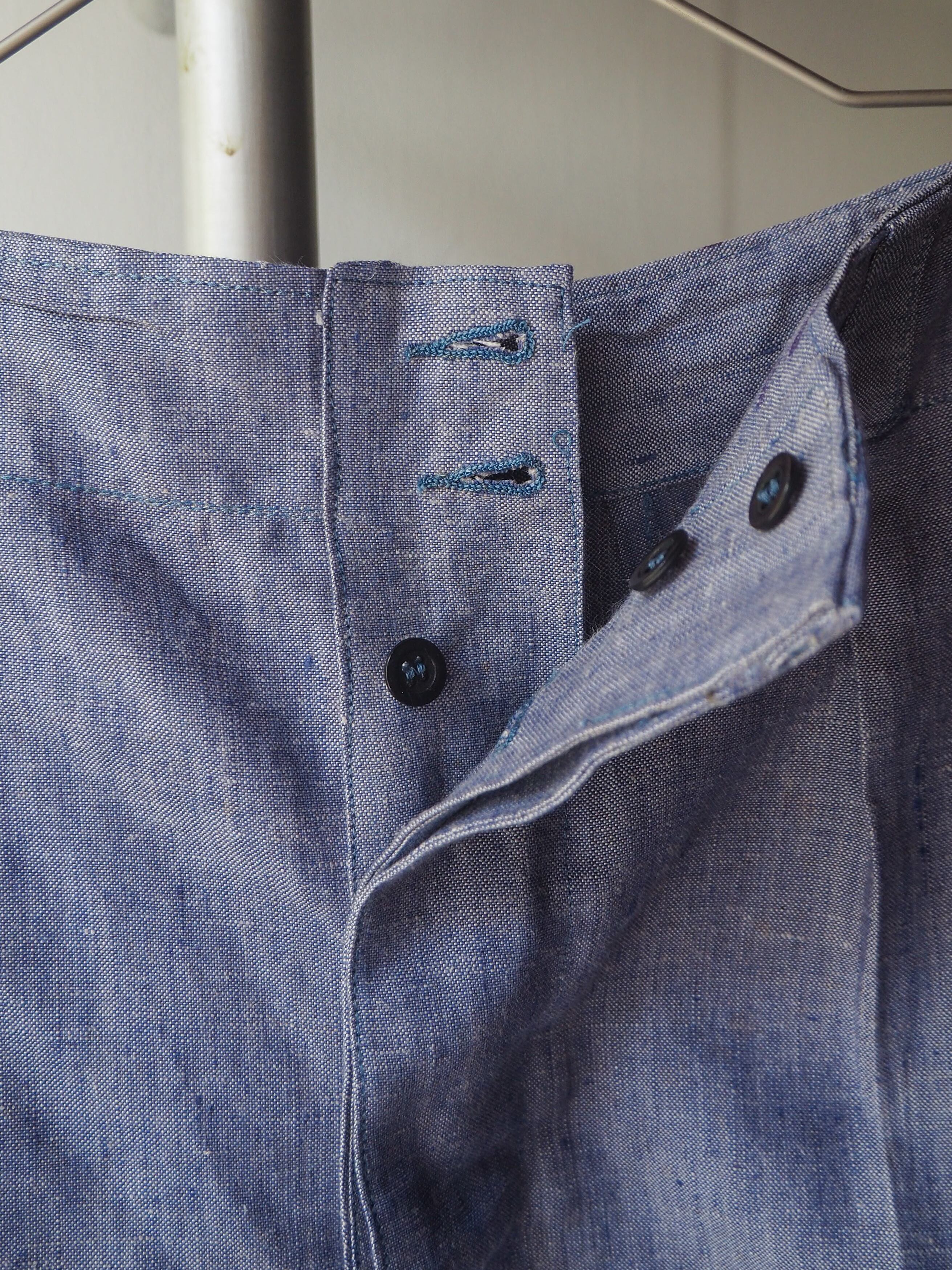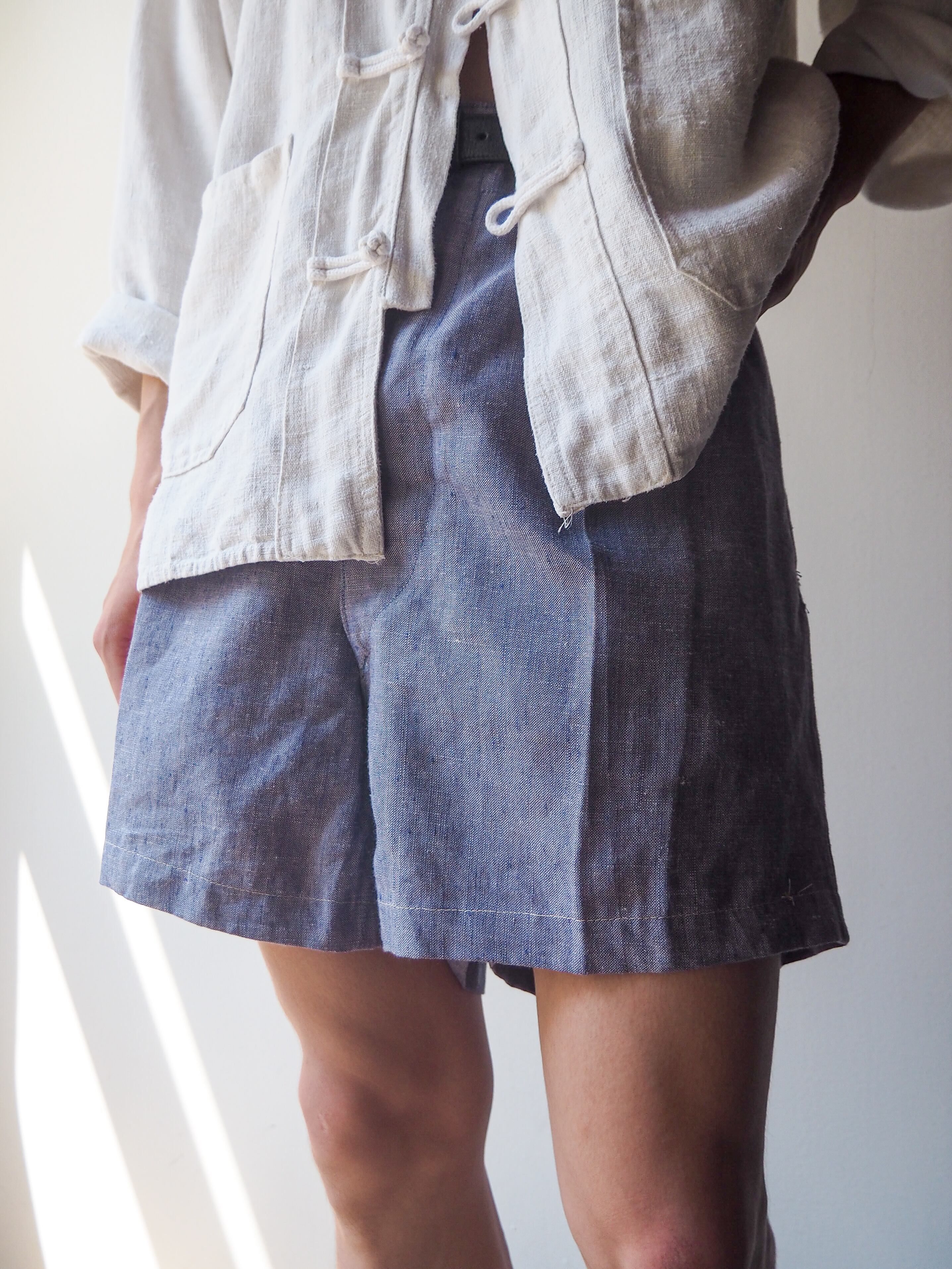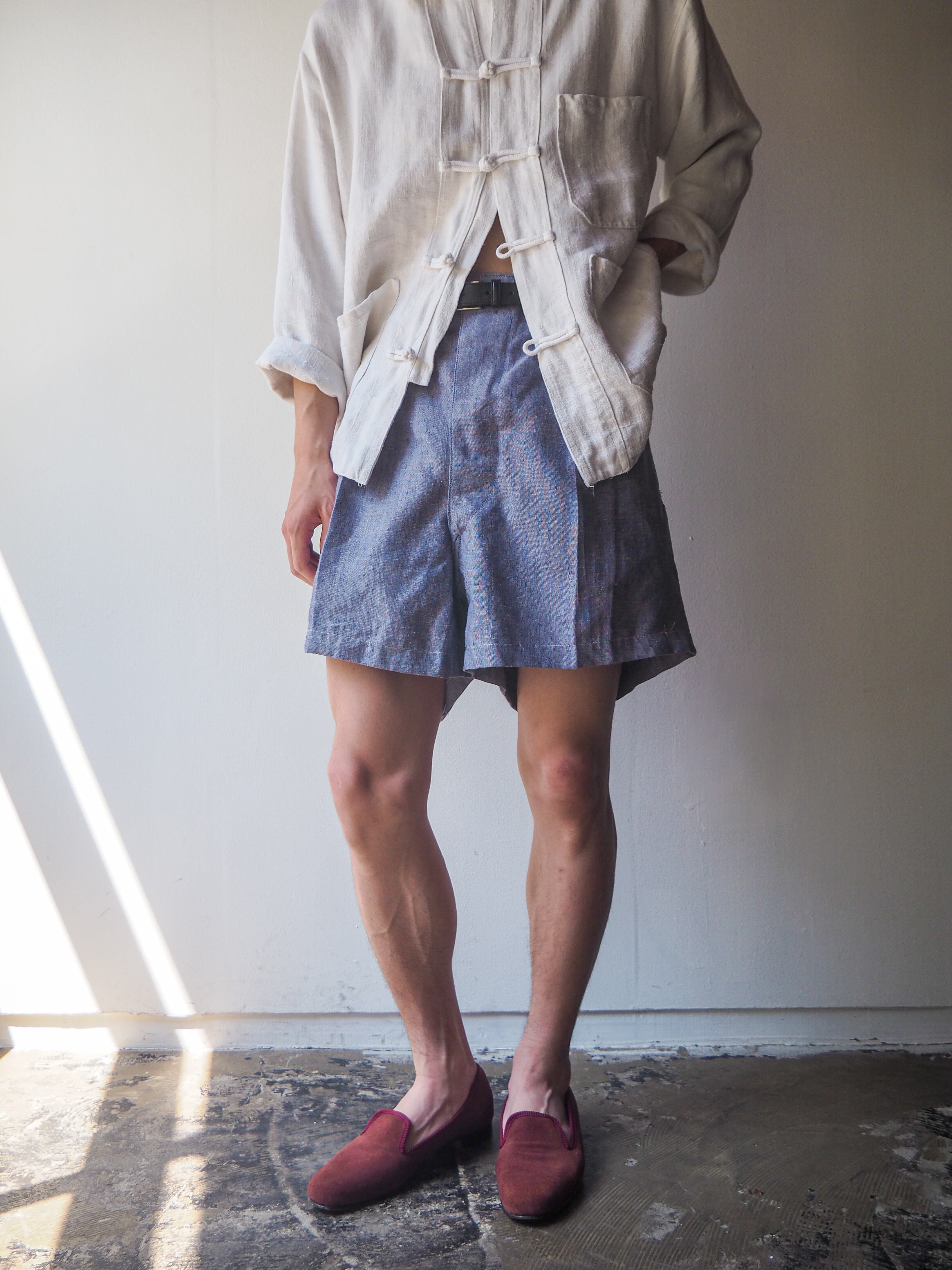 リネンの中でも特に繊維が太く、ハリのある質感が特徴のラミーリネンを使用したショーツ。素材特有の熱伝導率の高さから、真夏でもヒンヤリと涼しく快適にご着用して頂けます。