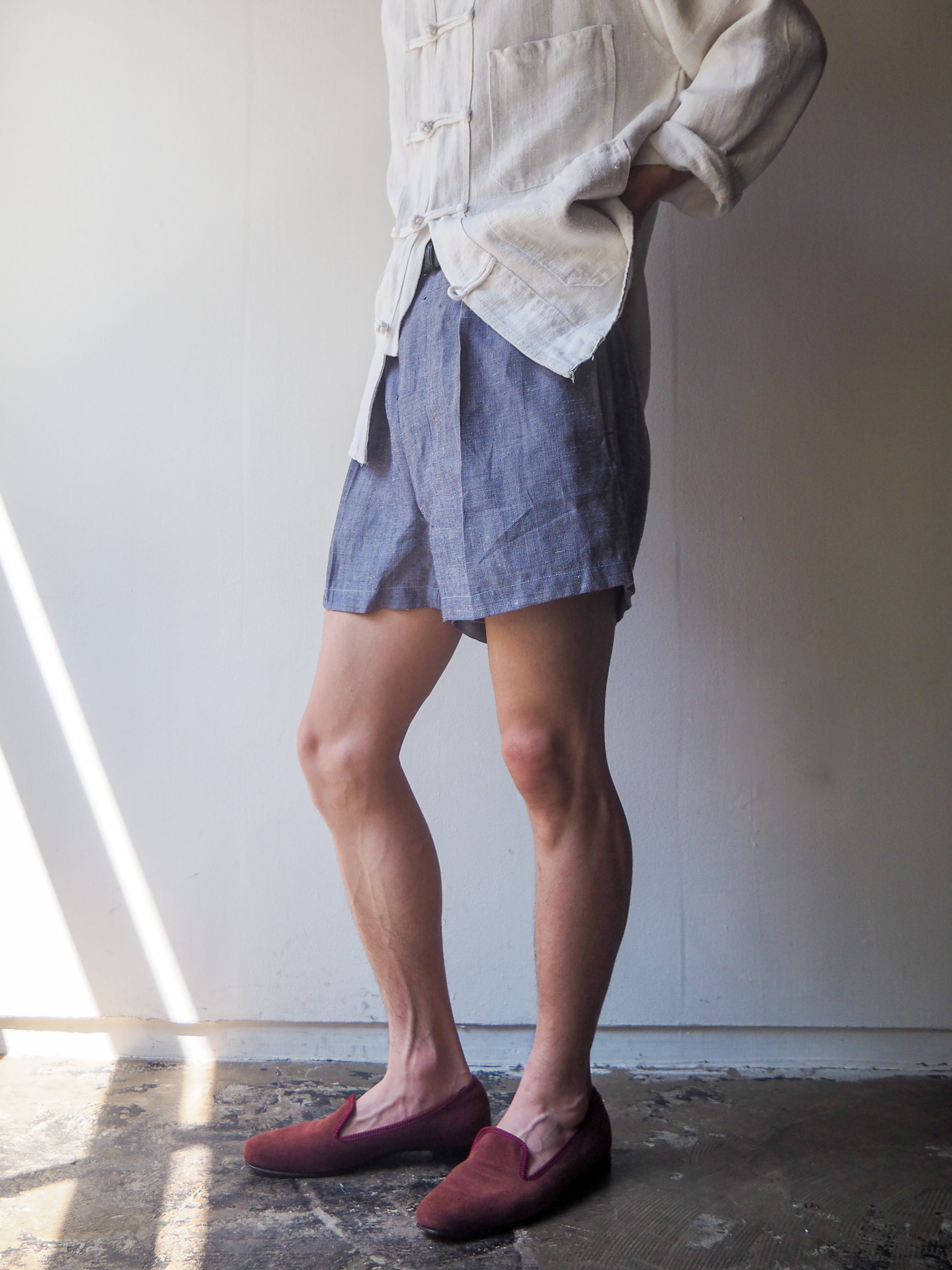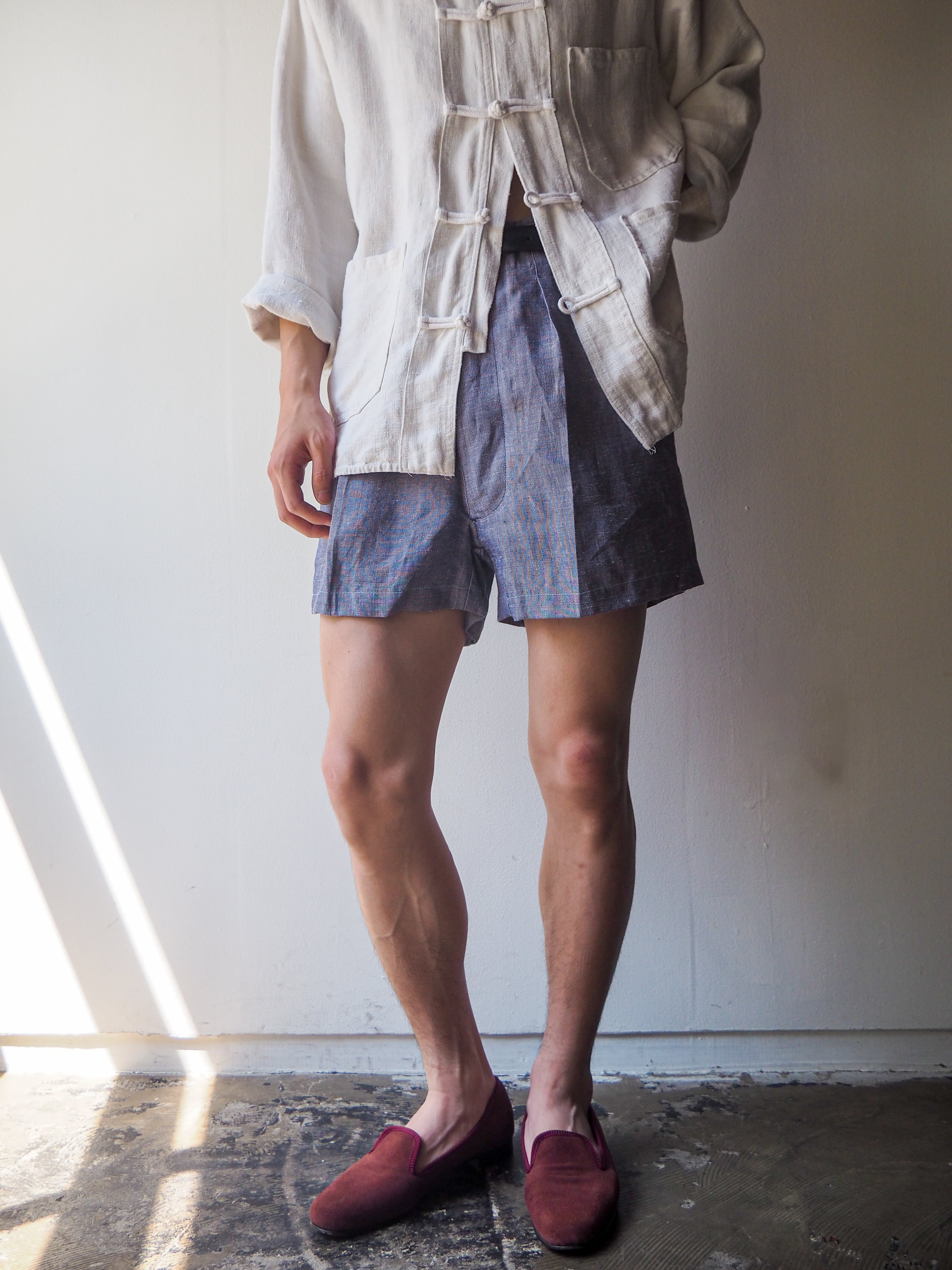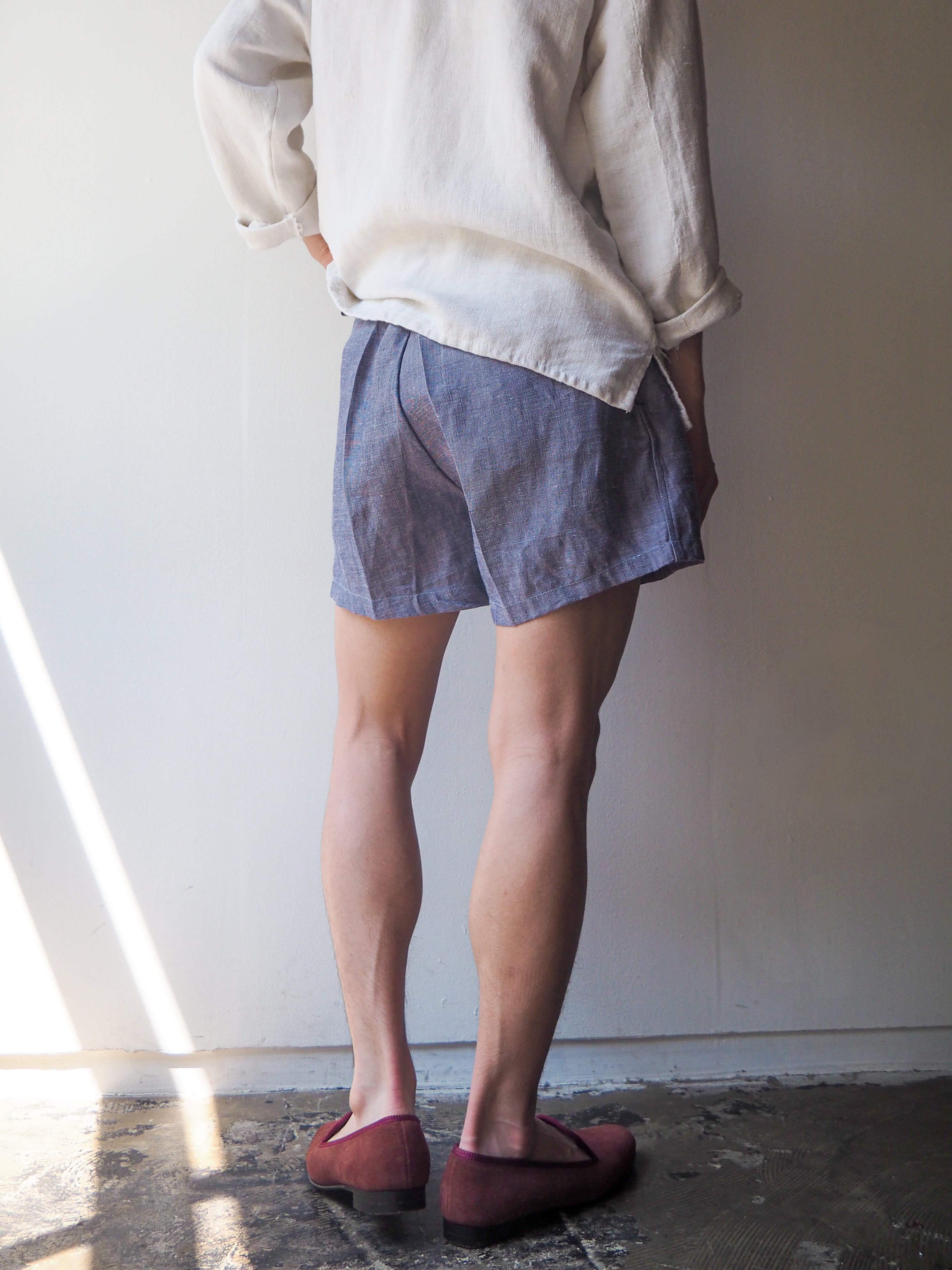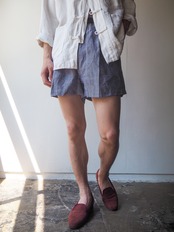 リネンの中でも特に繊維が太く、ハリのある質感が特徴のラミーリネンを使用したショーツ。素材特有の熱伝導率の高さから、真夏でもヒンヤリと涼しく快適にご着用して頂けます。