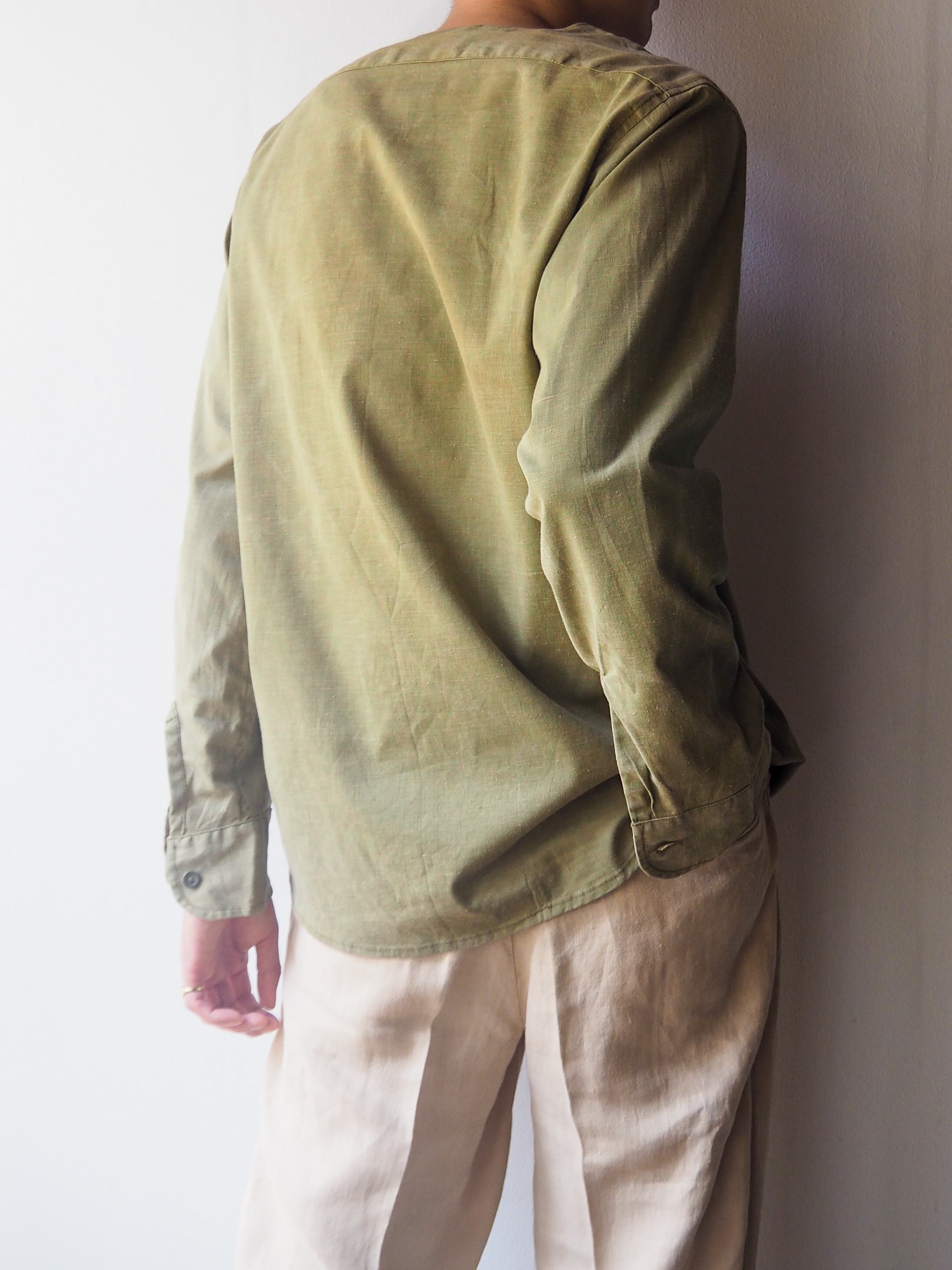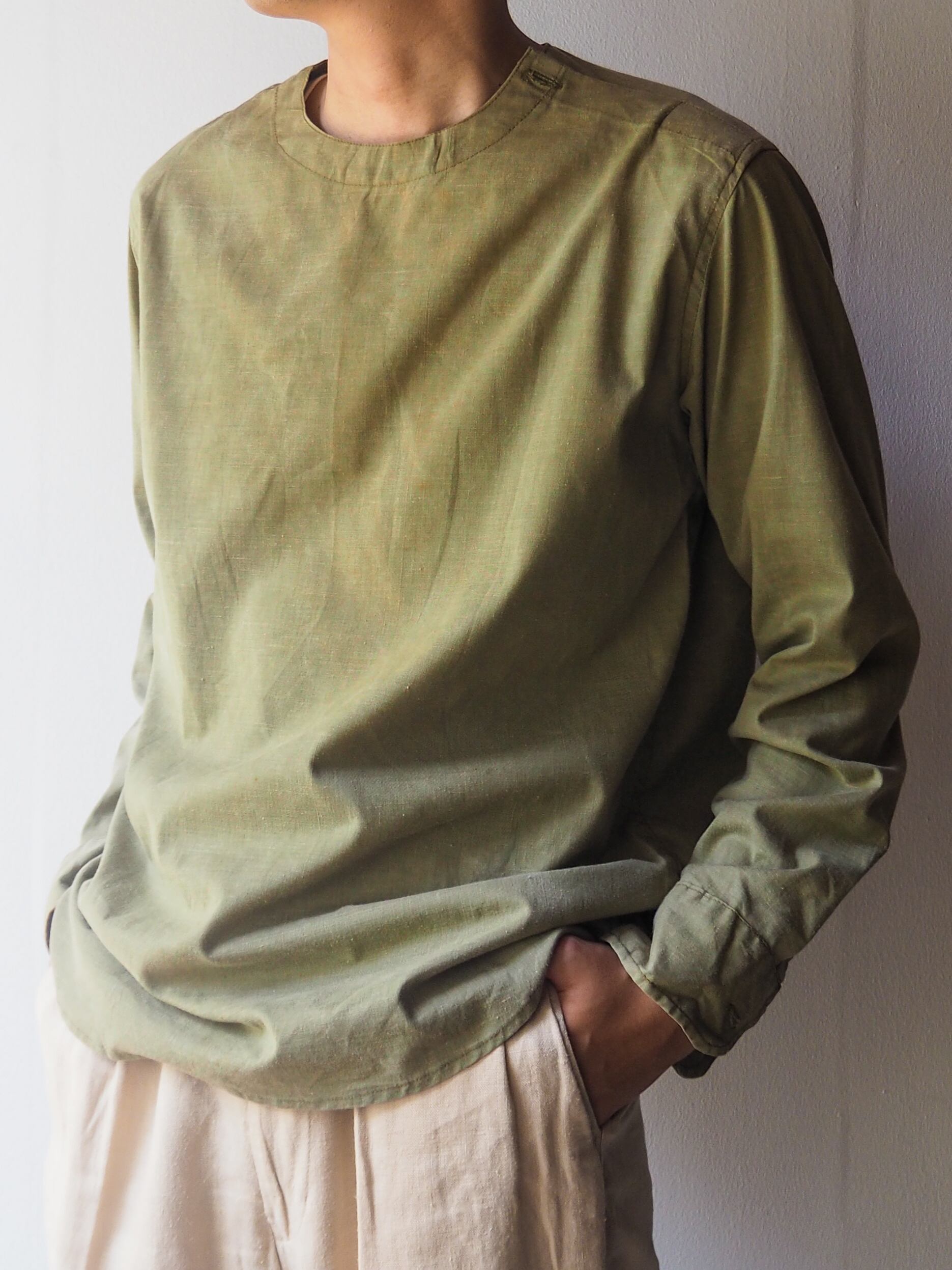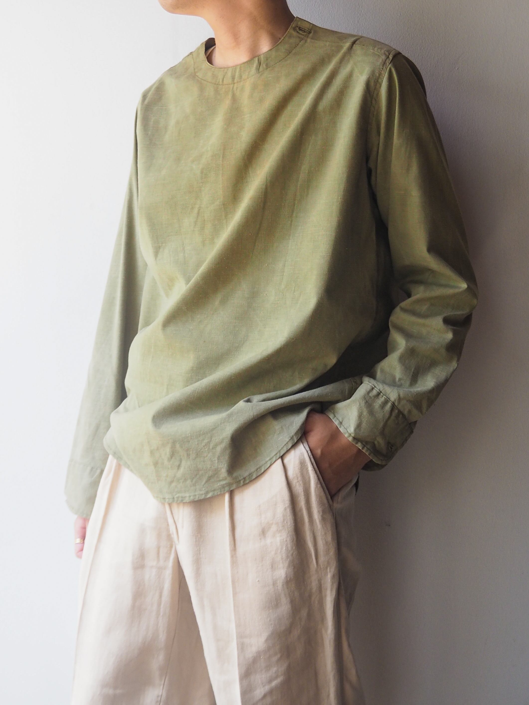 気分で首元のボタンを軽く開け、袖は適当にたくしあげて、できれば白い太めのワークパンツなんかと合わせてアンニュイなストリートをやりたいです。
