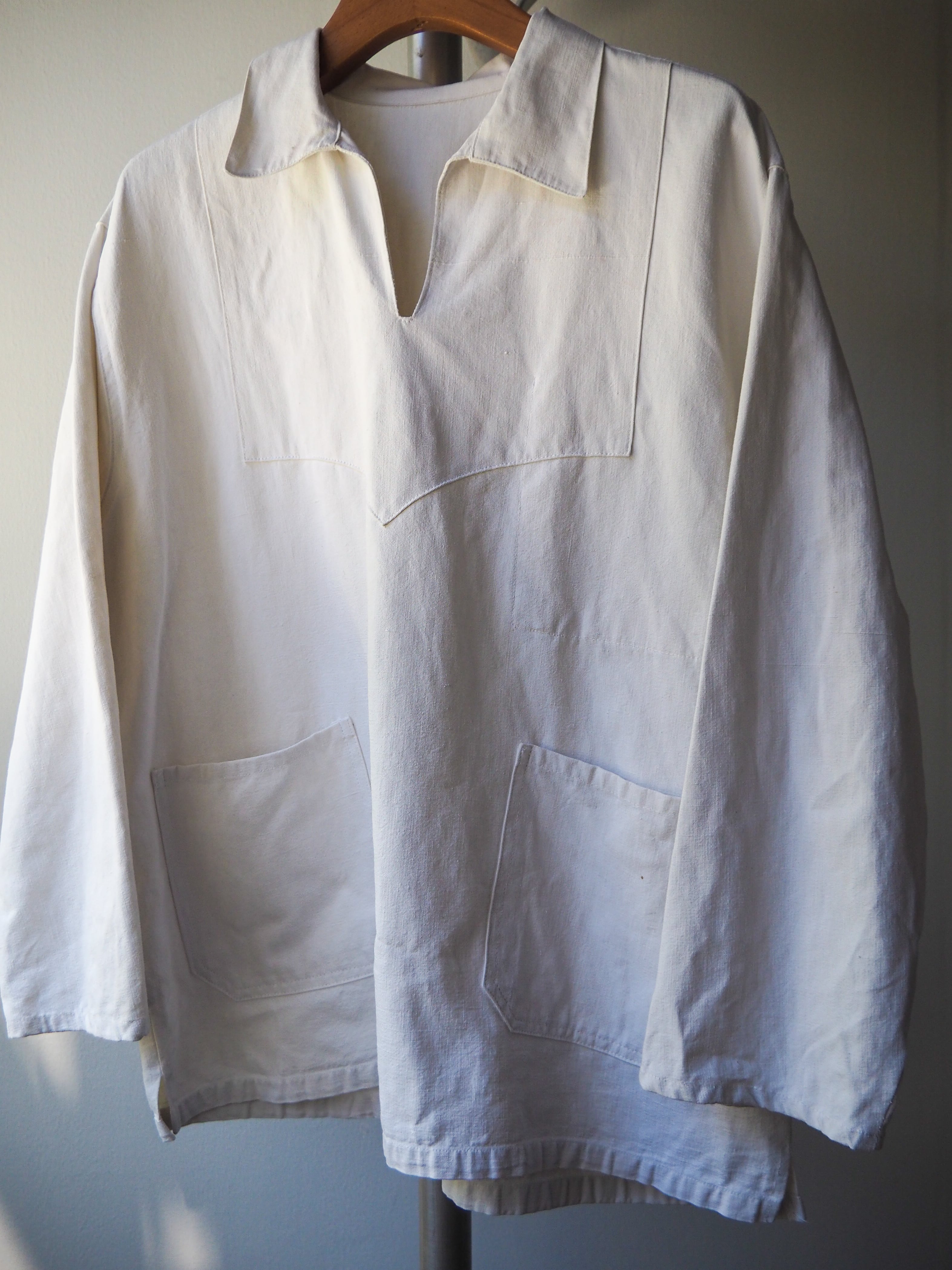 1940-50年代頃のフランスの古い生地が見つかったのでフランス沿岸部で古くから親しまれてきたフィッシャーマンスモックに仕立てました。