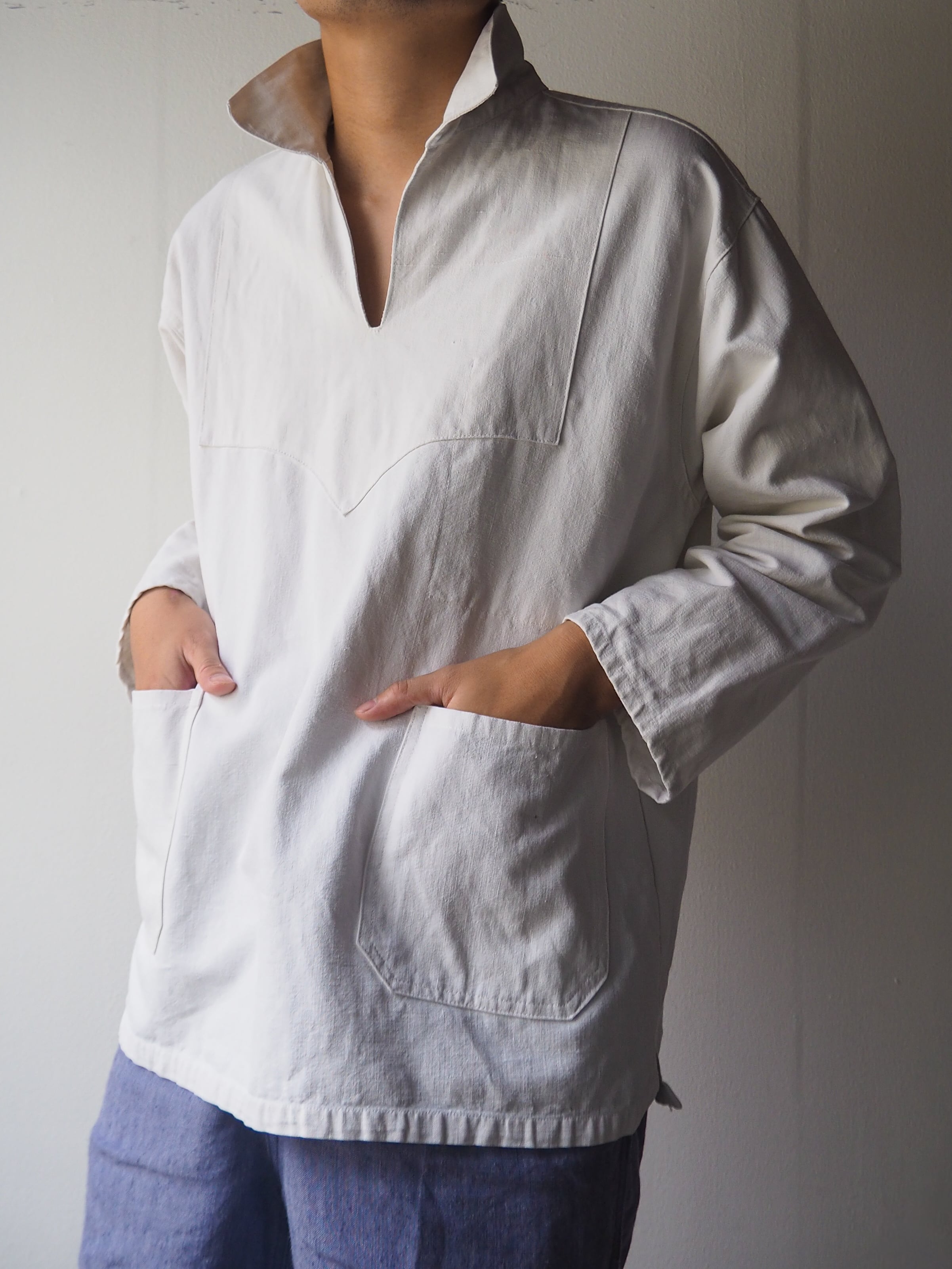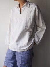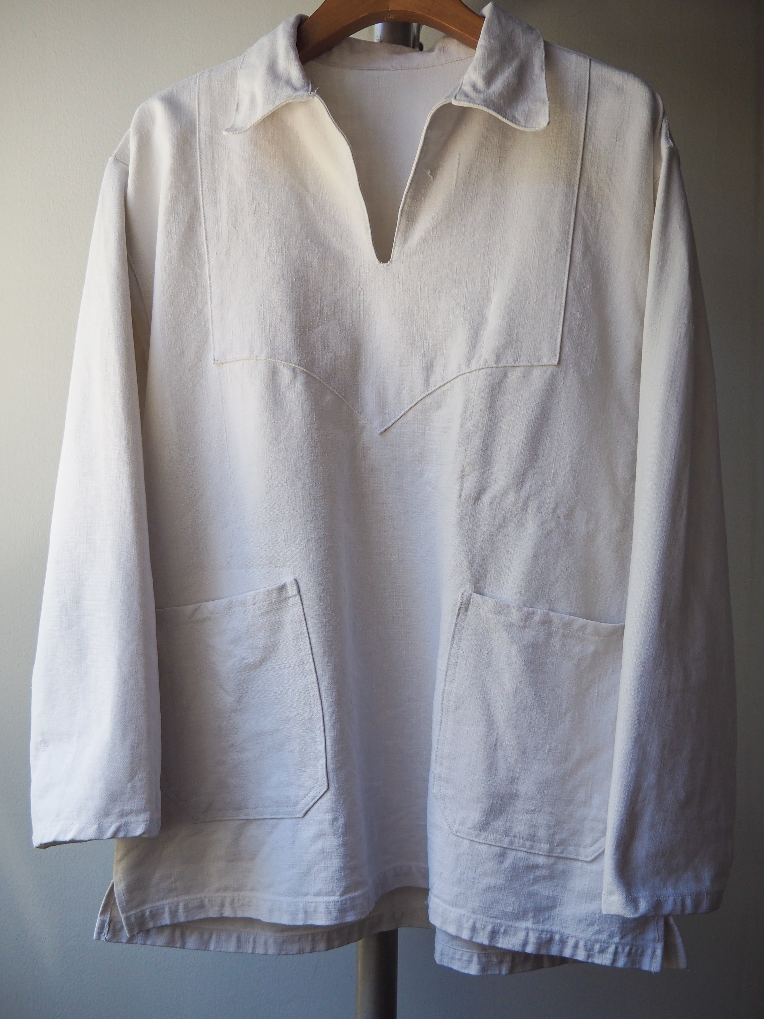 1940-50年代頃のフランスの古い生地が見つかったのでフランス沿岸部で古くから親しまれてきたフィッシャーマンスモックに仕立てました。