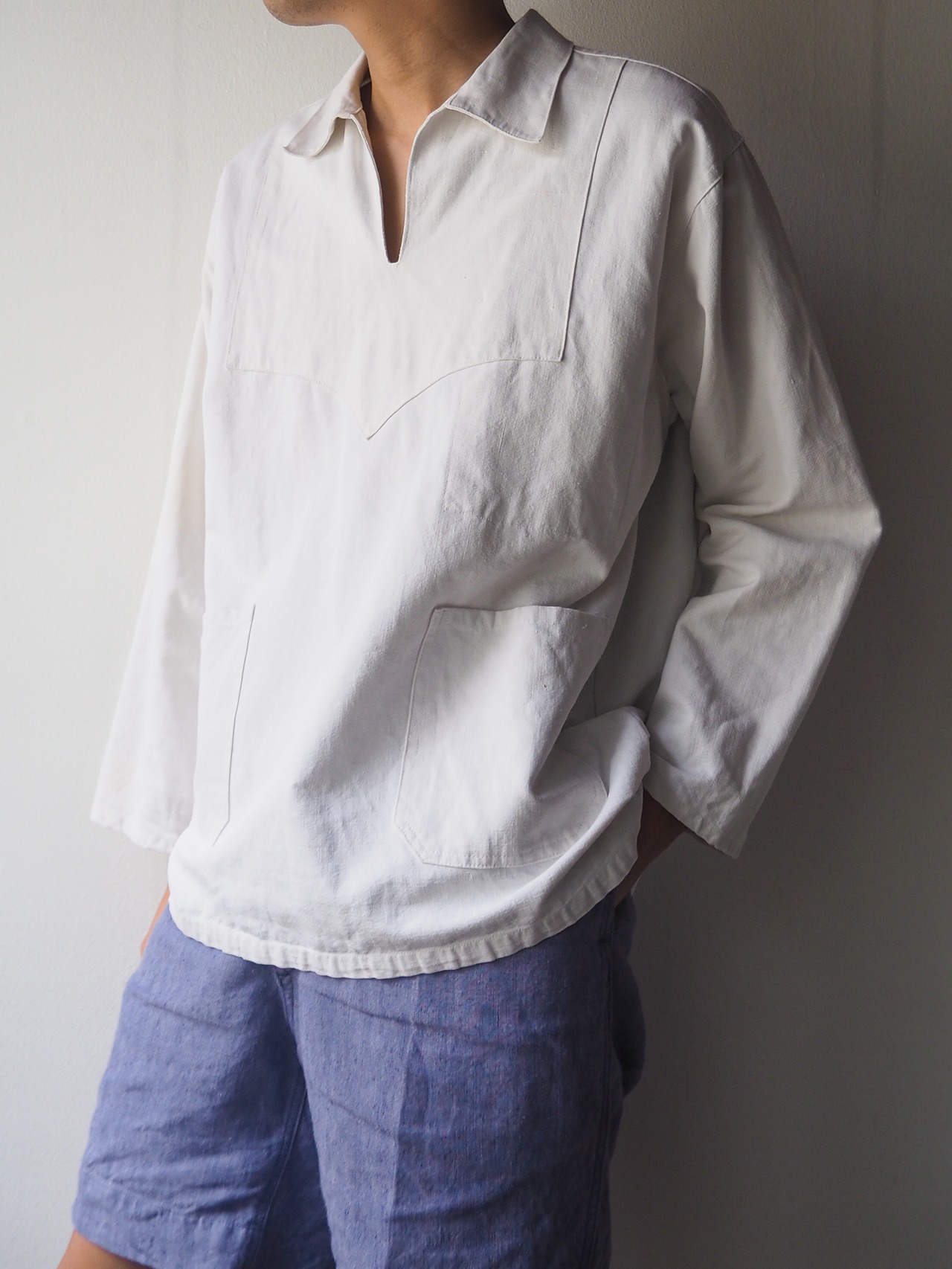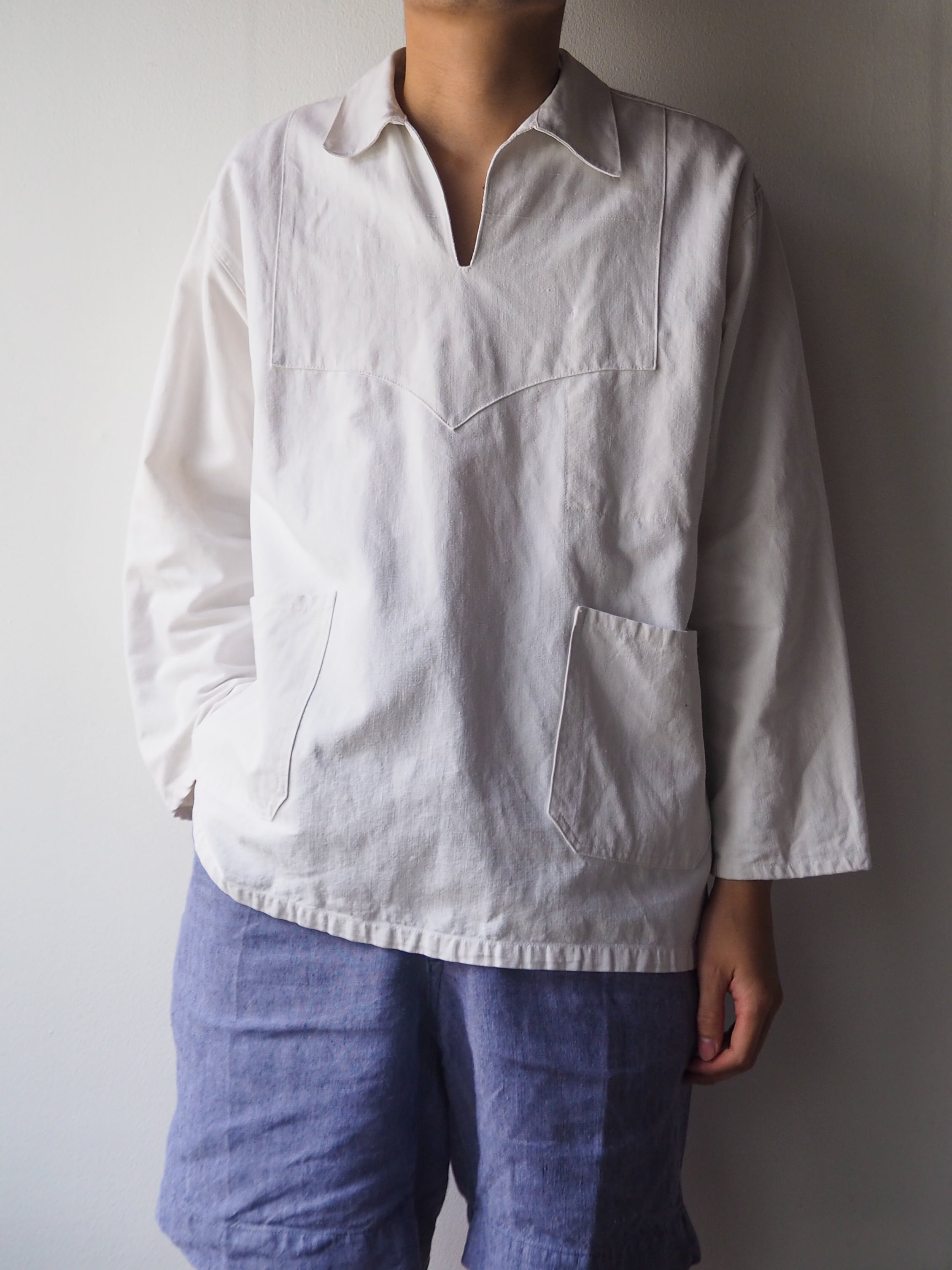 1940-50s French Fabric Cotton×Linen Fisherman Smock