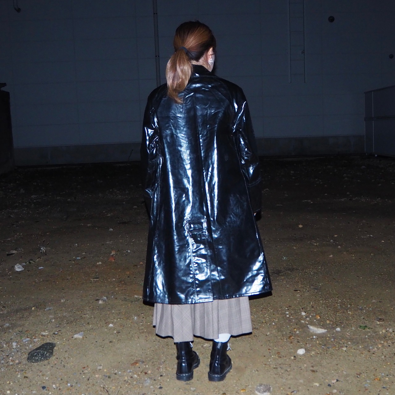 1950〜60年代のロイヤルネイビーものに稀に見られる光沢のあるPVC素材にオイル加工された防水性の極めて高い素材。表面のステッチも防水塗料が塗られた凝った作り。裏側のステンシル、襟を立ち上げた際の洗練されたシルエットはRoyal navy特有のクラシカルな雰囲気が感じられます。