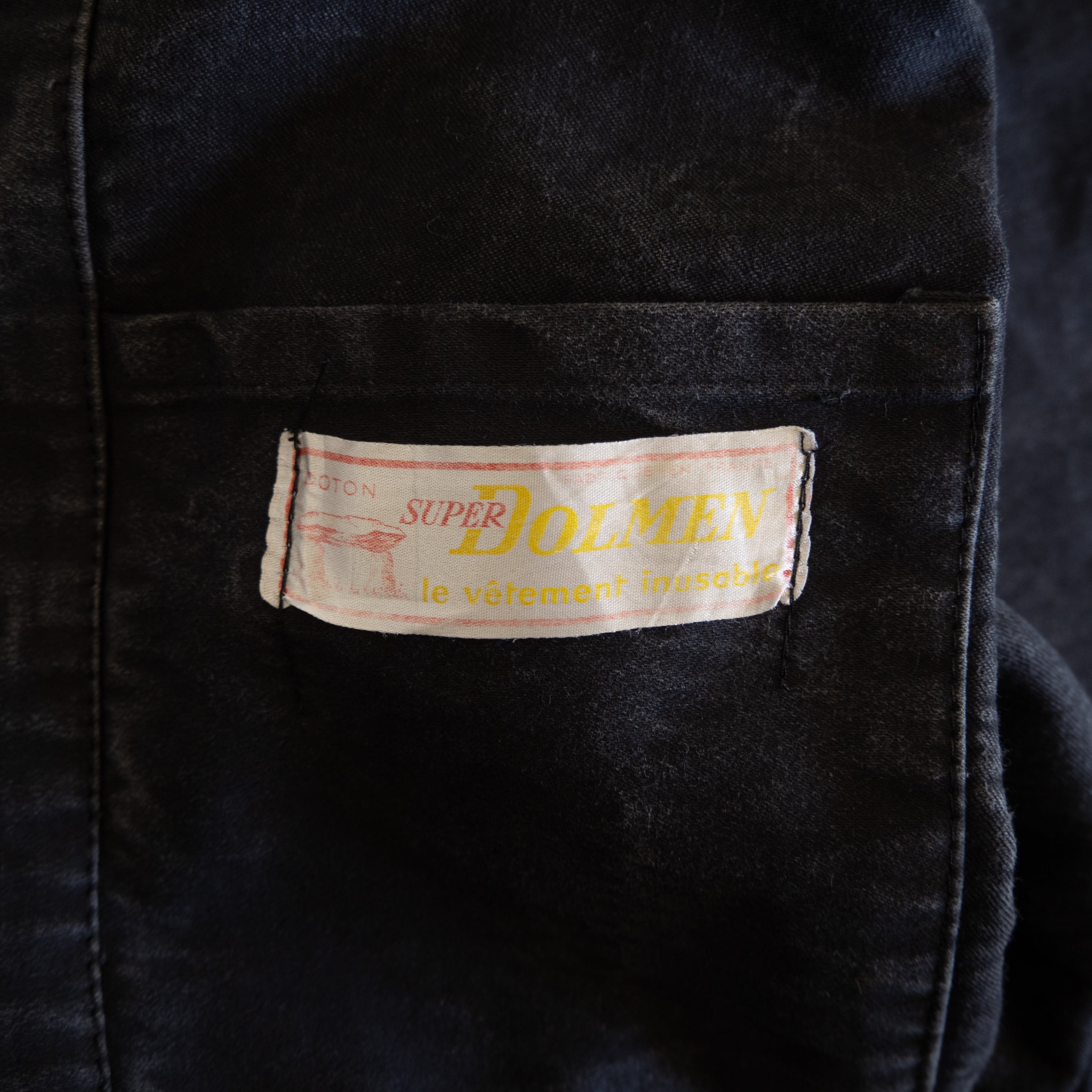 "DOLMEN" Black Moleskin French work jacket 1960s