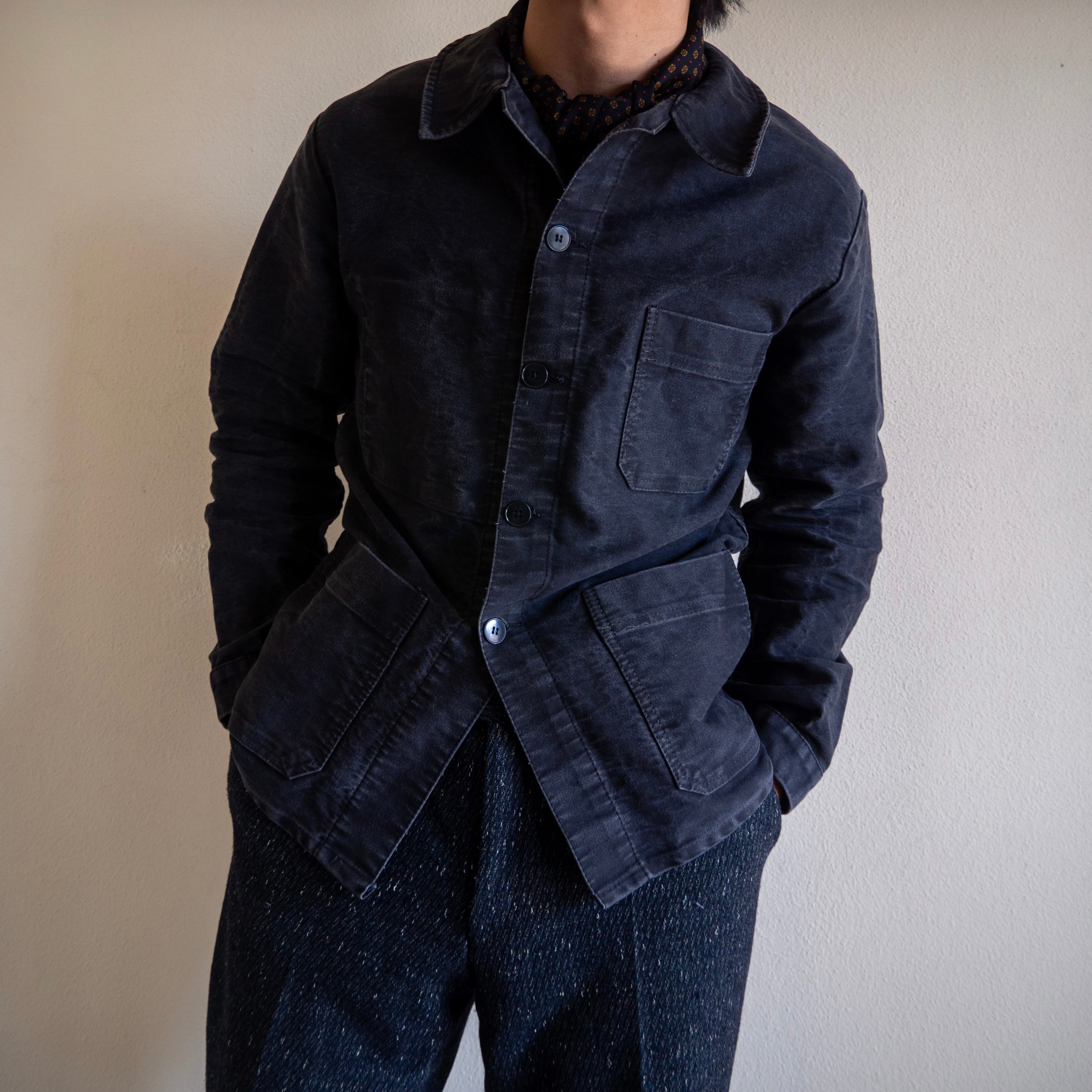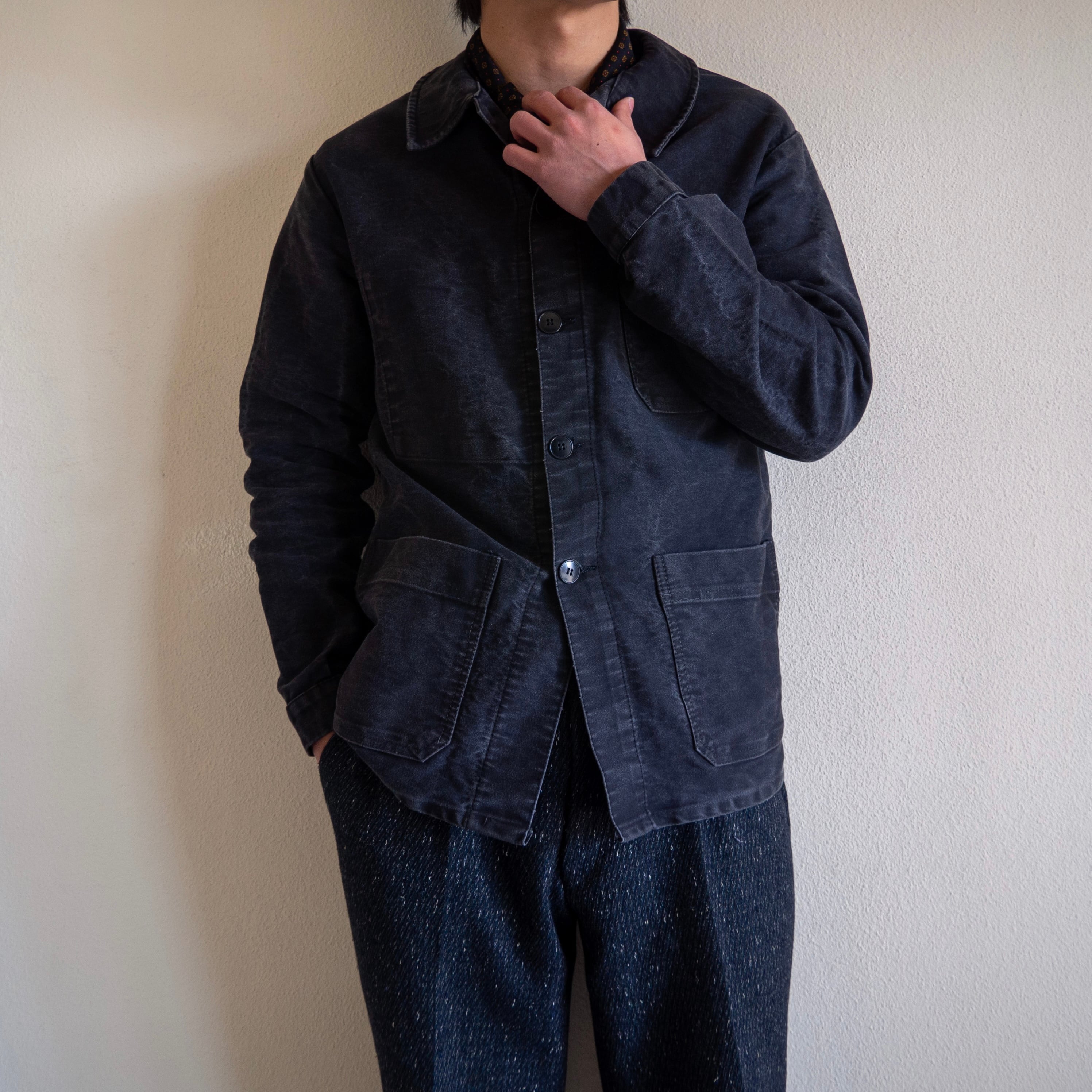 1960年代頃に着用されていた、ブラックモールスキン生地を使用したワークジャケットのご紹介です。