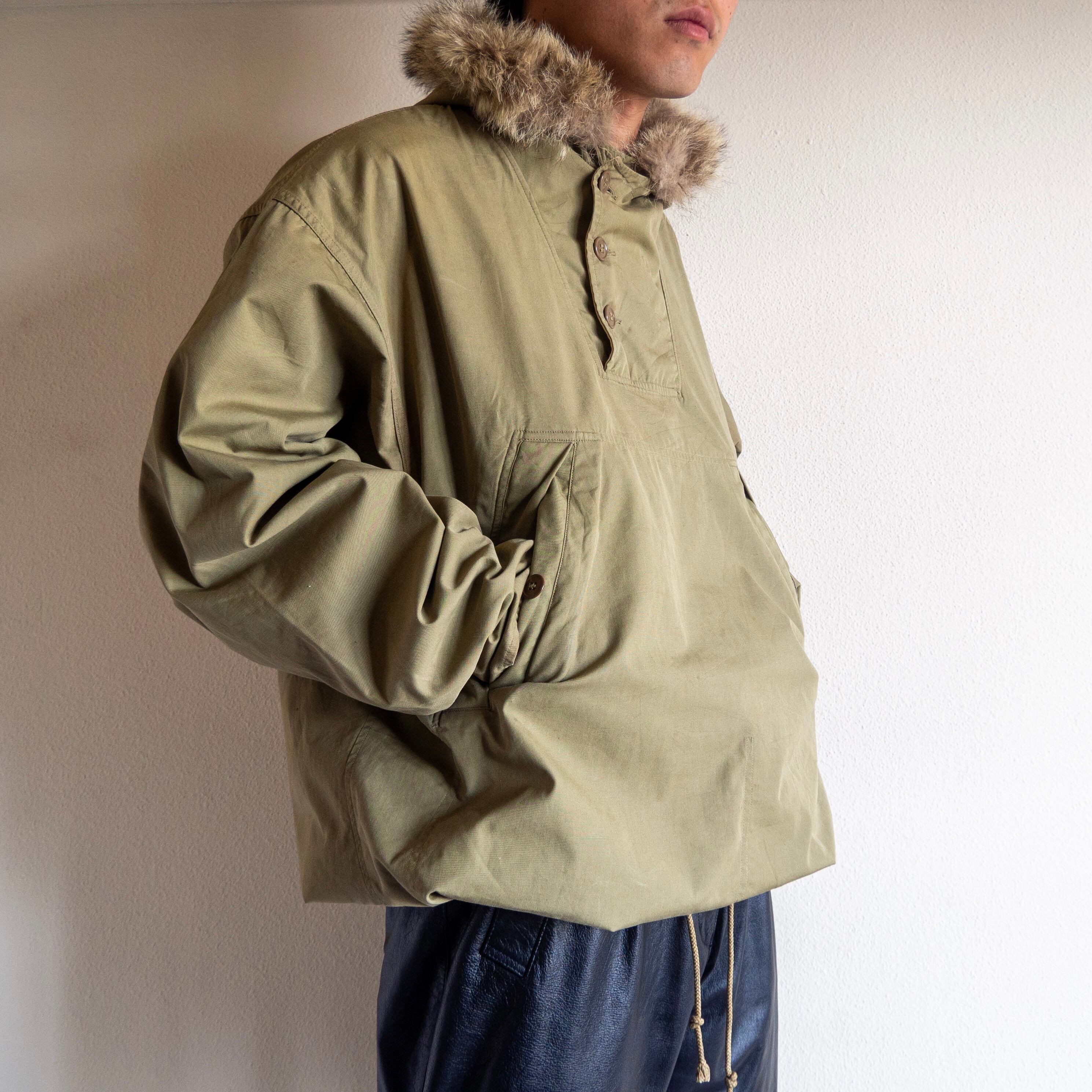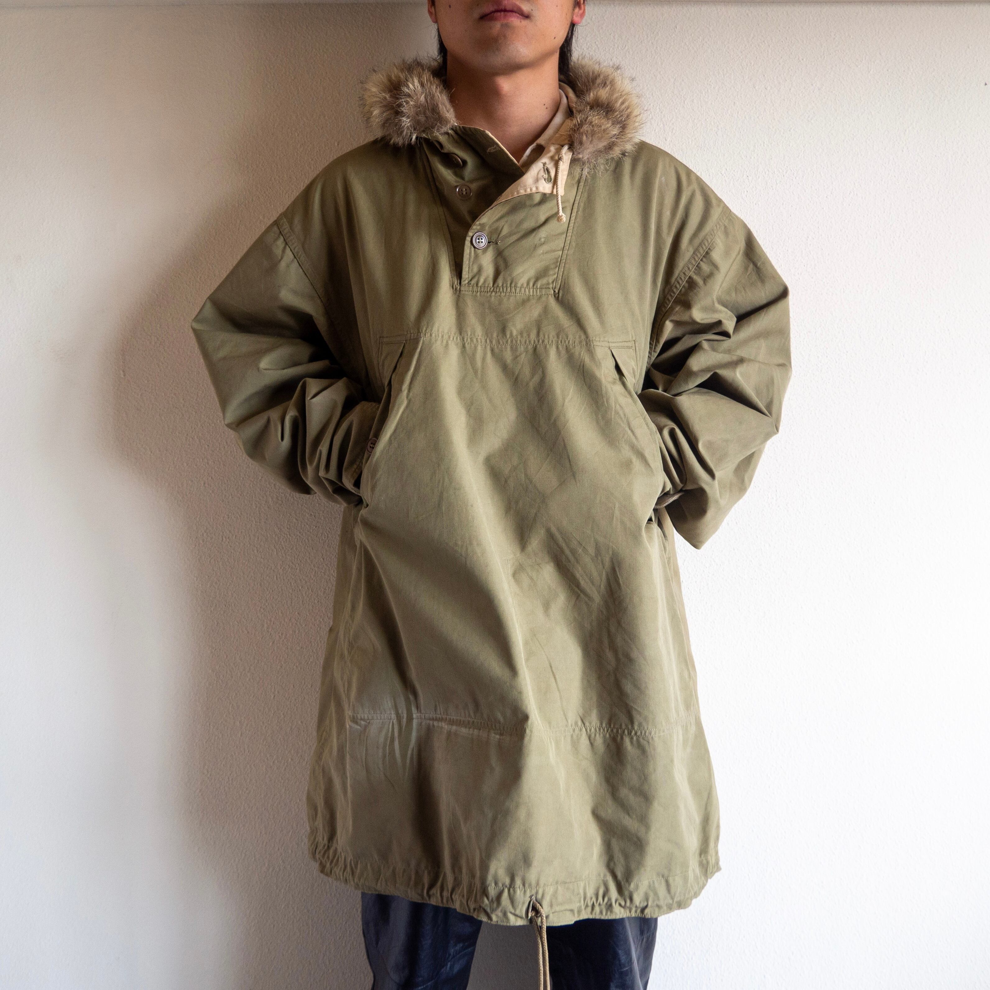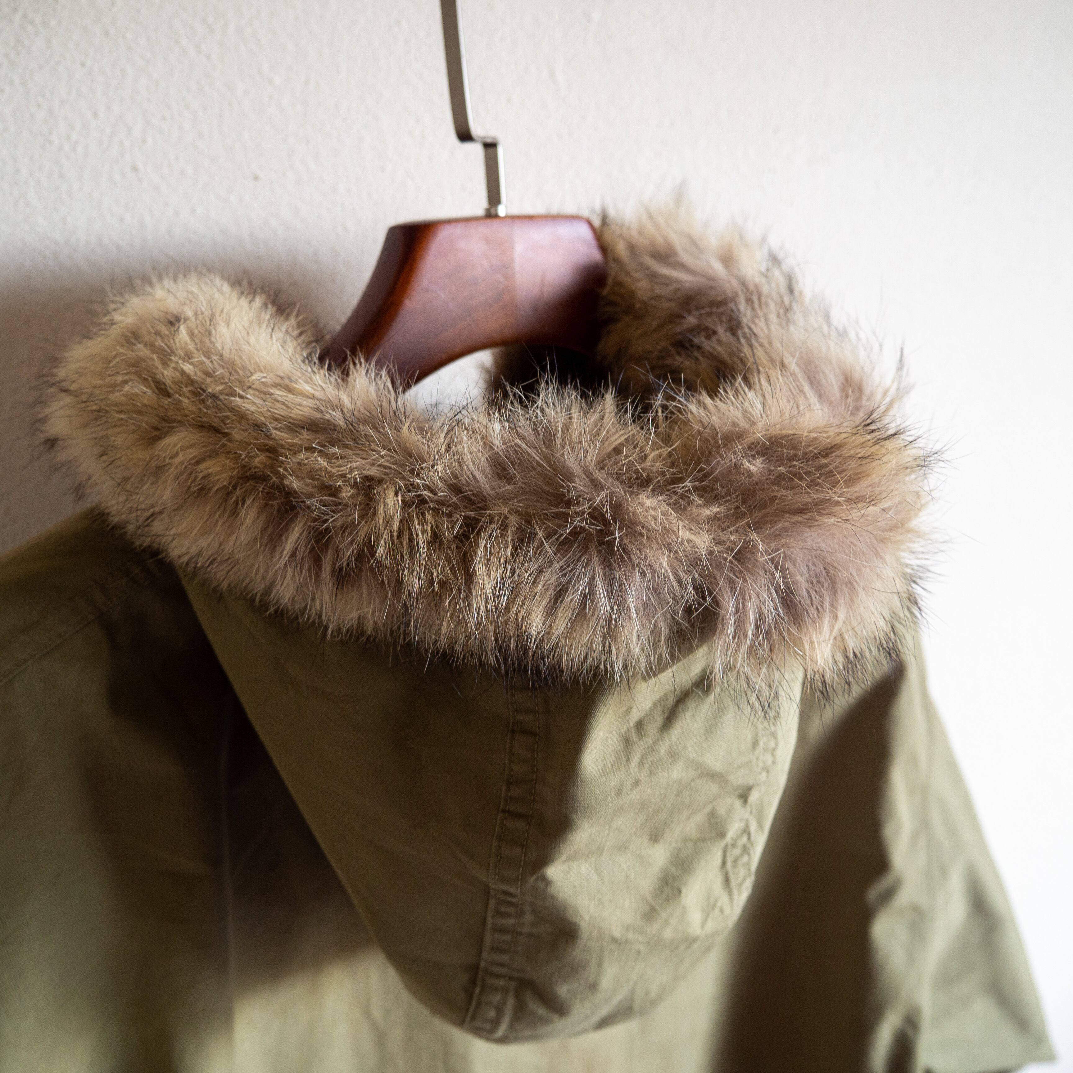 コンディションと致しましては、ODグリーンの表地フロント右下部分に白色の擦れ、裏地の袖ボタンが一点欠損しております。フードのコヨーテファーは抜けもなくバッチリと付属。年代、使用されていた状況を考慮すると概ね良好なコンディションかと思われます。