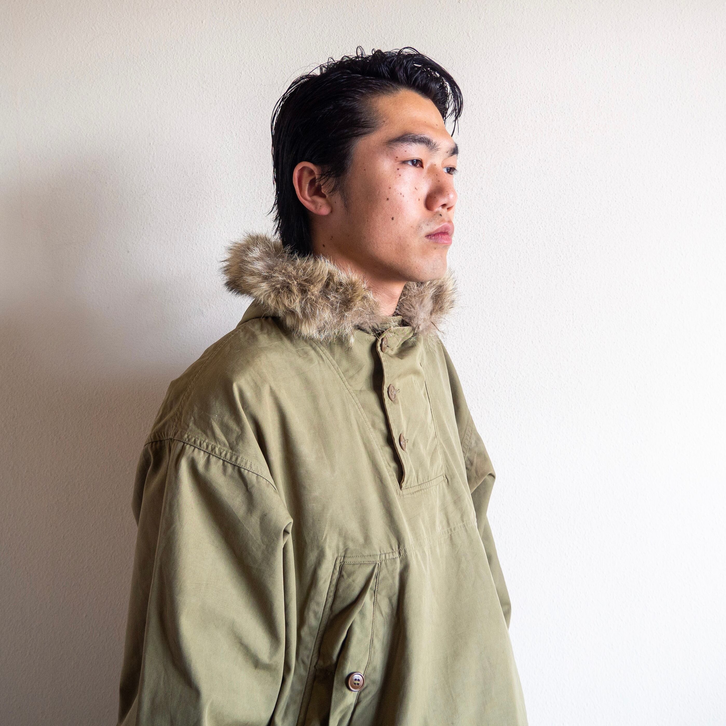 オーバーコートとして使用されていたため、ジャケットの上からでも羽織ることの出来るようにと設計された大きめの作り。フロントには大容量のハンドウォーマーポケットが付属。