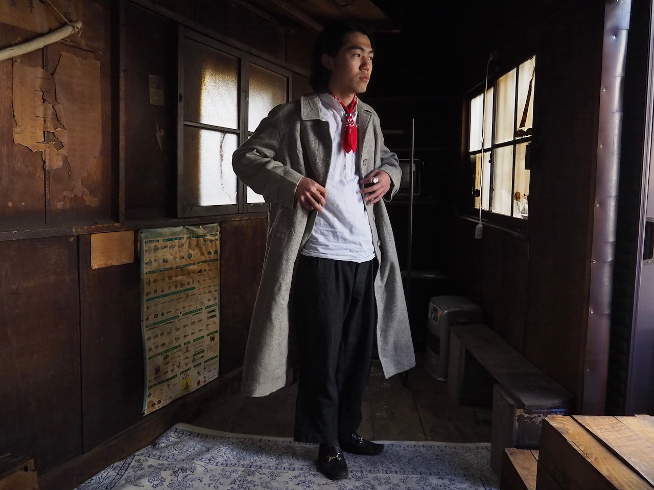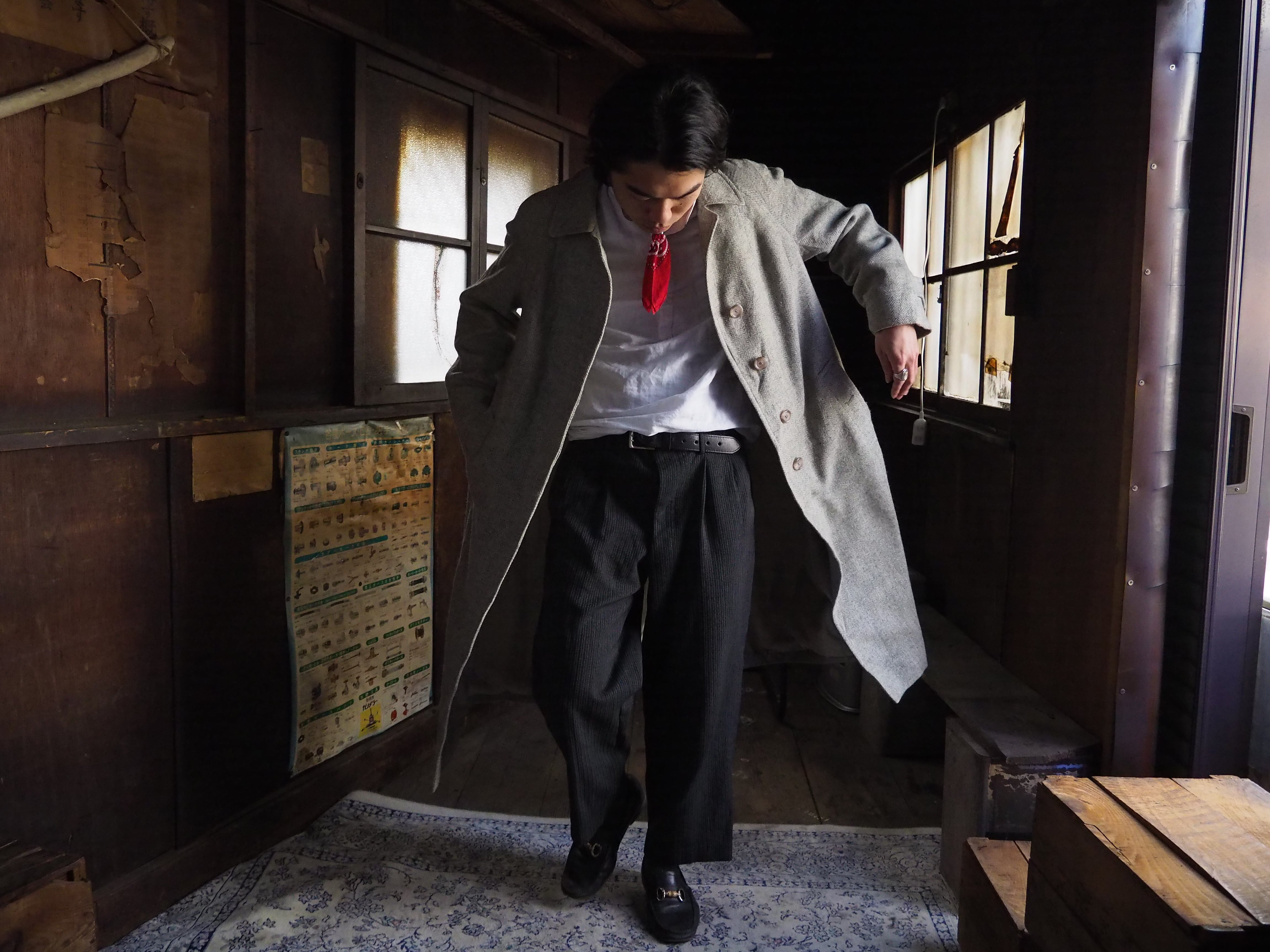 シェットランド産のウールを贅沢に使用したこちらのコート、温かみのあるずっしりとした重みのあるヘビーな素材感、着込んでもヘタレない重厚さが魅力です。