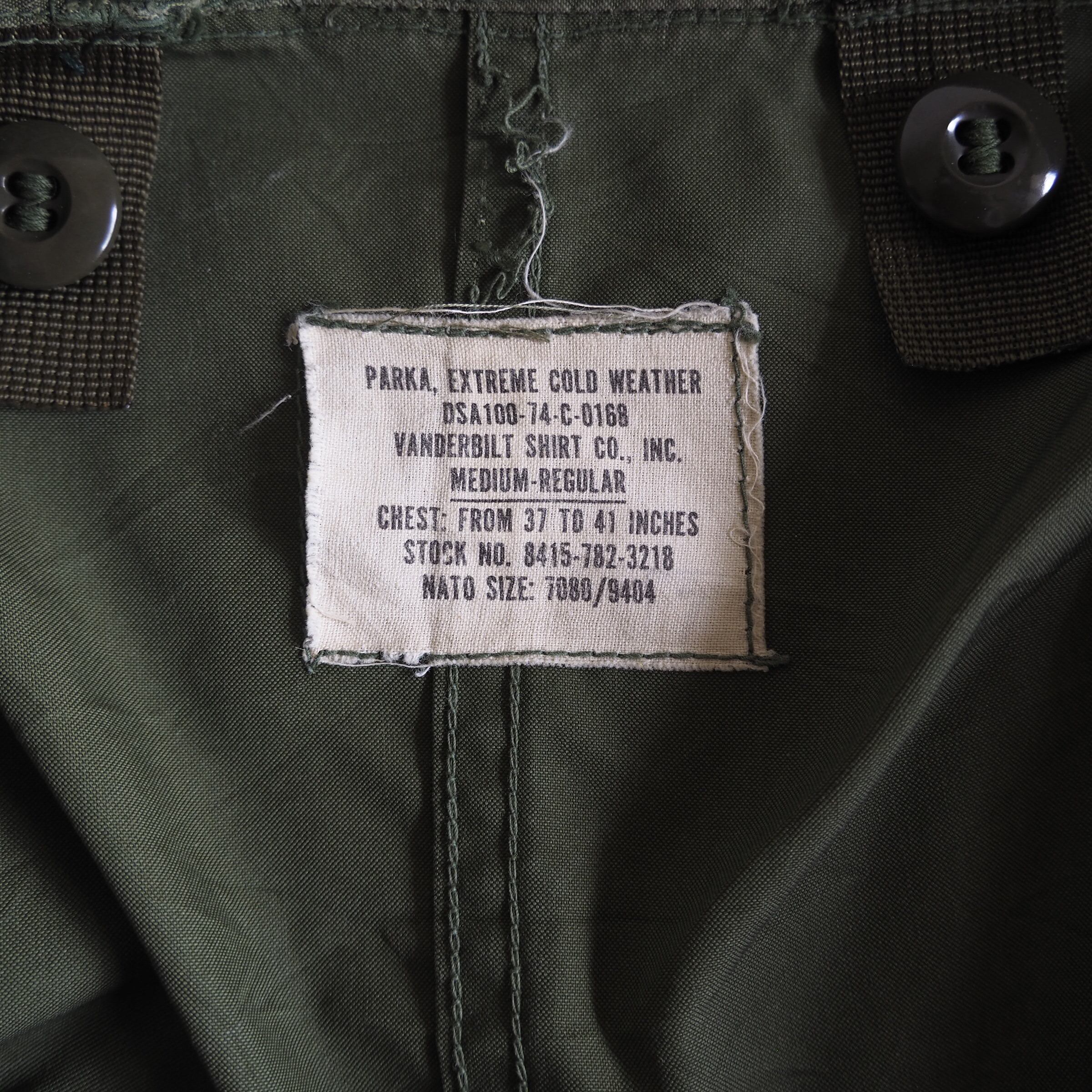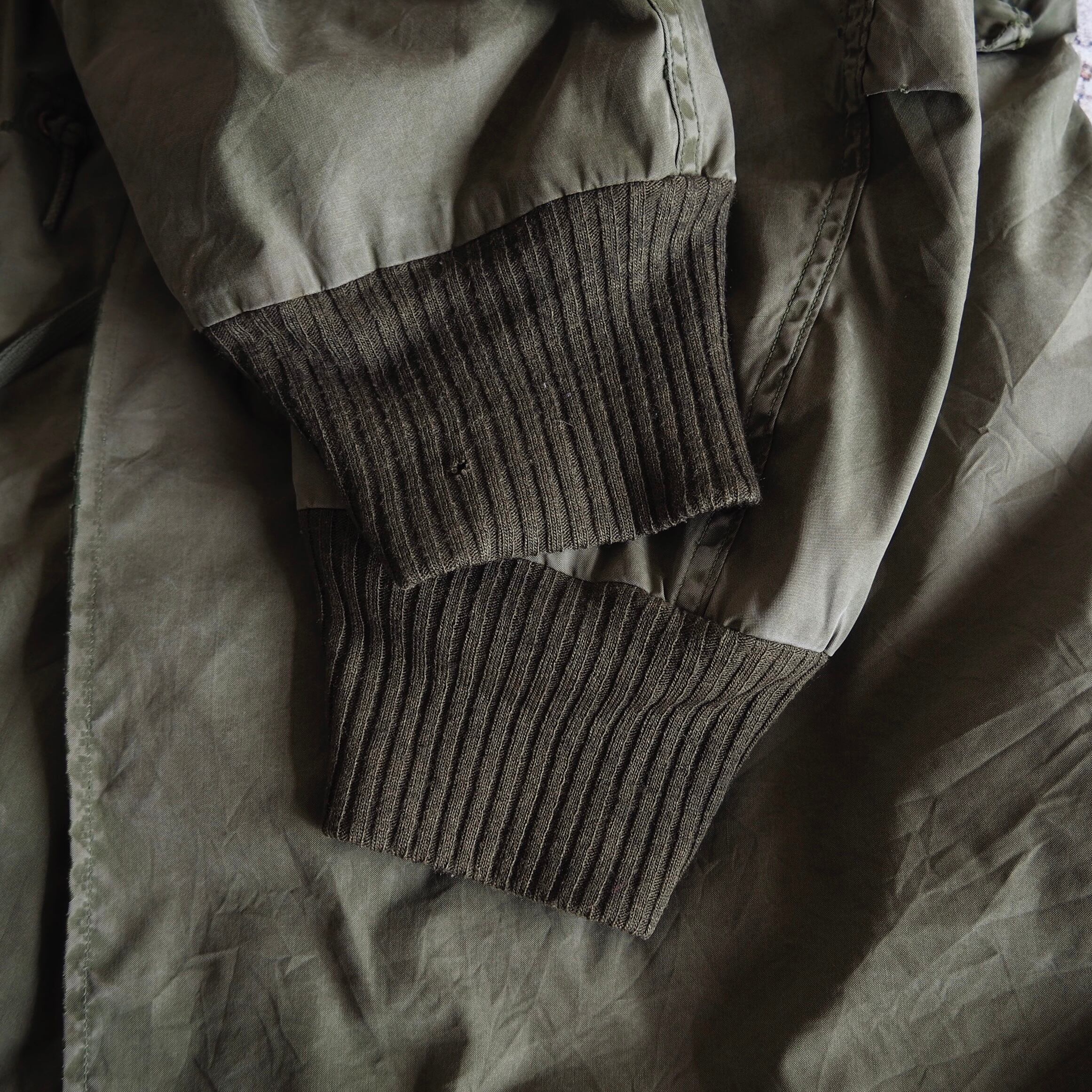 極寒地での戦闘や移動を想定して作られたこちらのパーカー。中にたくさん着込めるように、広めにとられた身幅とアームホールやウエストについたドローコードなど厳しい寒さから身を護るためのディティールが満載です。