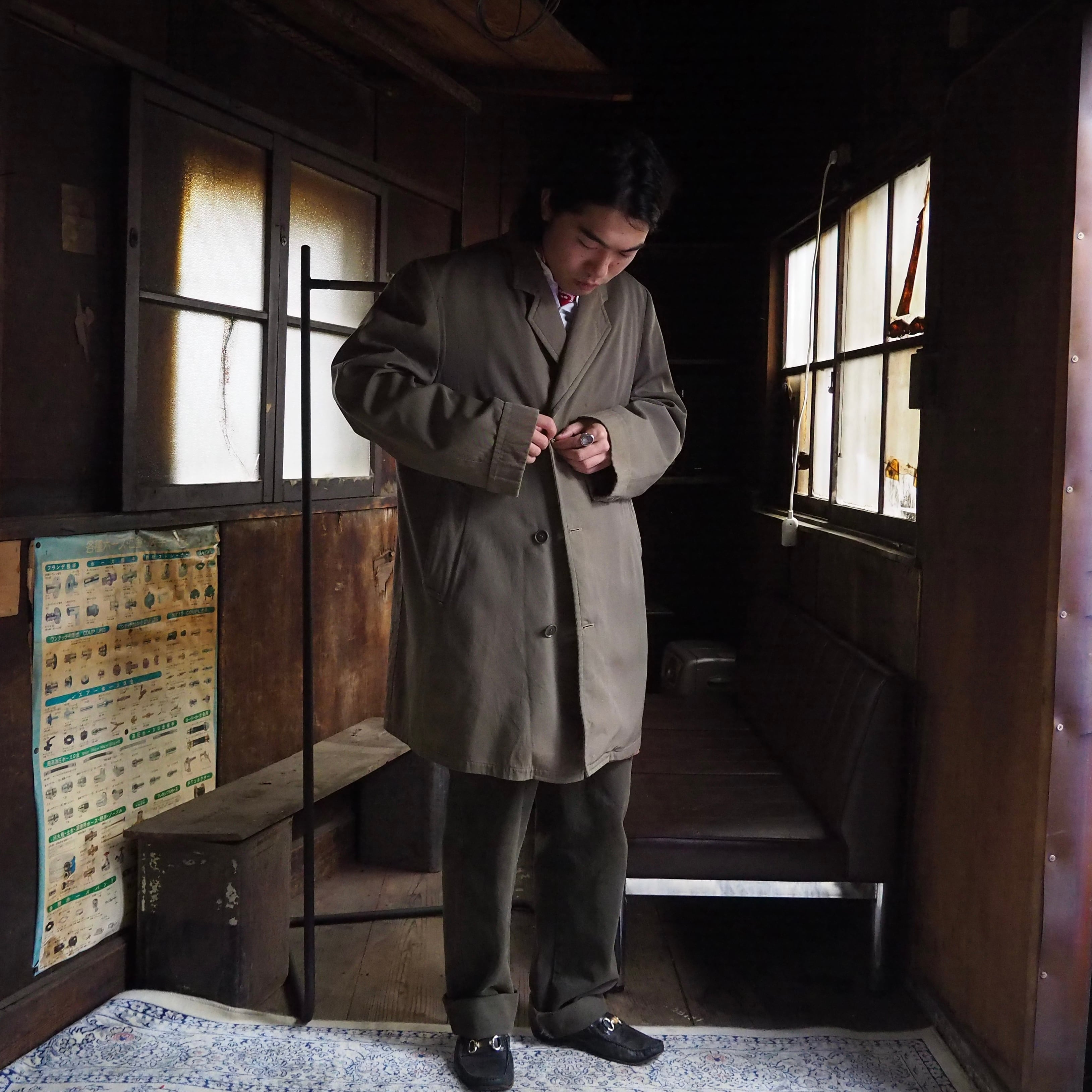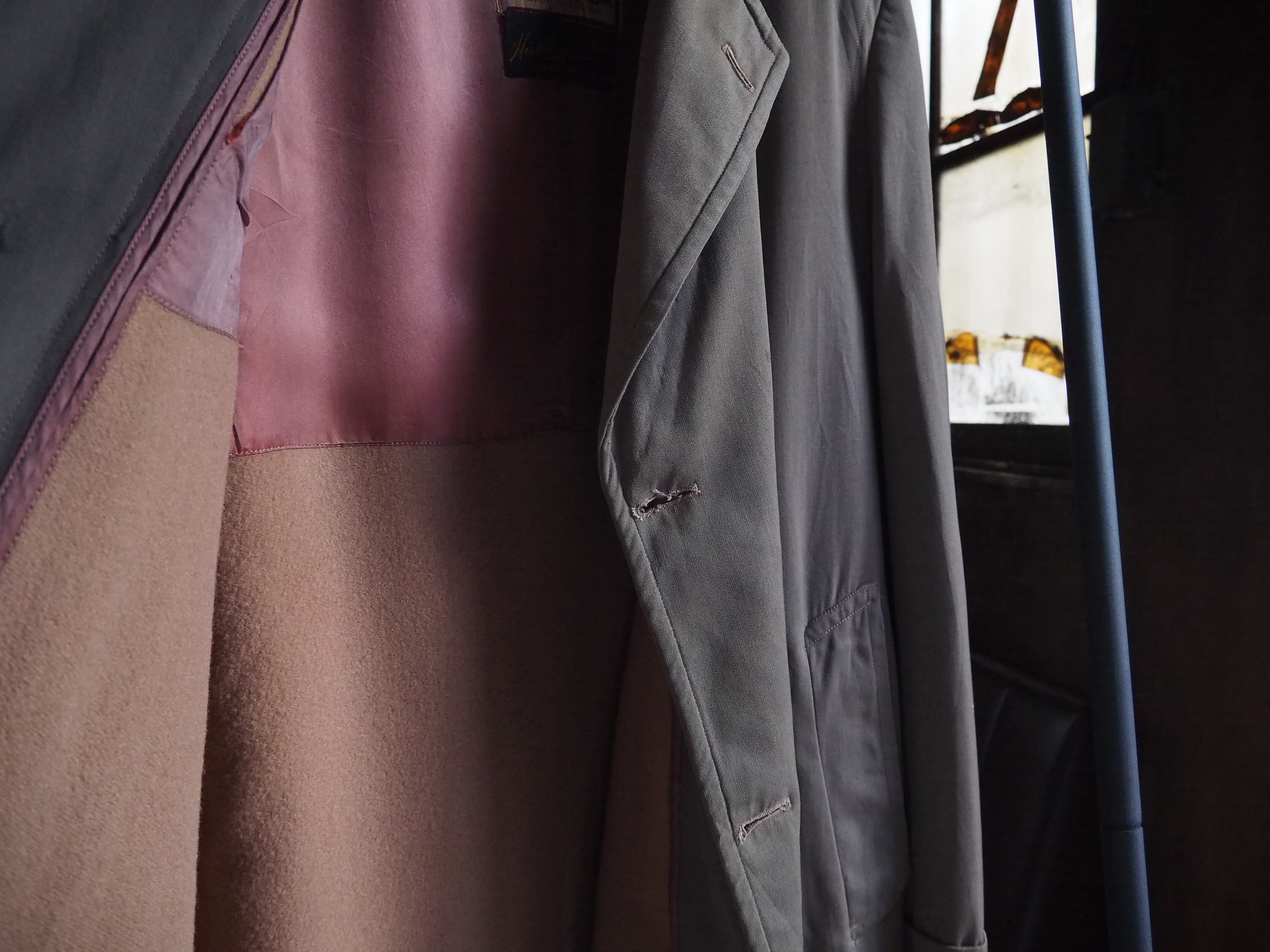 こちらのハーフコートはおよそ70〜80年代に生産されたもの。膝上の丈にテーラード仕様のデザインが特徴的です。