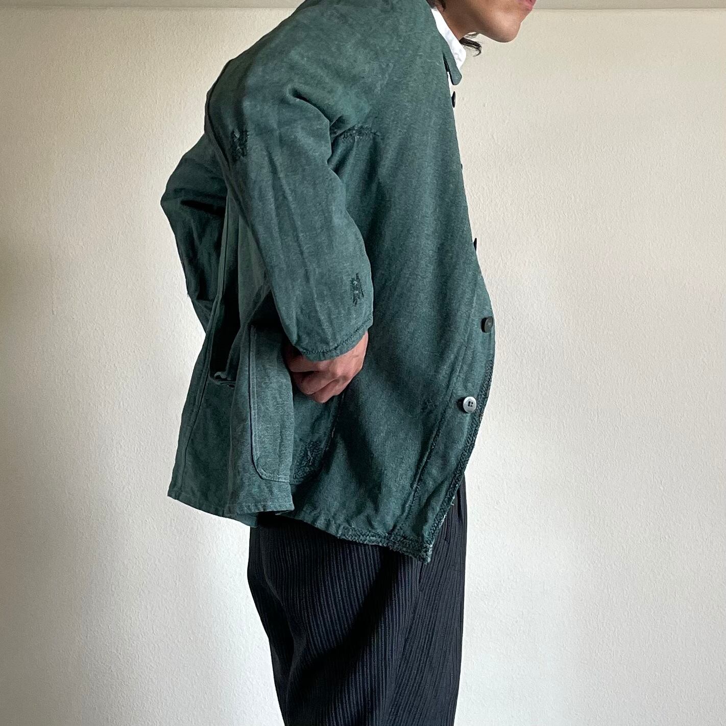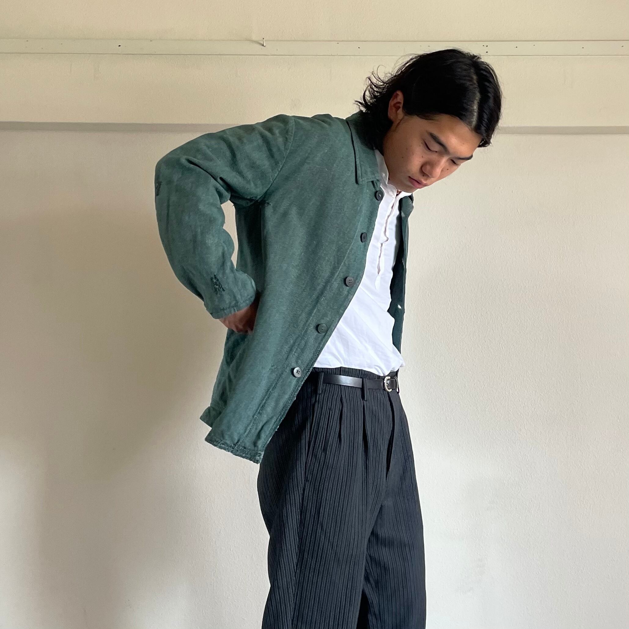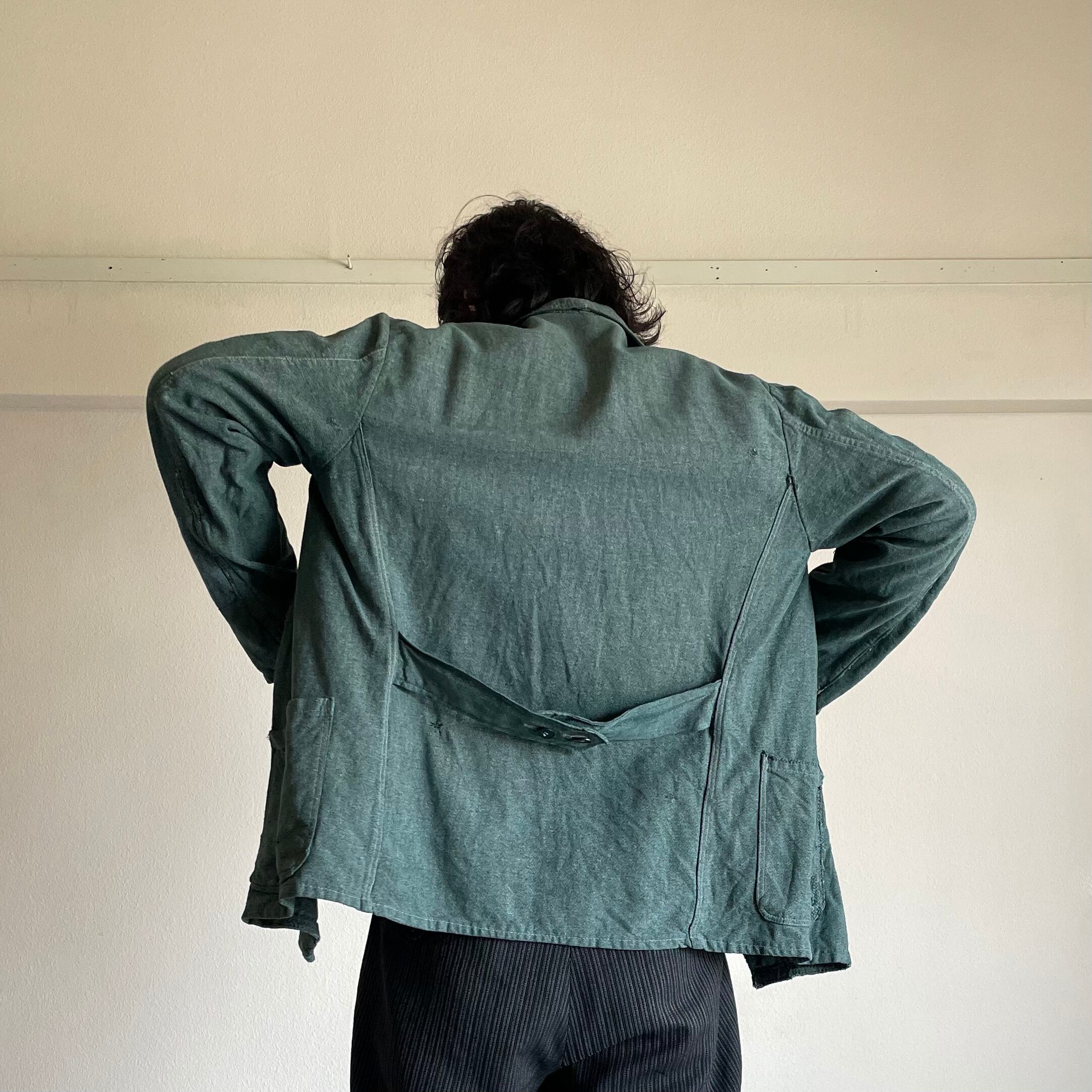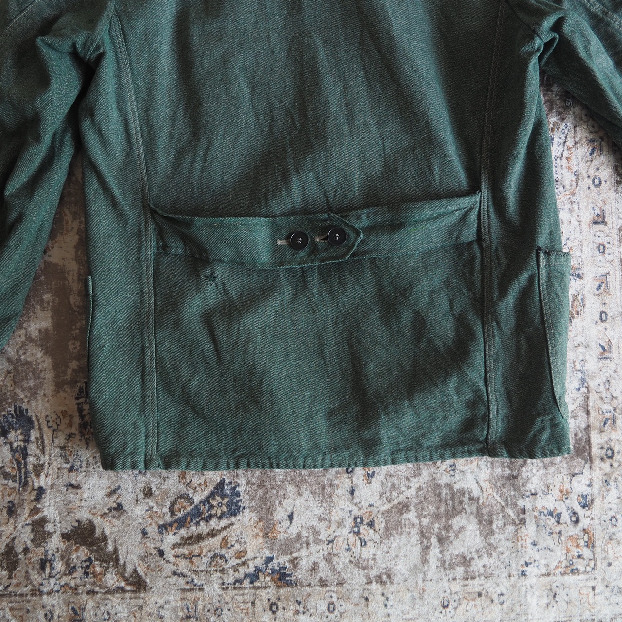 フロントにはポケットが3つ。バックにはベルトが付属します。落ち着いた色味が着こなしに取り入れやすいのでは無いでしょうか。所々に散見される手作業による丁寧なお直しの跡からは当ジャケットを受け継いできた人たちの温もりと愛着がひしひしと感じられます。
