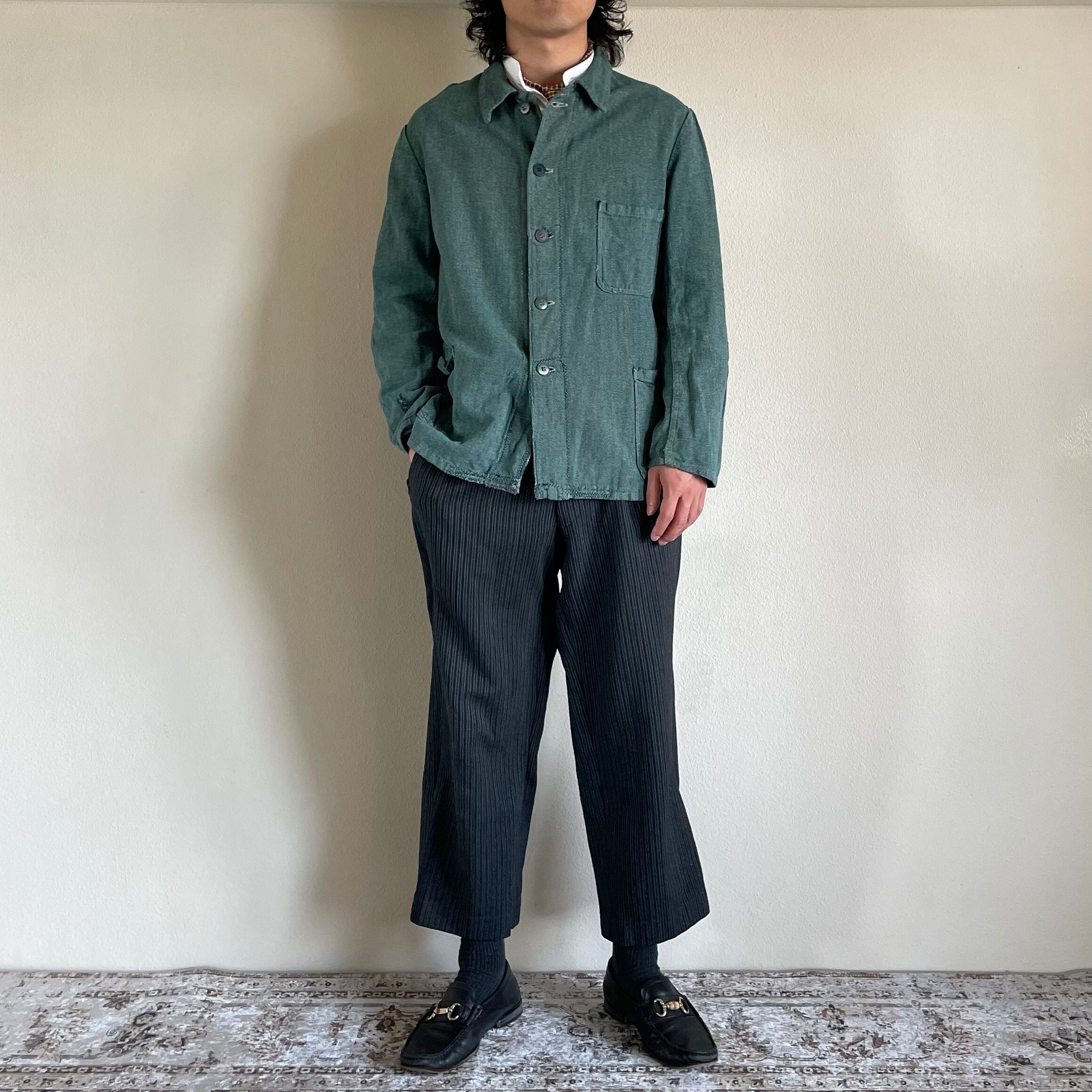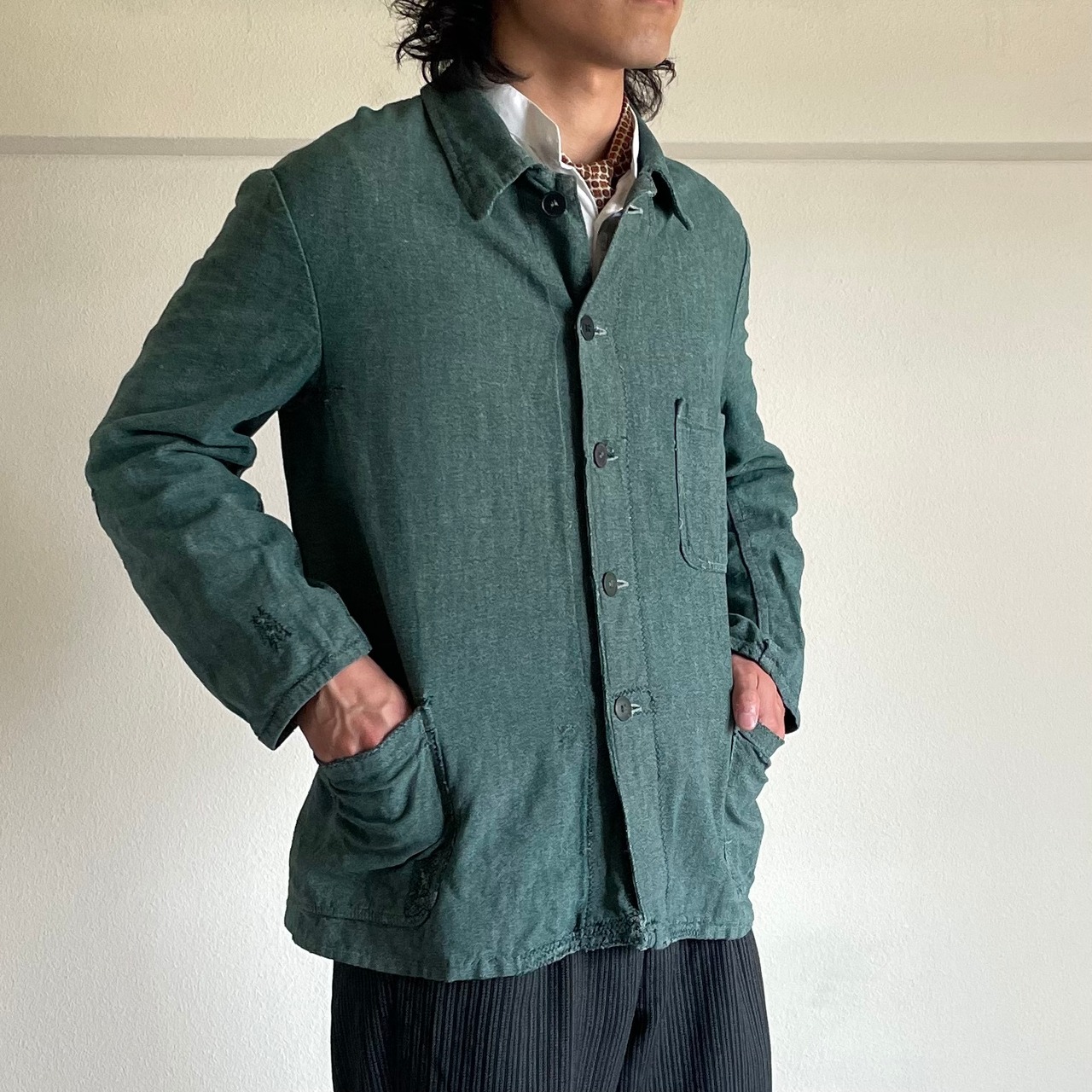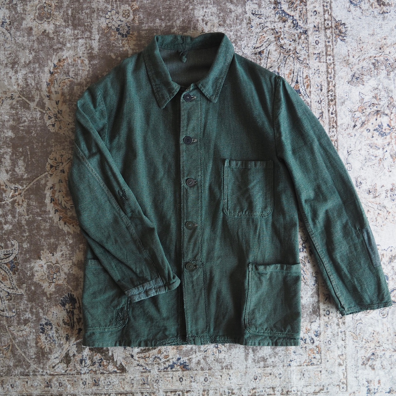 フロントにはポケットが3つ。バックにはベルトが付属します。落ち着いた色味が着こなしに取り入れやすいのでは無いでしょうか。所々に散見される手作業による丁寧なお直しの跡からは当ジャケットを受け継いできた人たちの温もりと愛着がひしひしと感じられます。