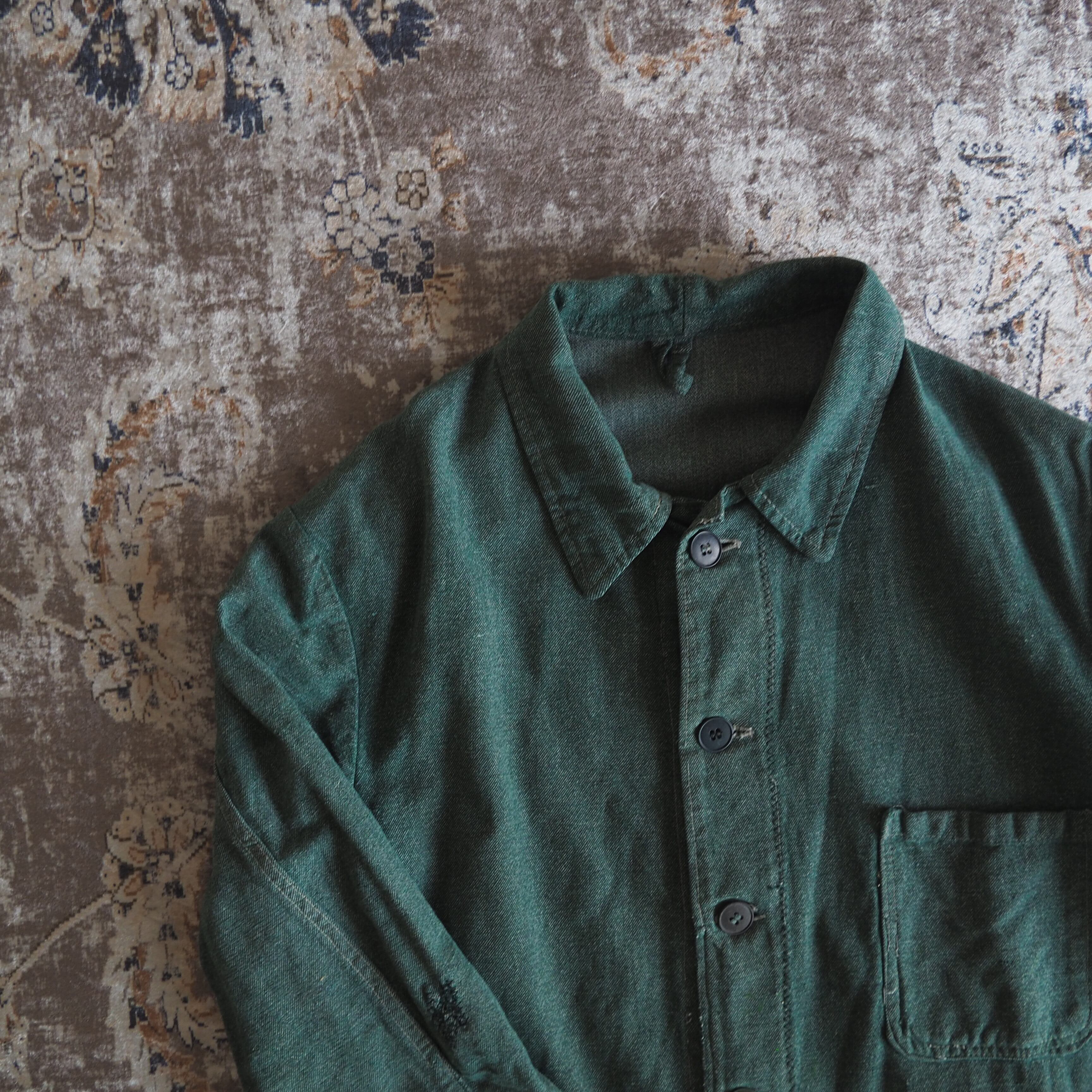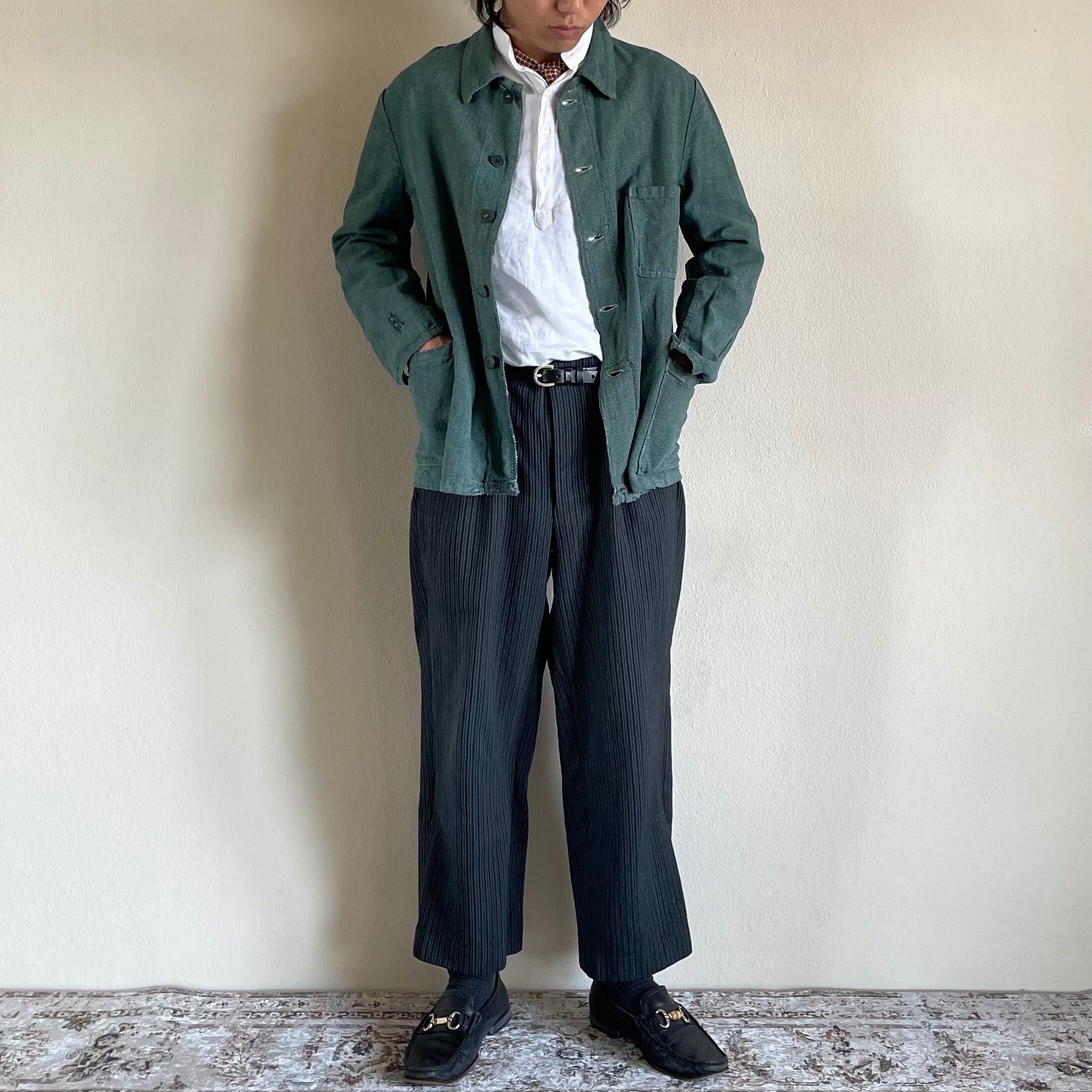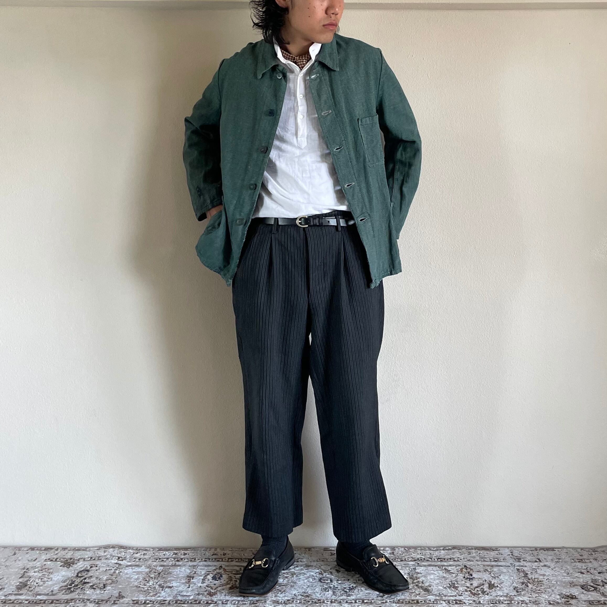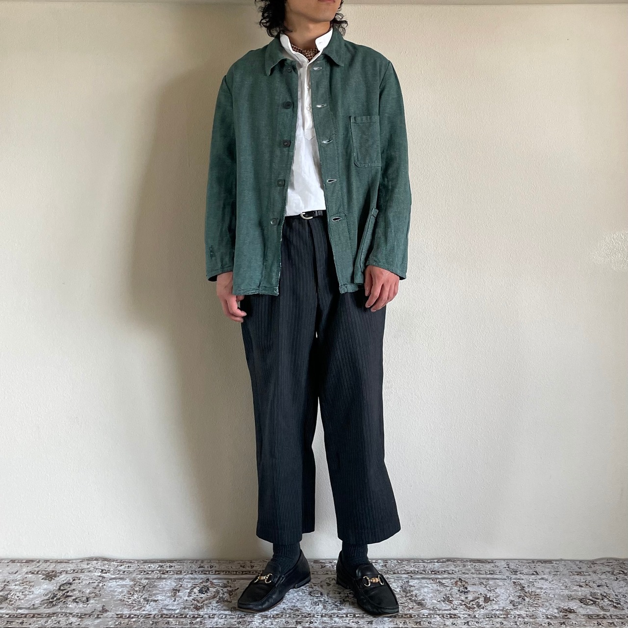 フロントにはポケットが3つ。バックにはベルトが付属します。落ち着いた色味が着こなしに取り入れやすいのでは無いでしょうか。所々に散見される手作業による丁寧なお直しの跡からは当ジャケットを受け継いできた人たちの温もりと愛着がひしひしと感じられます。