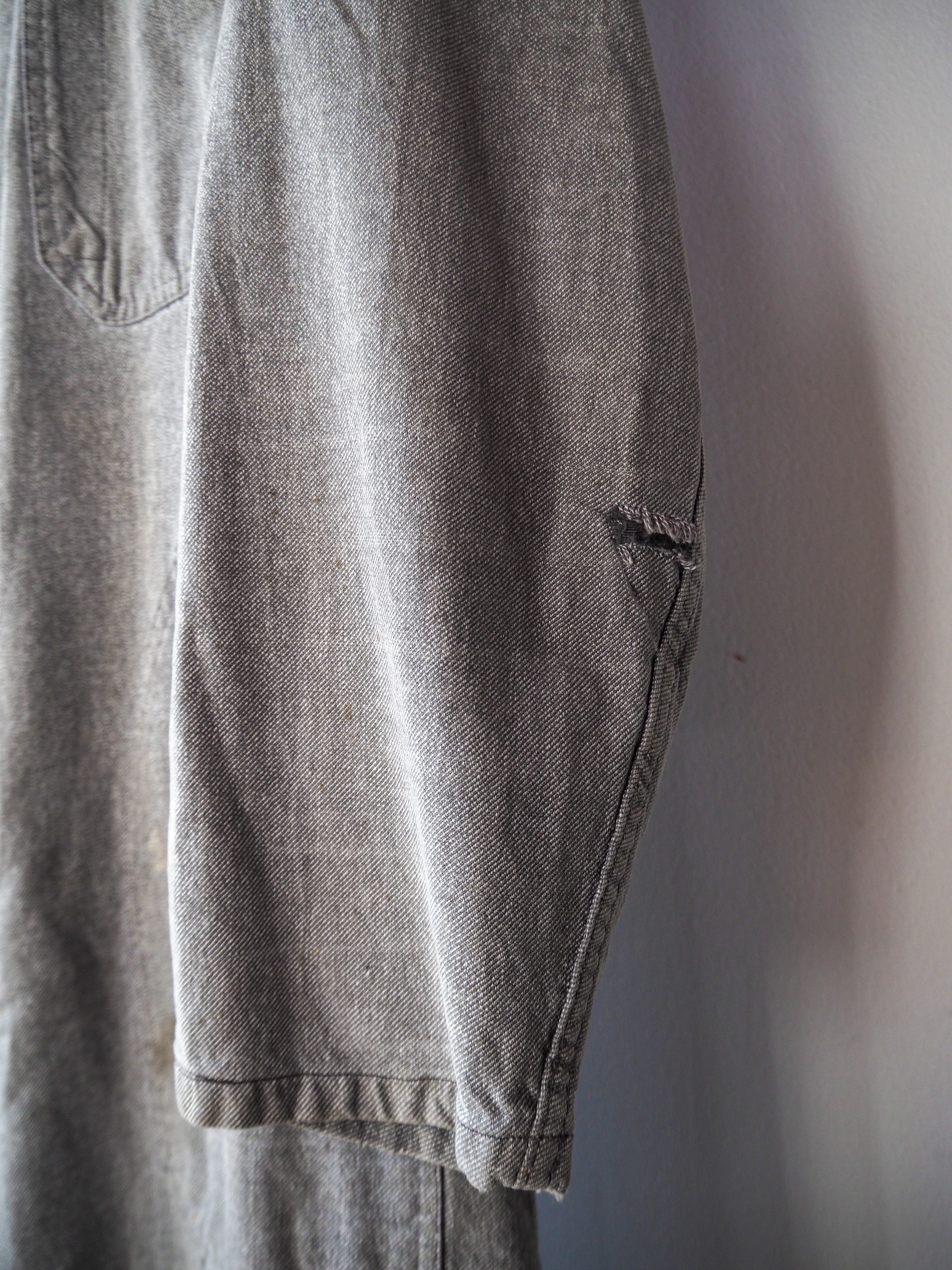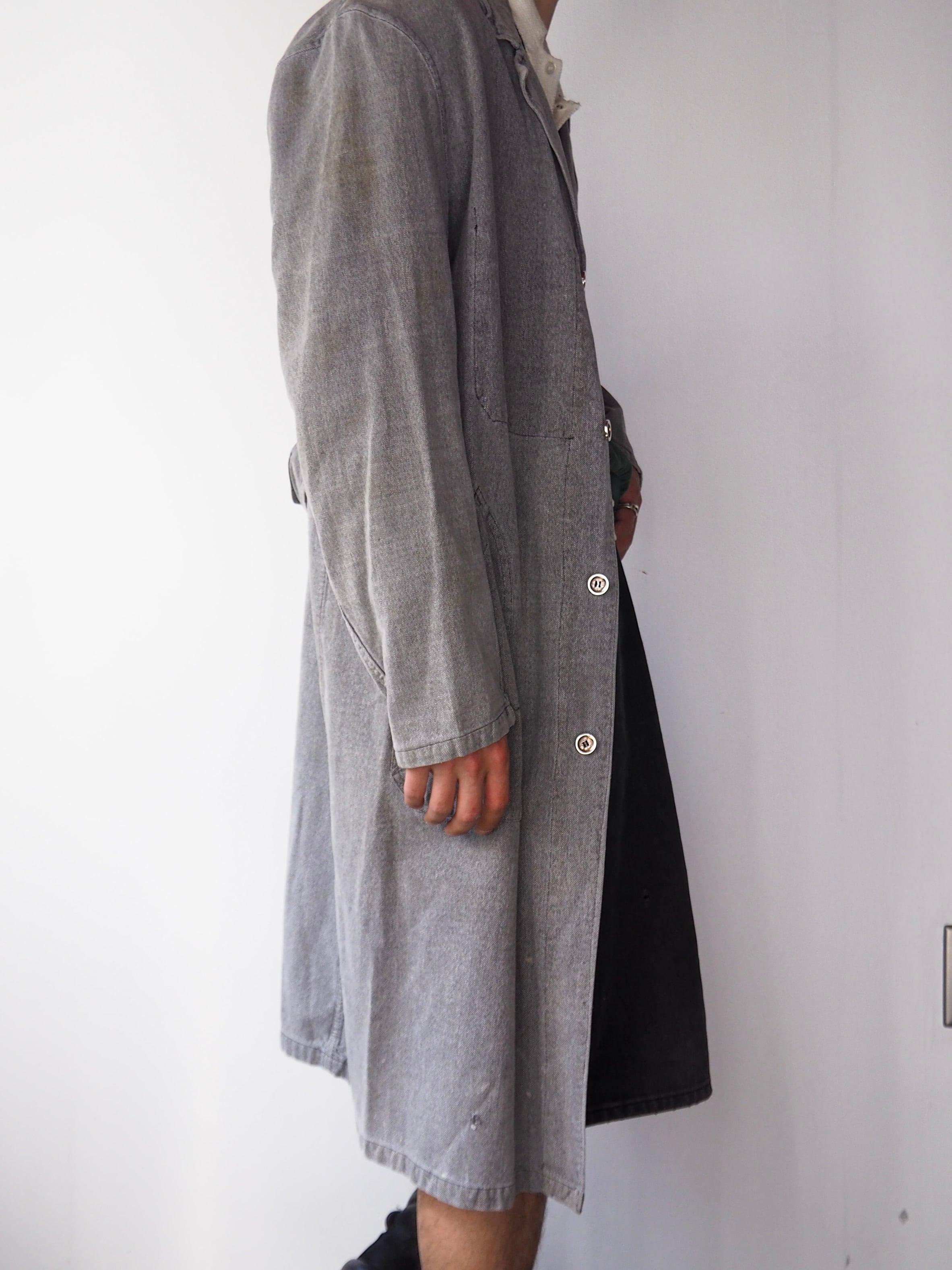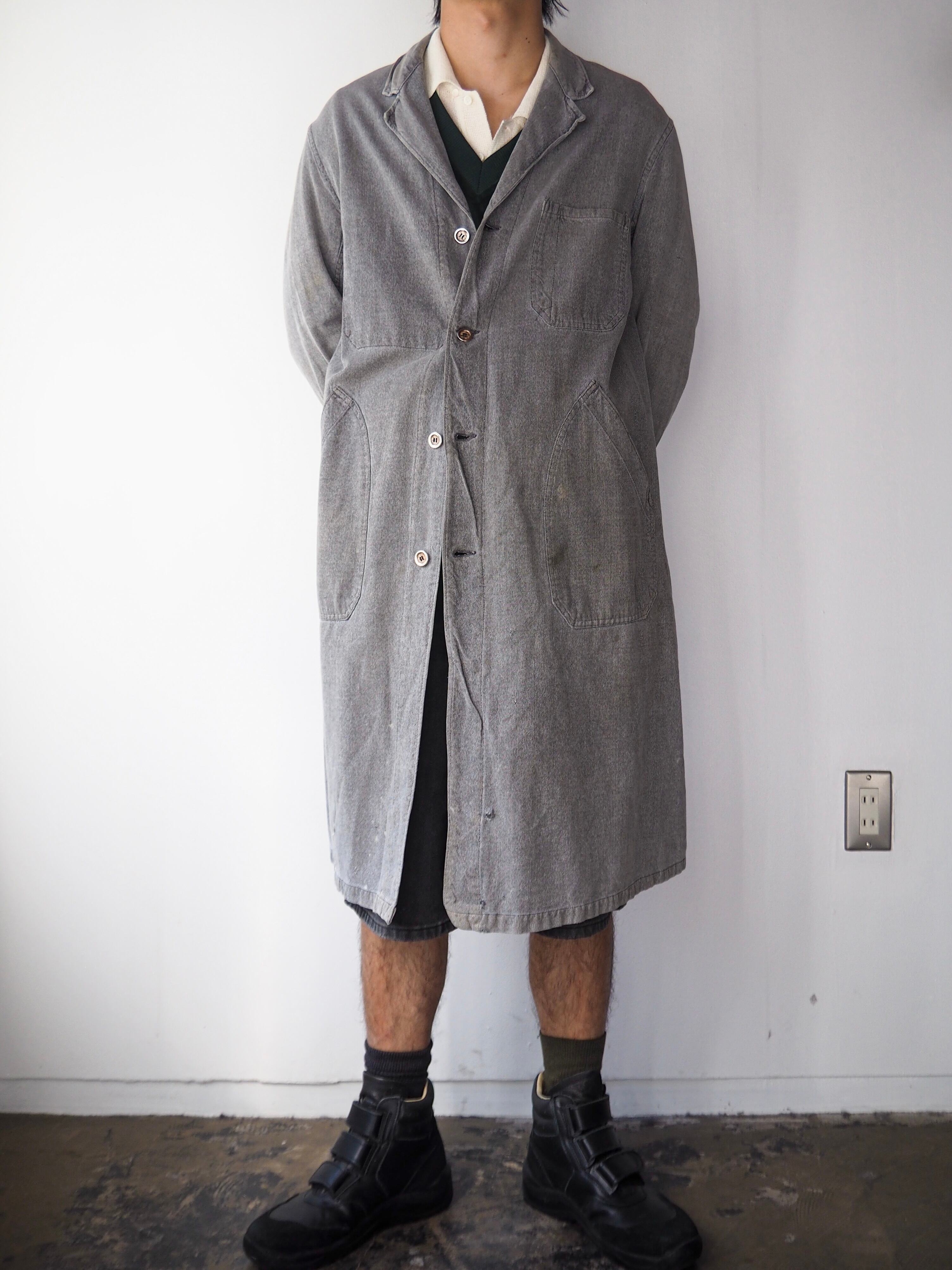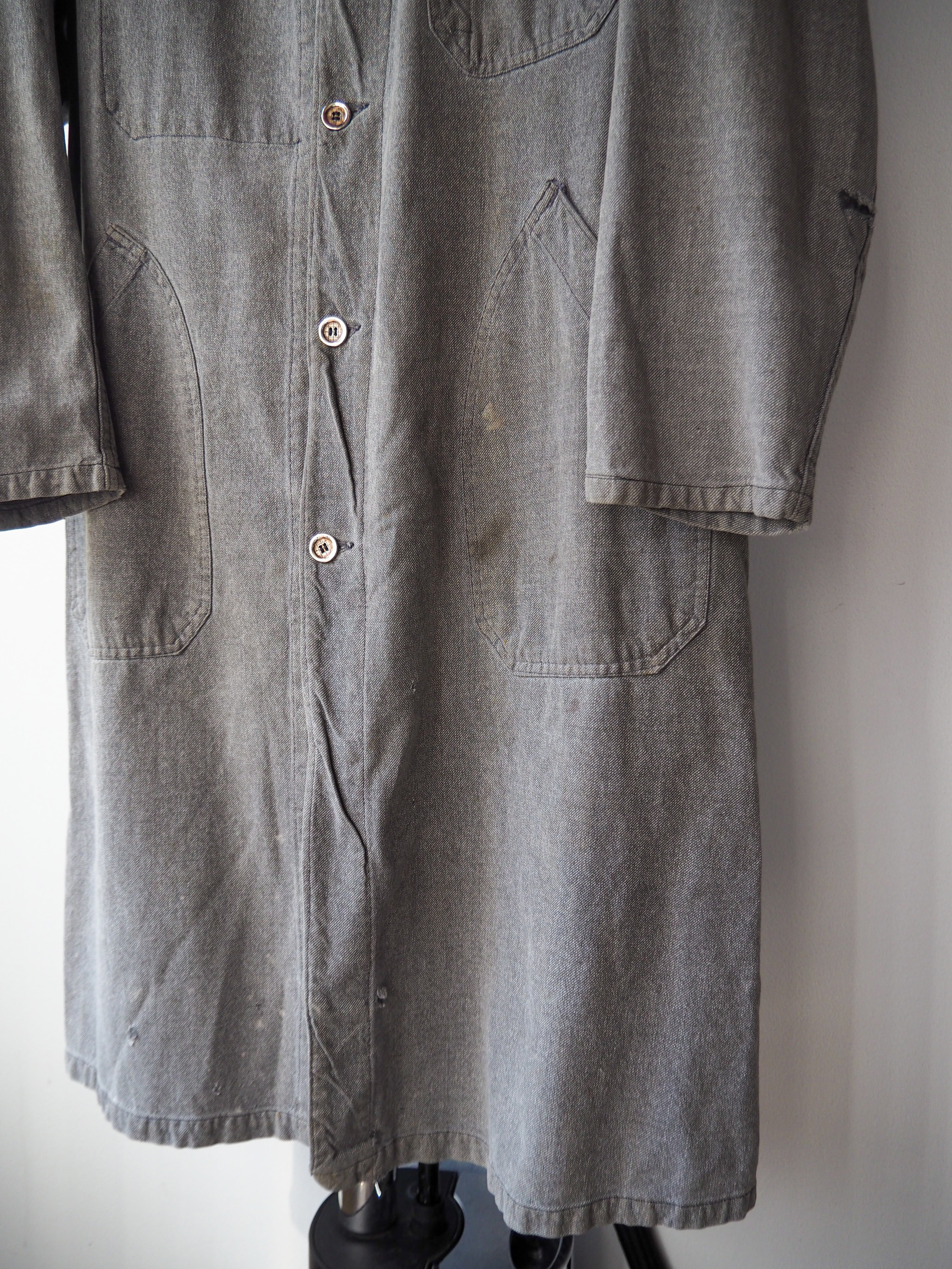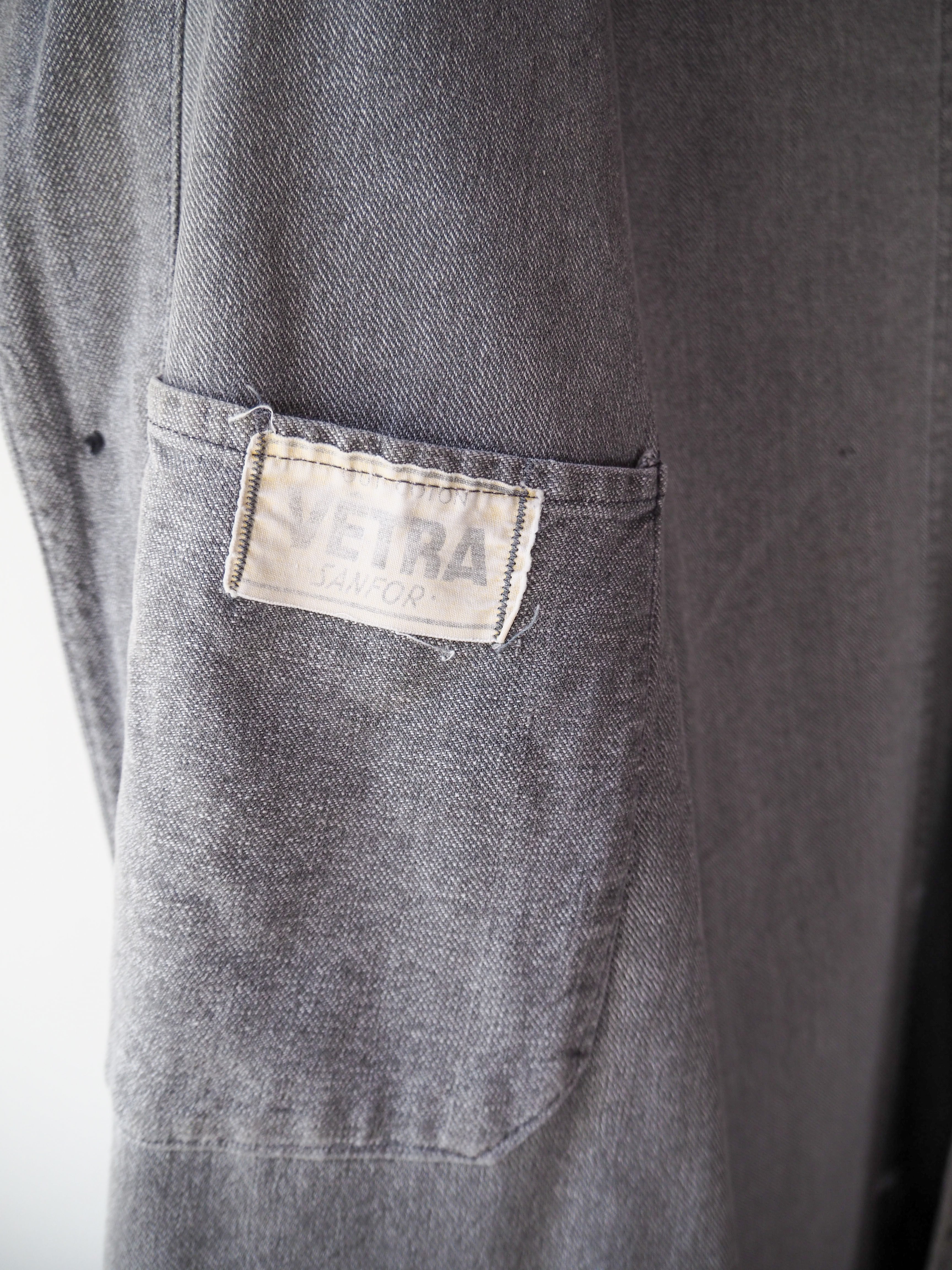 コントラクターは1927年創業のフランスの老舗ワークウェアブランド「VETRA」。ブランド名の上に「TOUT COTON」の表記が入る50年代あたりのタグが付属。フロントにはアトリエコートとしてはかなり珍しいアルミのボタンが採用されております。
