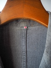 襟元の詰まった小さなテーラード襟、形の良い胸ポケット、大きなD型の腰ポケット、バックにはベルトが付属するマルタンガル仕様。