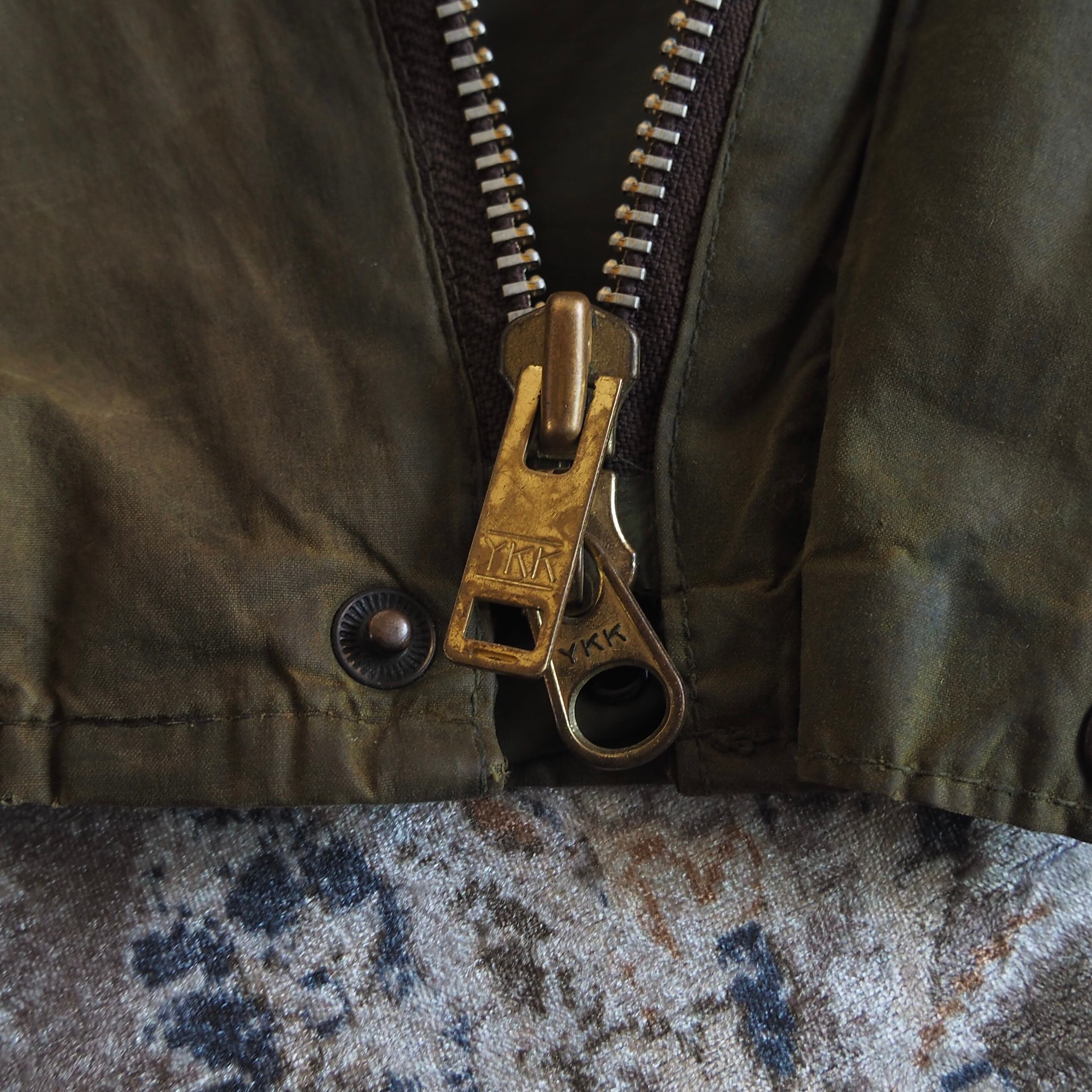 2ワラント時代の旧モデルのバブアー。保管による微細な皺が現行新品では出せない雰囲気を出してくれています。いい具合にオイルも抜けているので、ベタベタすることもない良い塩梅です。裏地の状態も良好。ルアーを引っ掛けるためのDリングも右胸、左脇下、両方残っています。Vintage SpeyのDリングが両方とも残っていることは非常に珍しく、大抵どちらか、もしくは両方のDリングが取れてしまっている事も決して珍しいことではありません。