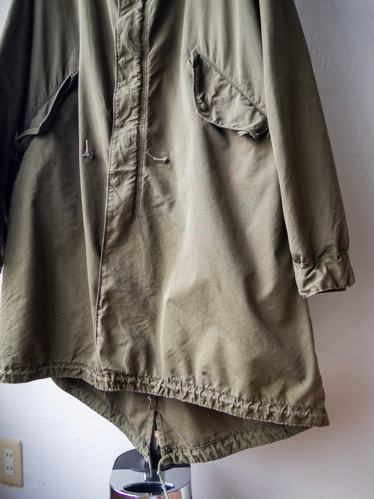 背面テール部分にリペア痕、細かなオイル汚れが数点見られますがジッパー稼働良好、リブのゴムもばっちりと伸縮性を保っておりまずまずのグッドコンディションと言えるかと思います。