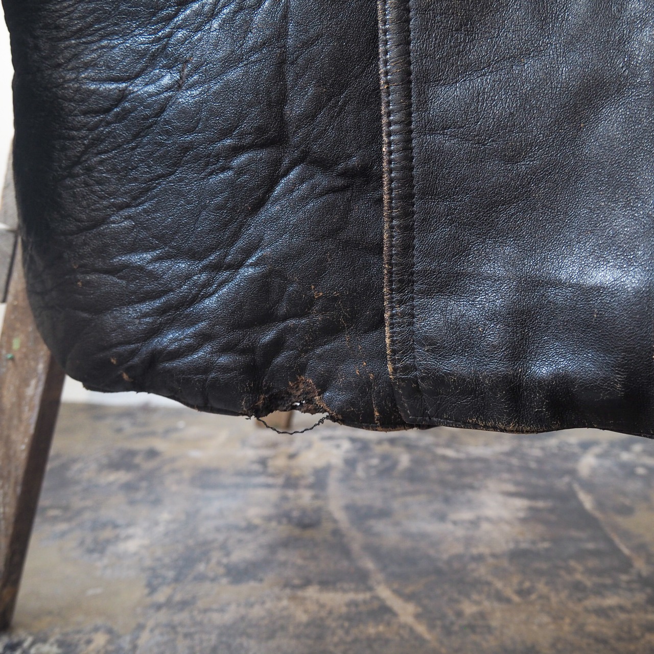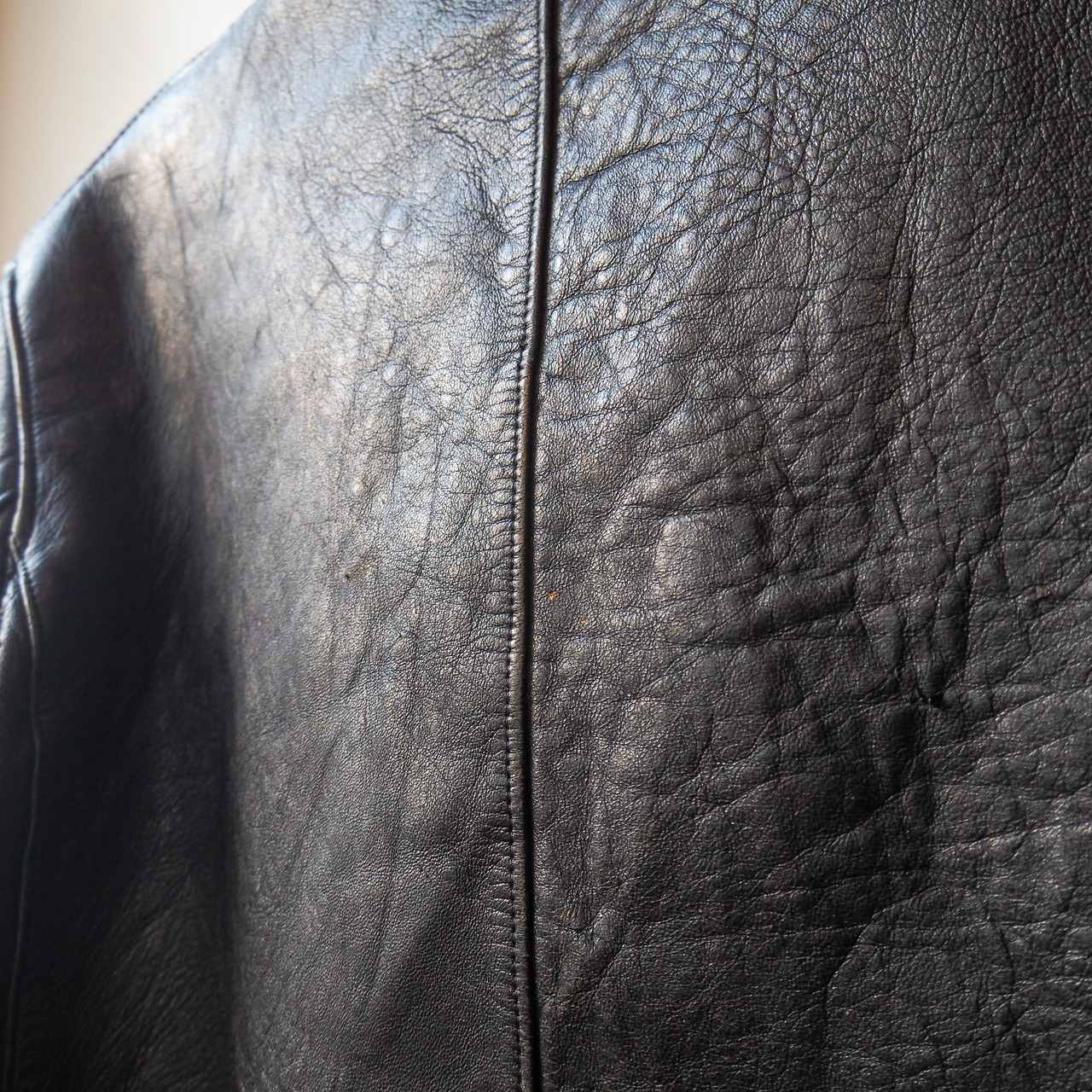 経年が加わったレザー生地は適度な厚みがありながらも柔らかく、質感の伝わる鈍い光沢が心を揺さぶるたくましさ。