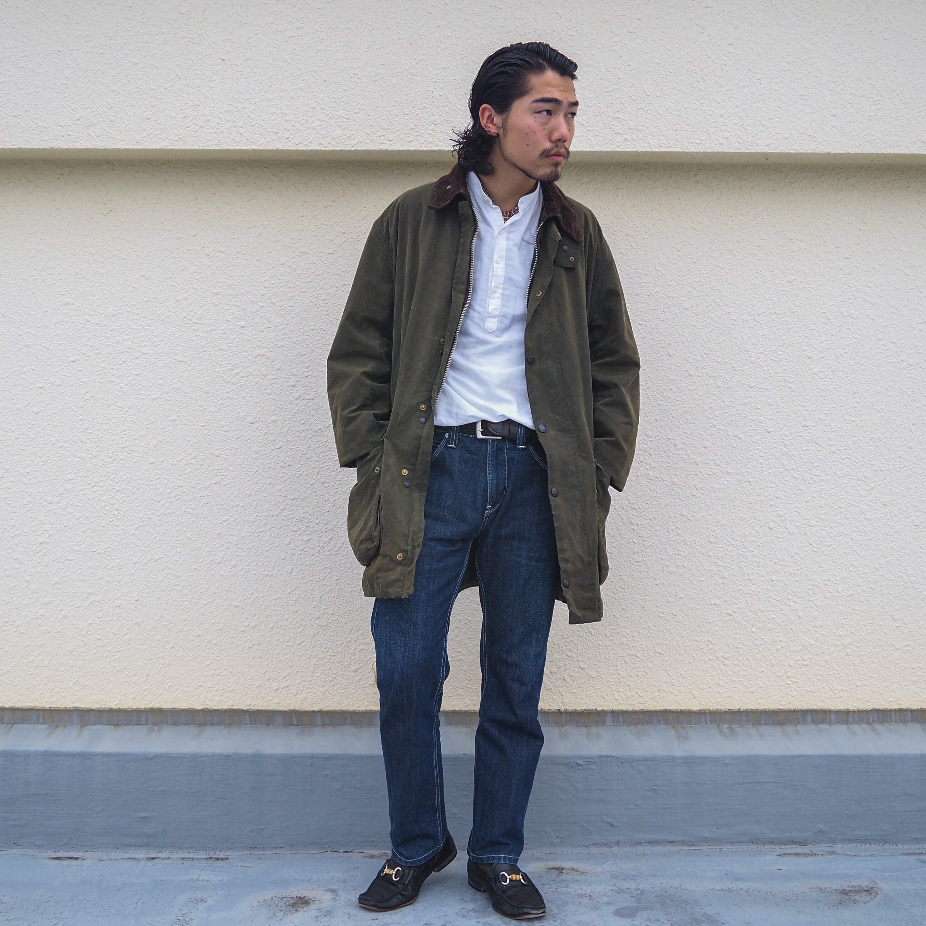 90年代後半に廃盤となったノーザンブリア。エジプト綿を使用した8ozヘビーウェイトコットンのオイルドクロスの生地と、独特の着丈の長さは既存のバブアーでは味わうことのできない魅力です。