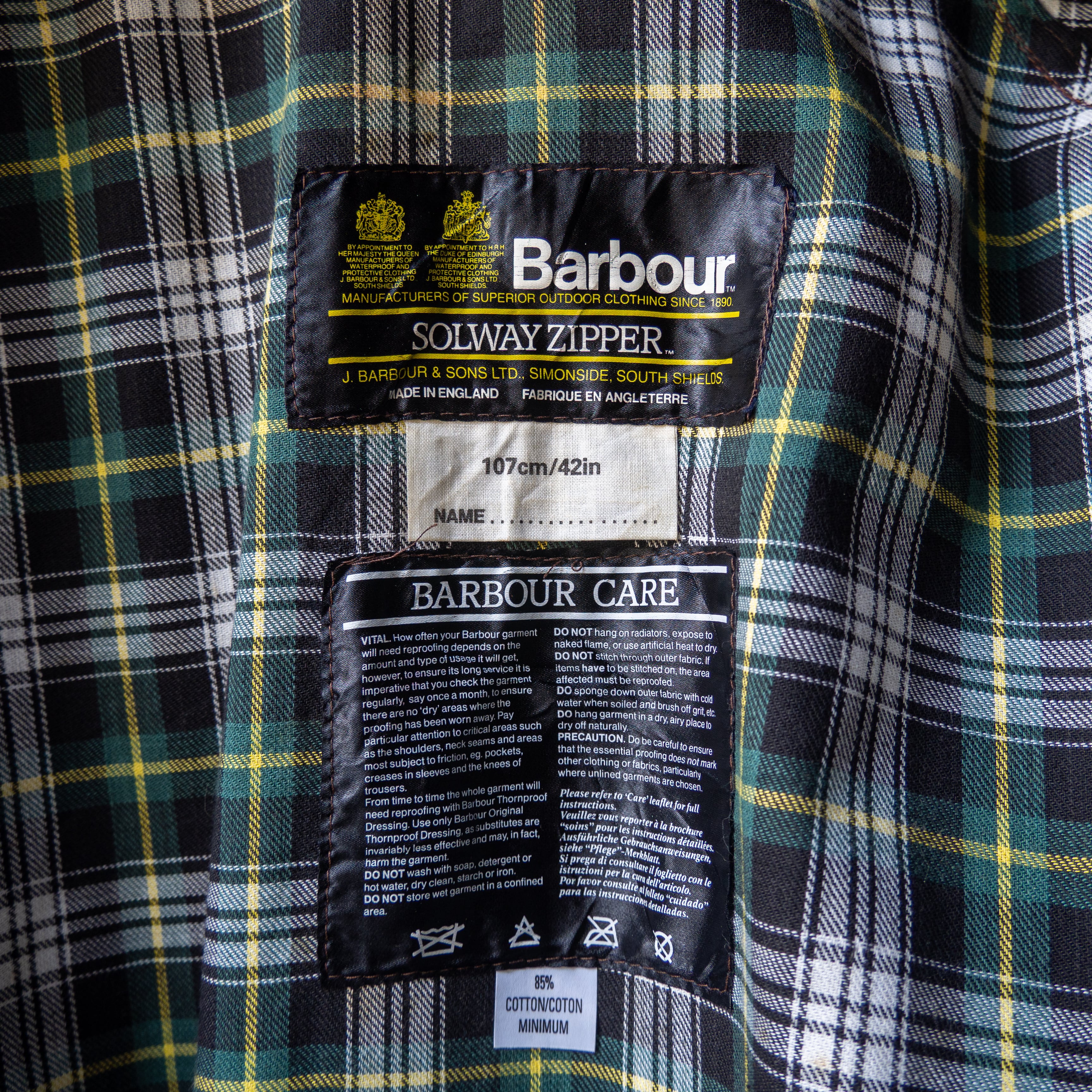 一つめはSolway Zipperがエディンバラ公爵フィリップ王配より”Royal Warrant”をBabourの中で最初に授与されたプロダクトである点。