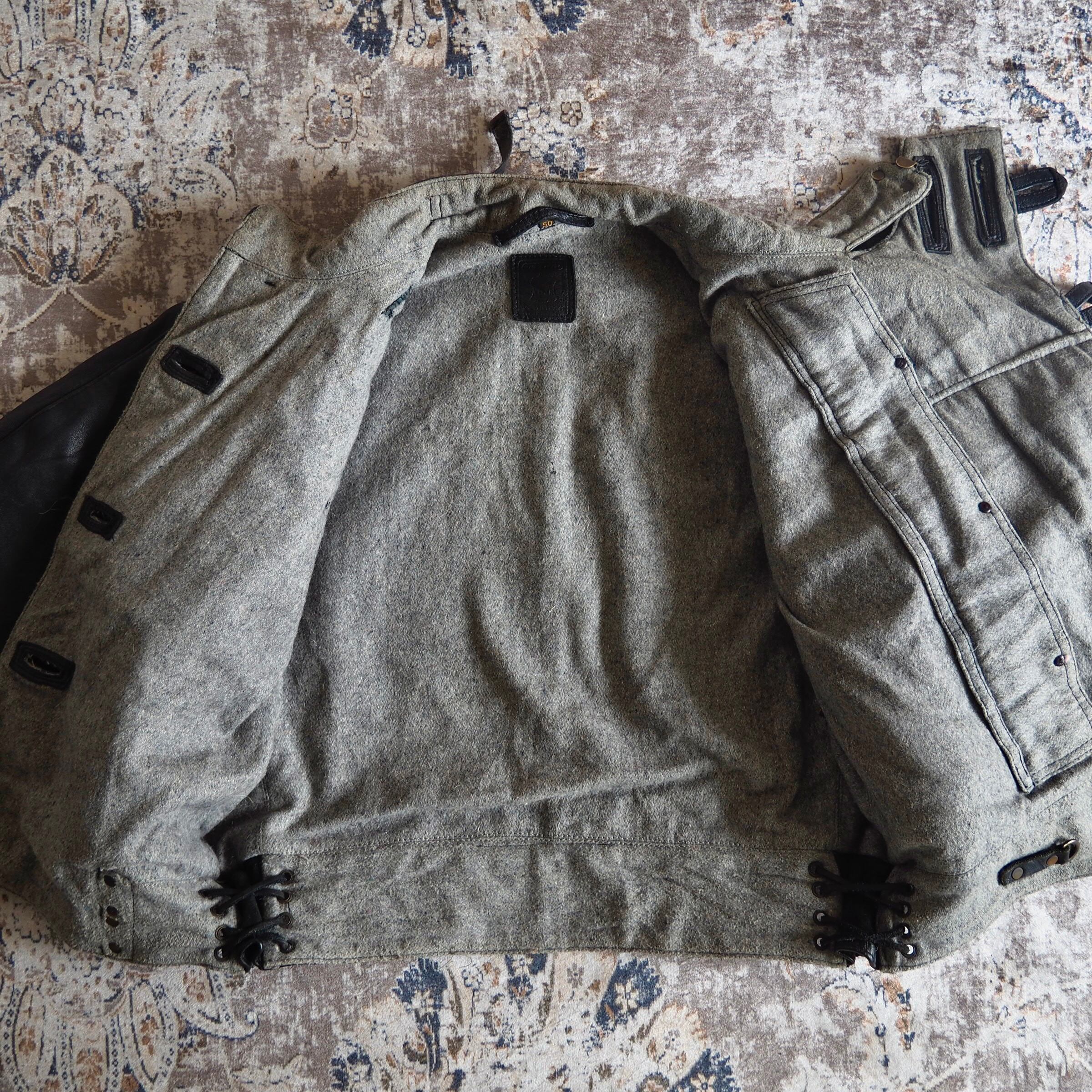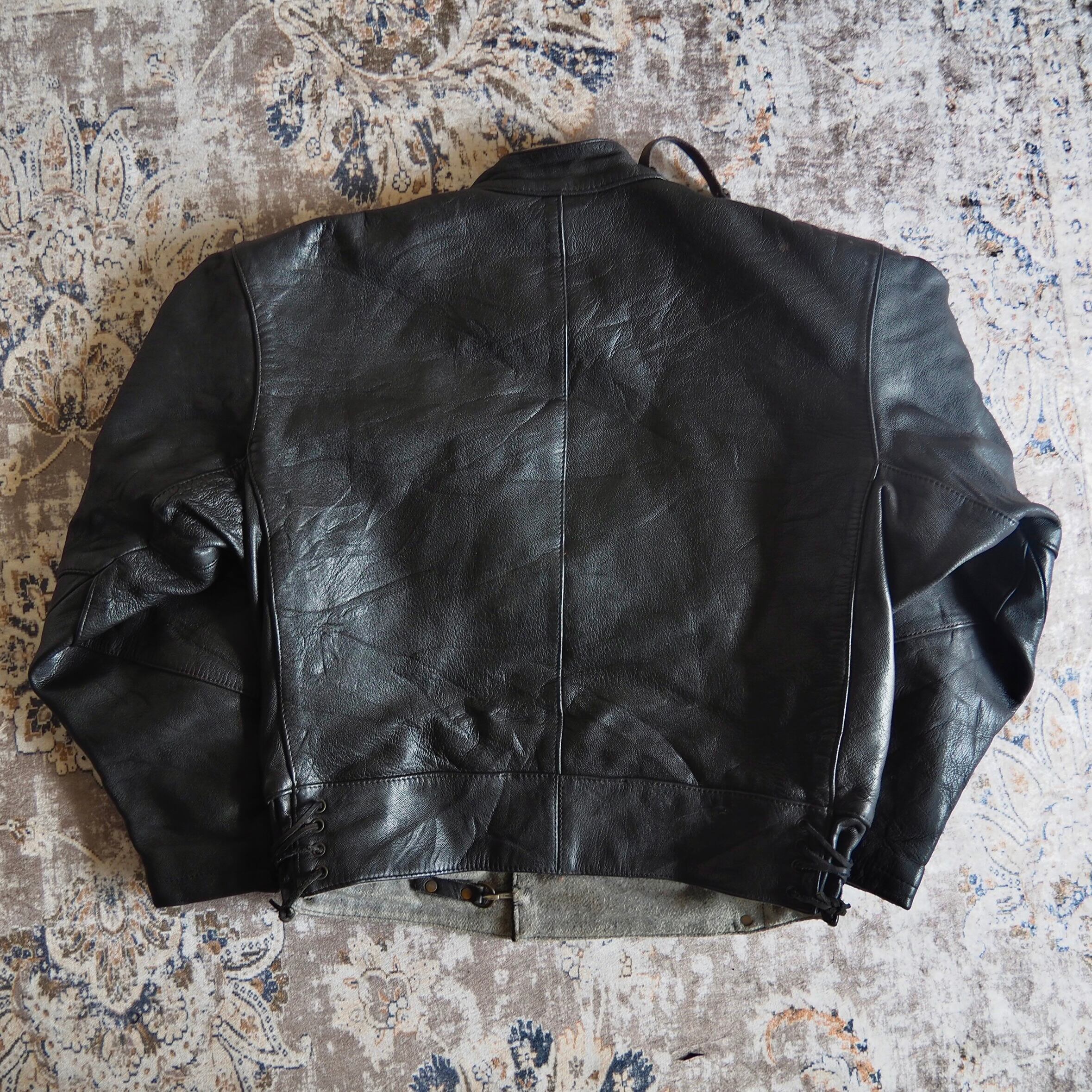 1915年からスウェーデン軍のバイク部隊で着用されていたモーターサイクルジャケットをデザインソースに、1980年頃に作られたドイツ製ダブルブレスト仕様のレザージャケットのご紹介です。