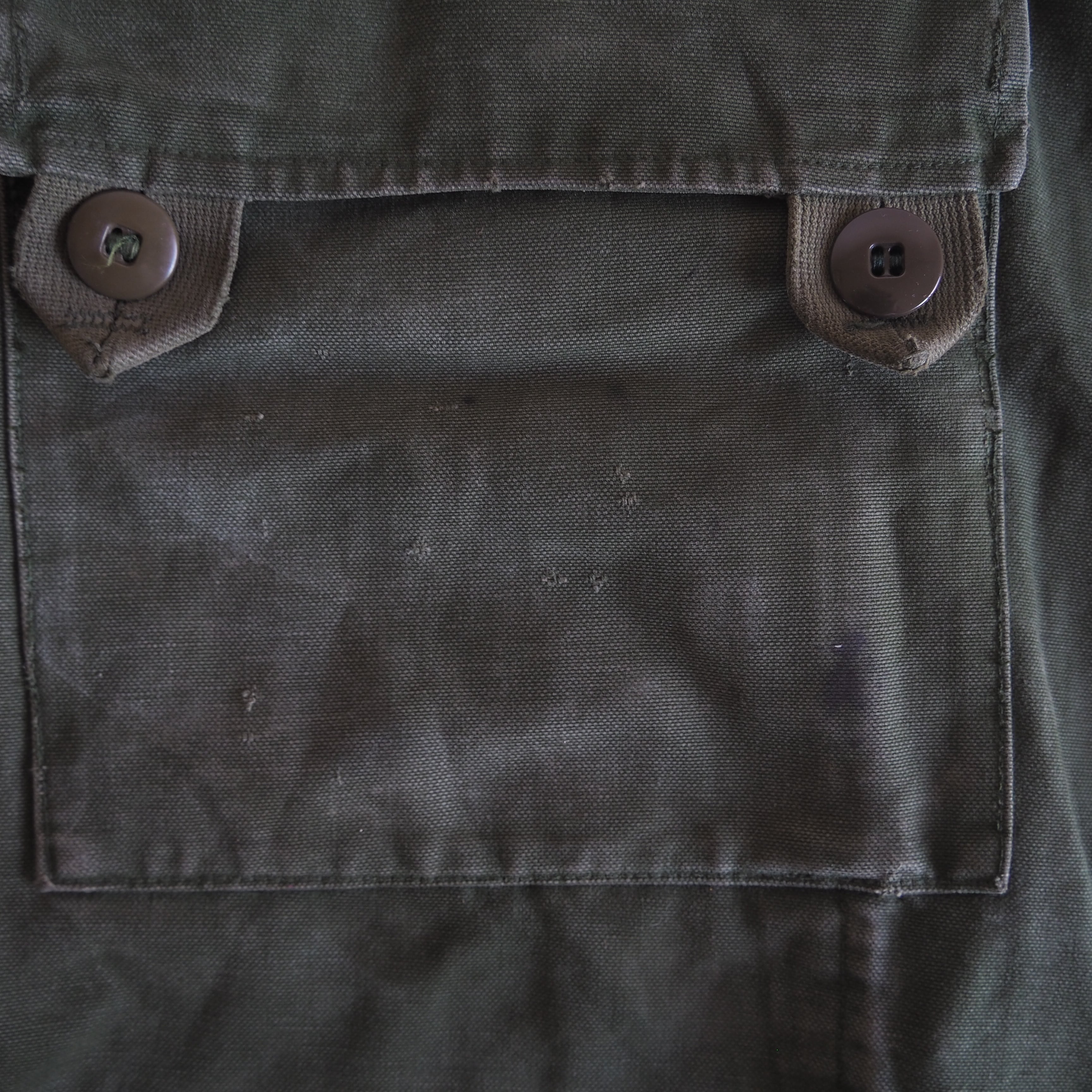 風の侵入を防ぐ為に左身頃が覆いかぶさる様に設計され、さらには内側もボタンで留めることが出来るダブルブレスト仕様。更に生地には厚手のコットンキャンバス地が採用されているため断熱性、保温性は申し分ございません。