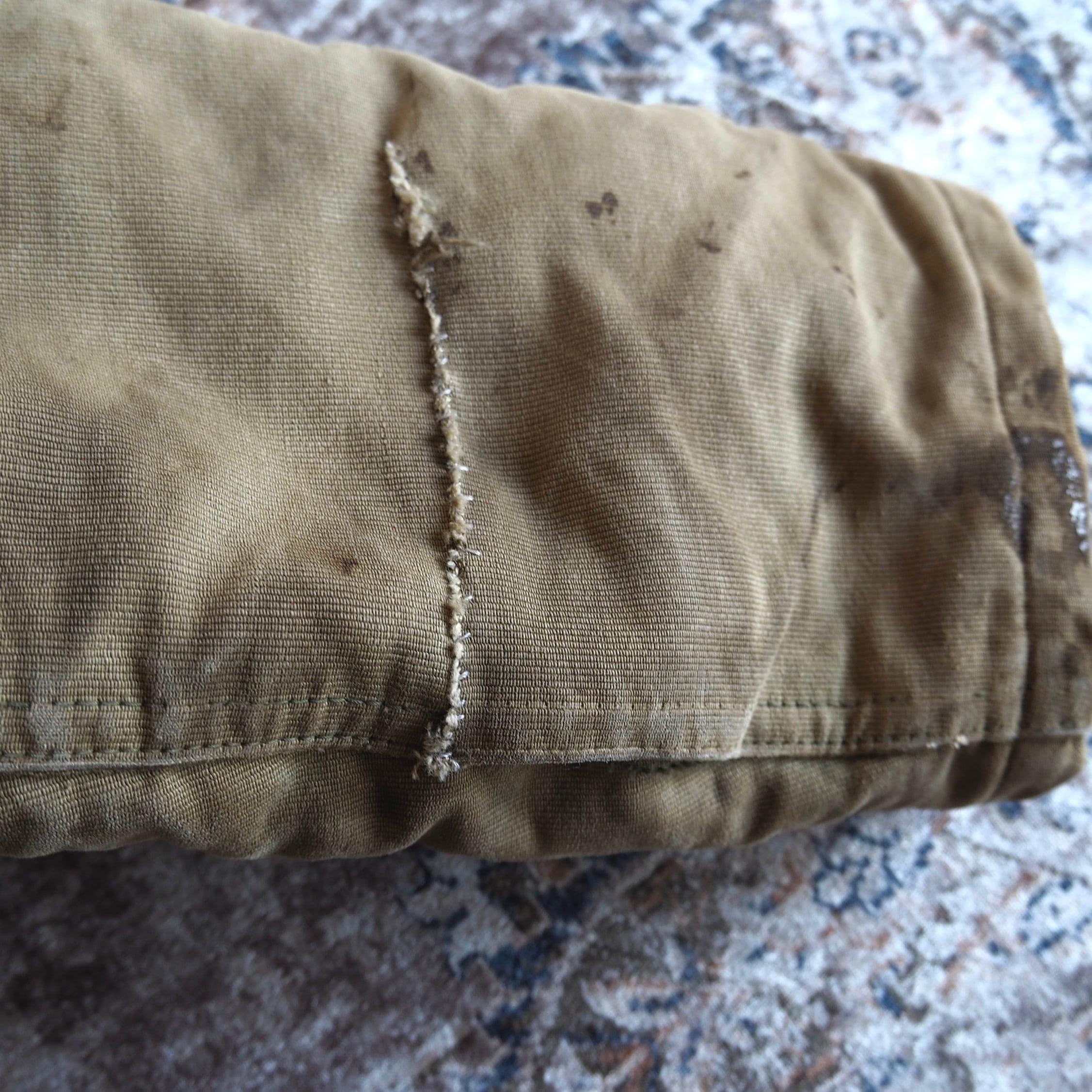状態といたしましては、右フロント左袖口部分に汚れ、左腕部分にリペア跡がございます。
