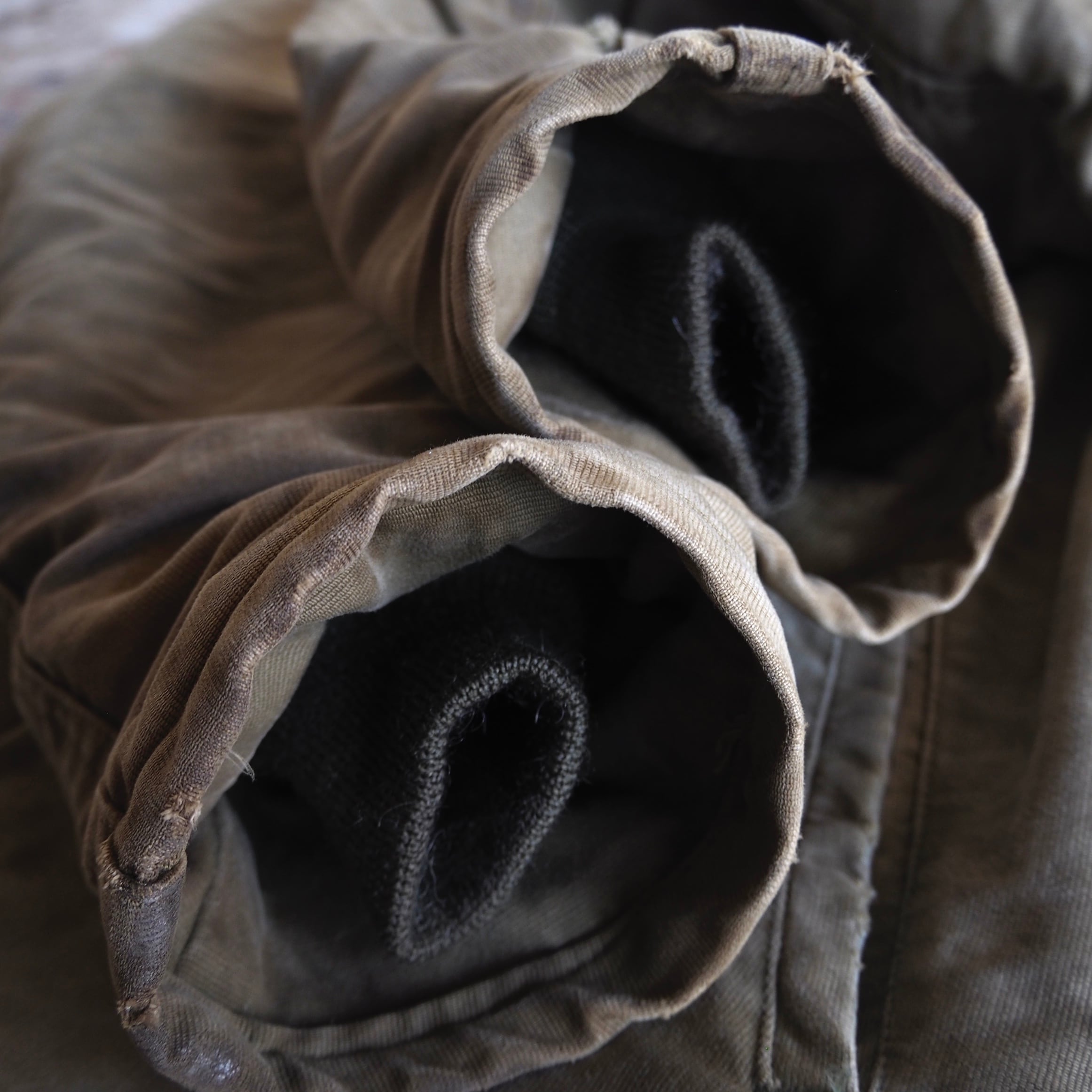 ライナーには当時、最高級素材で保温性の高いアルパカが使われており襟裏に設られたチンストラップを閉めていただければ、ほぼ風を通さず真冬の寒さにも耐えられる仕様。