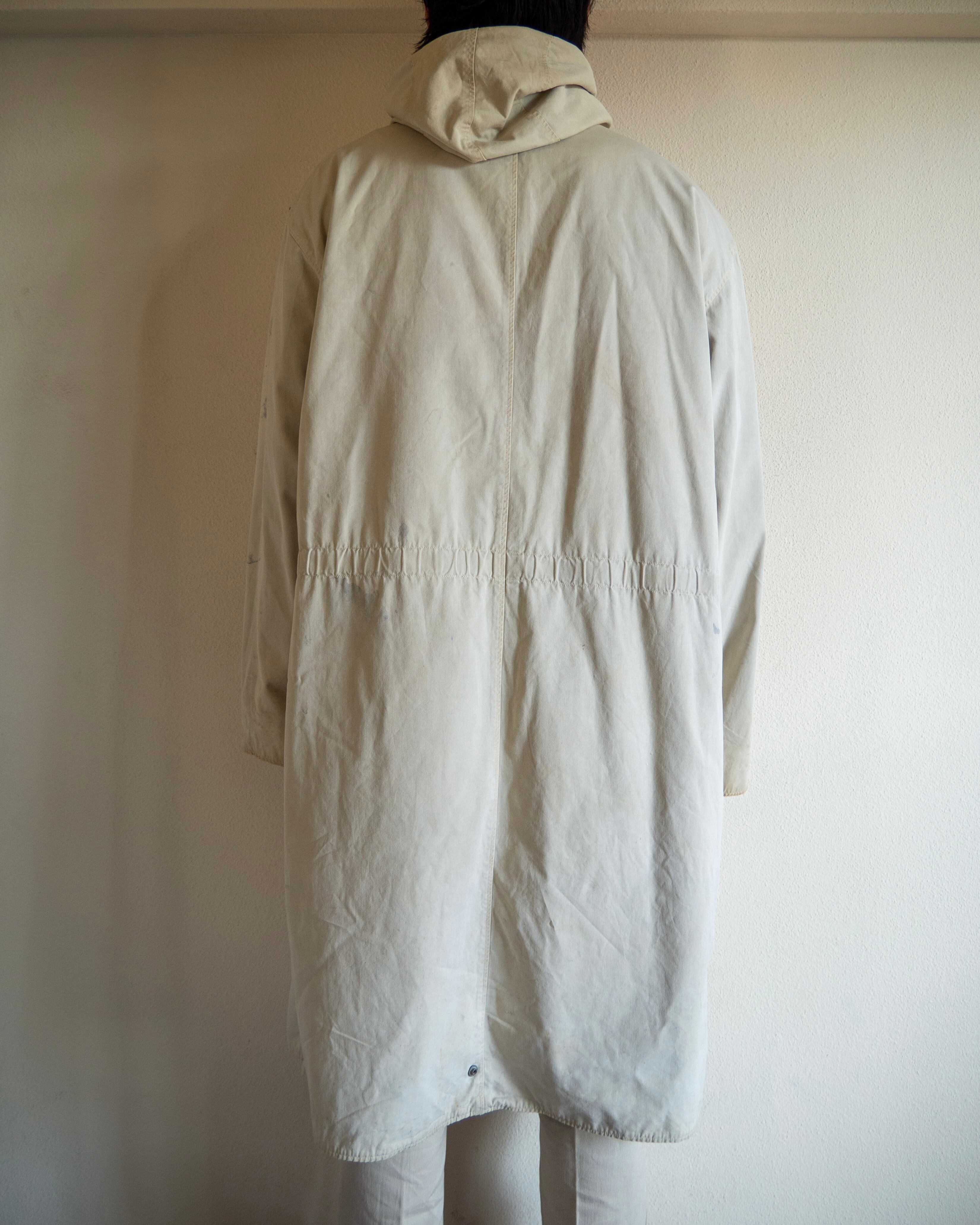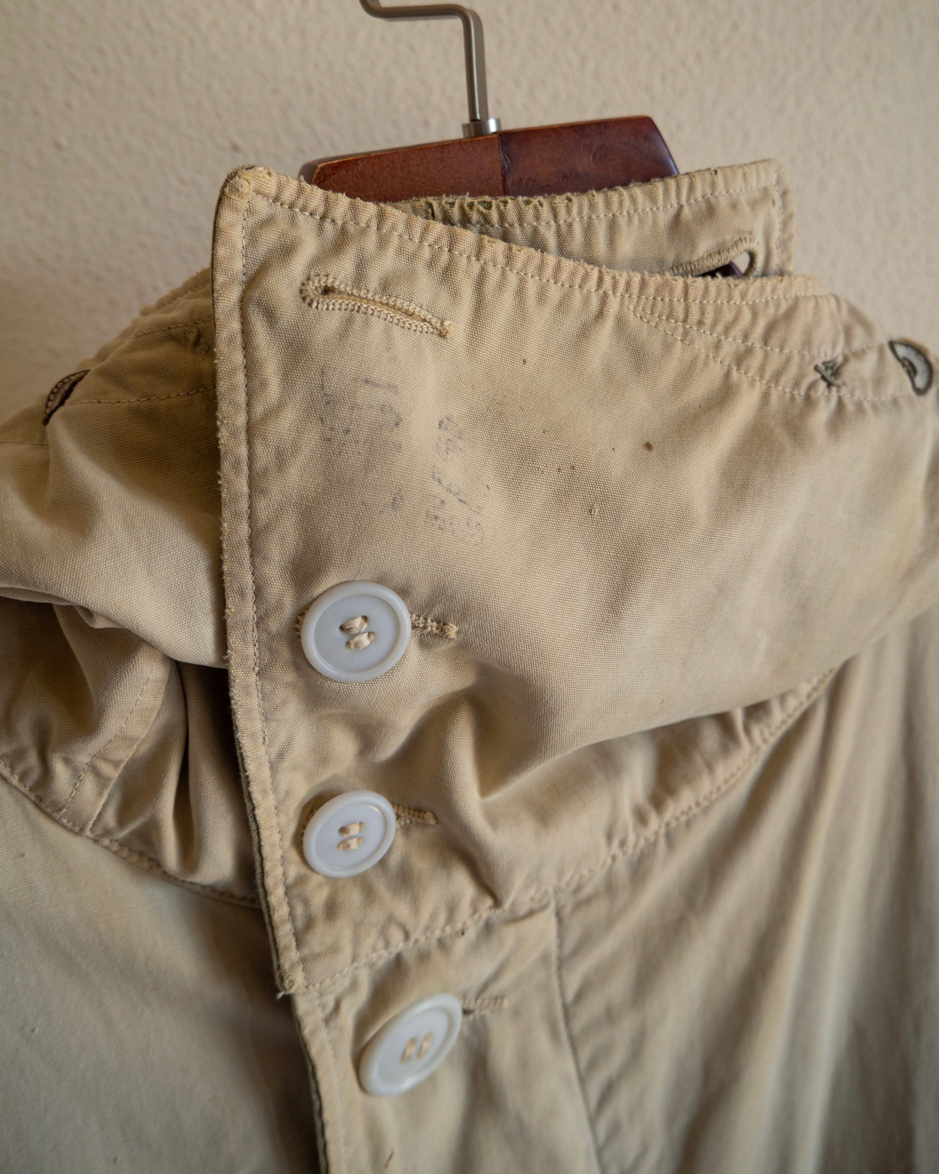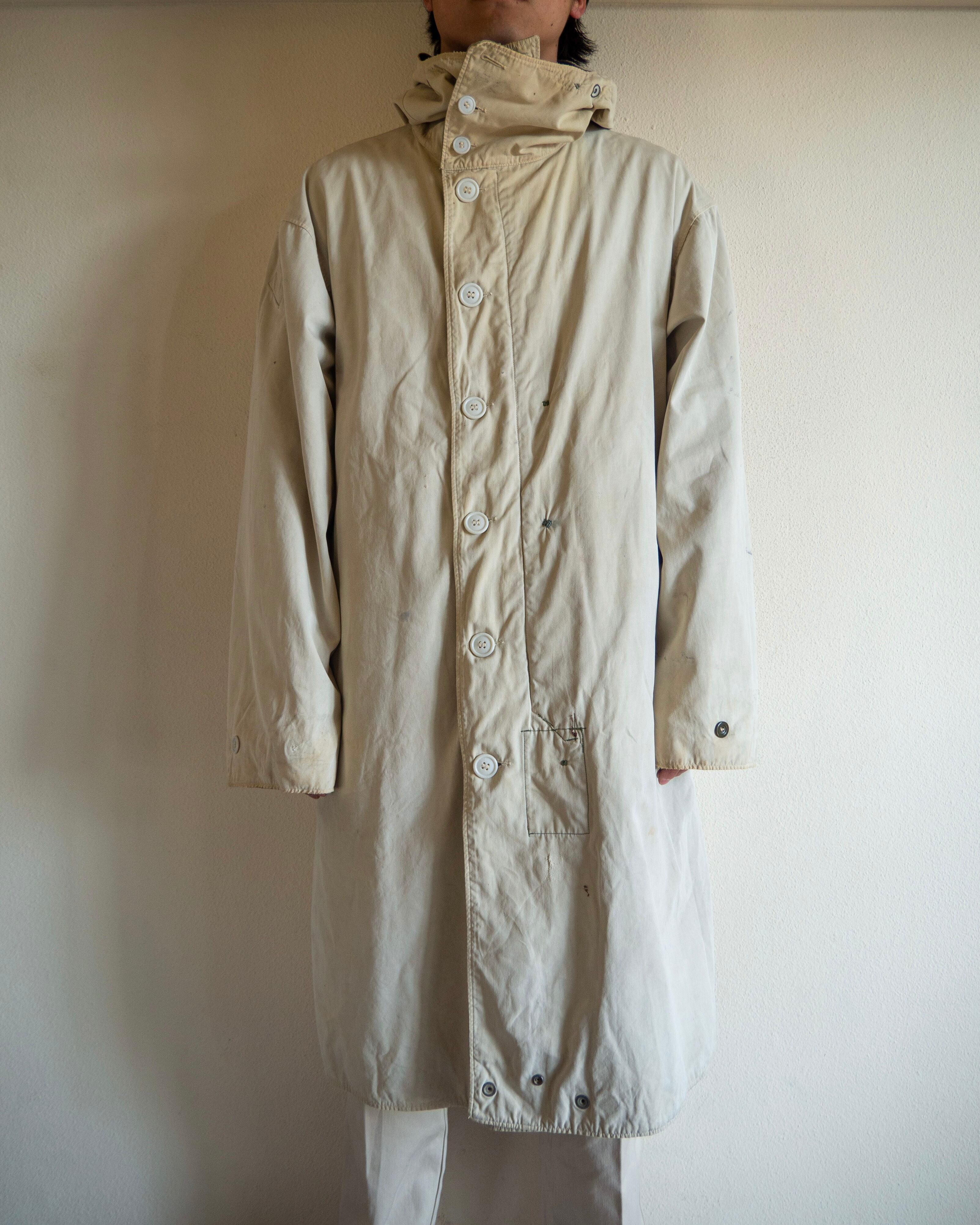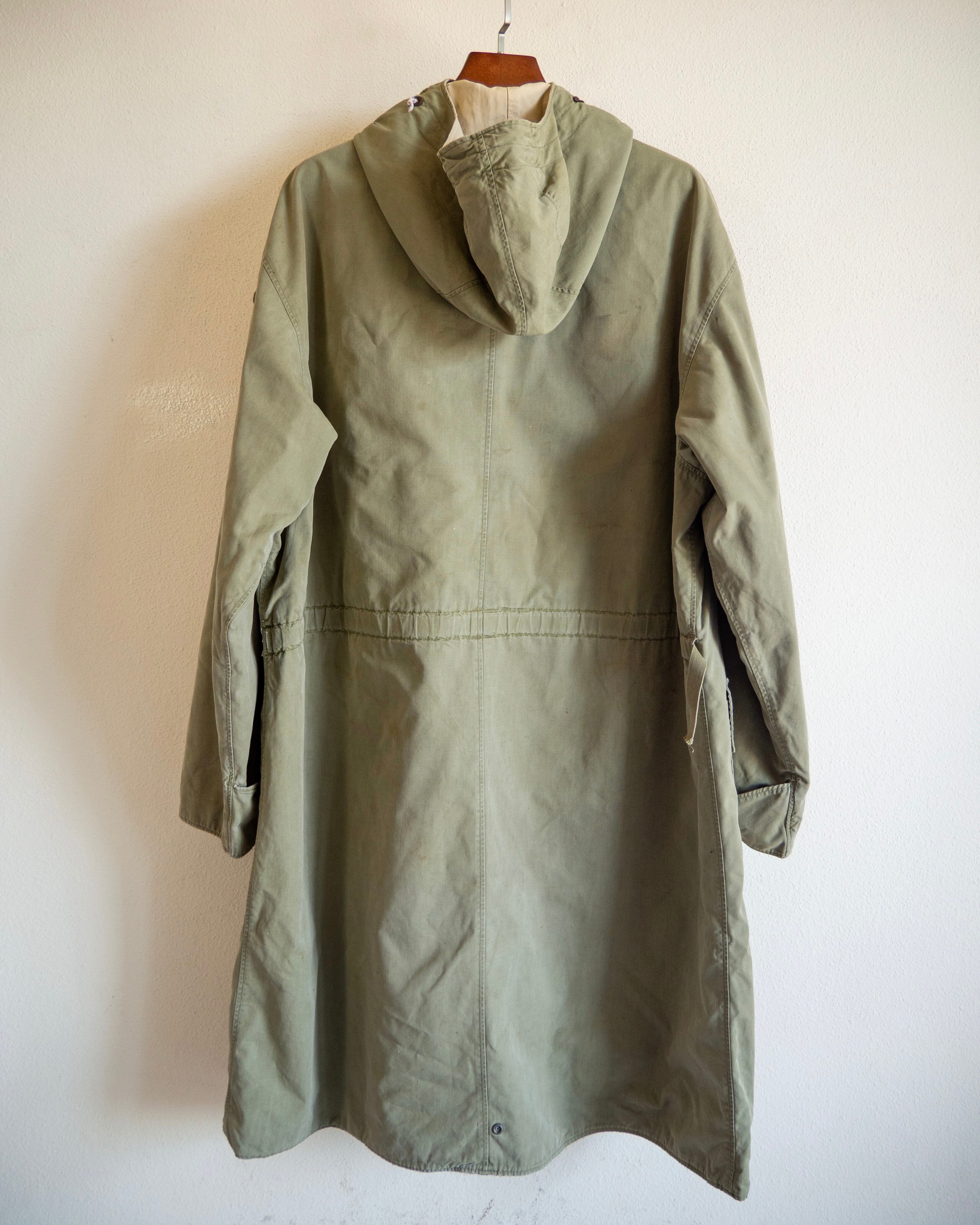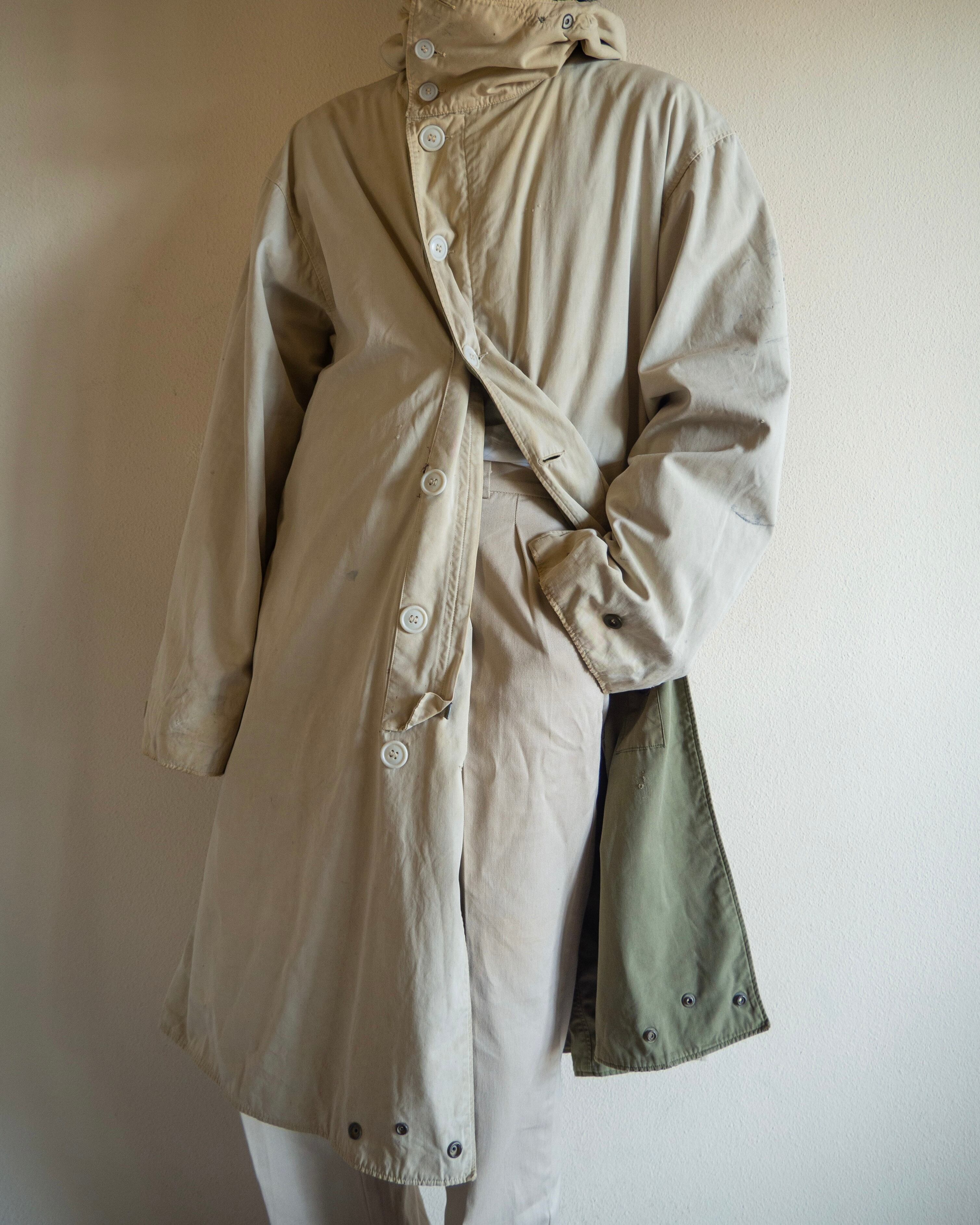 オーバーコートとして使用されていたため、ジャケットの上からでも羽織ることの出来るようにと設計された大きめの作り。フロントには大容量のフラップポケットに、斜めに入るハンドウォーマーポケットが付属。