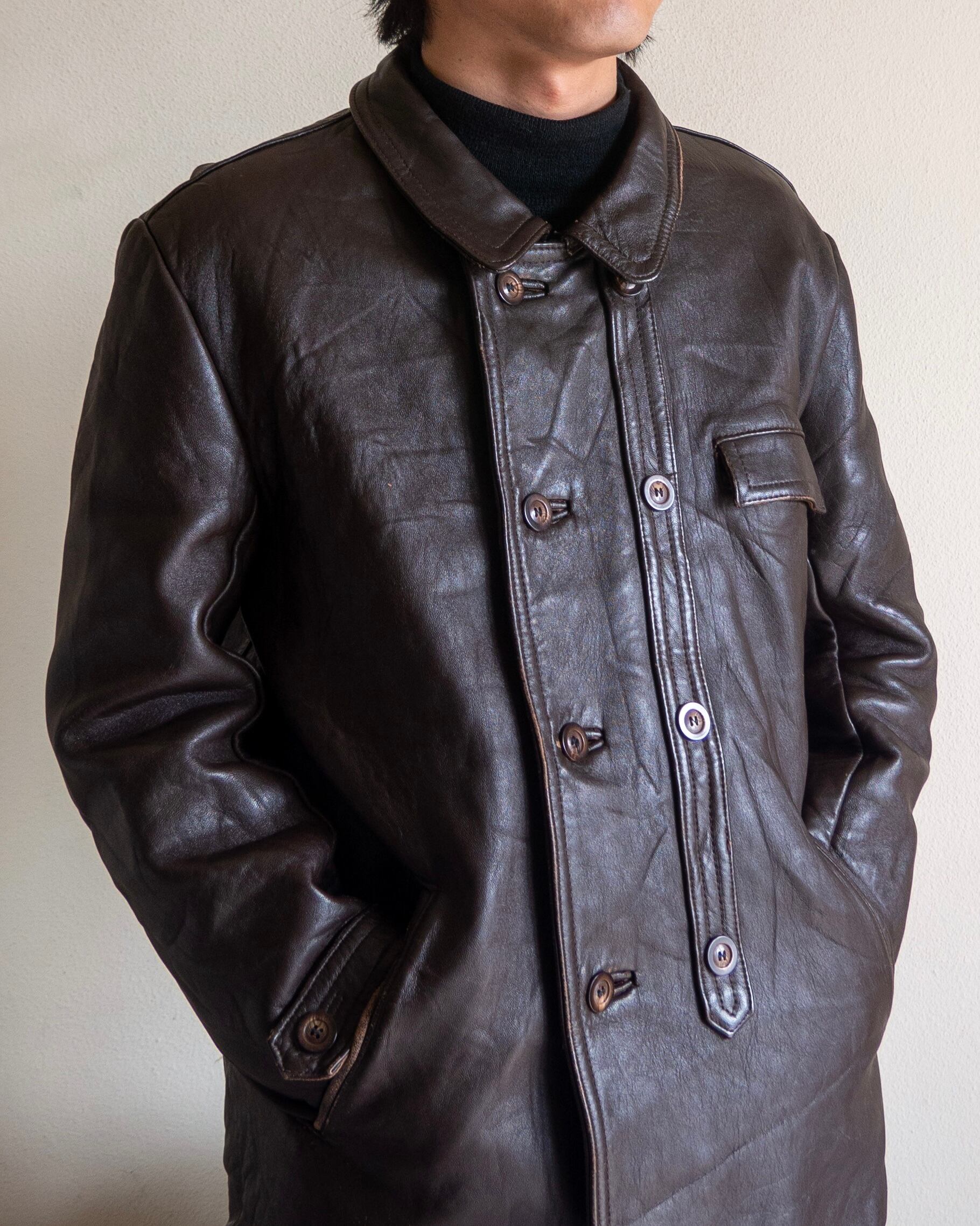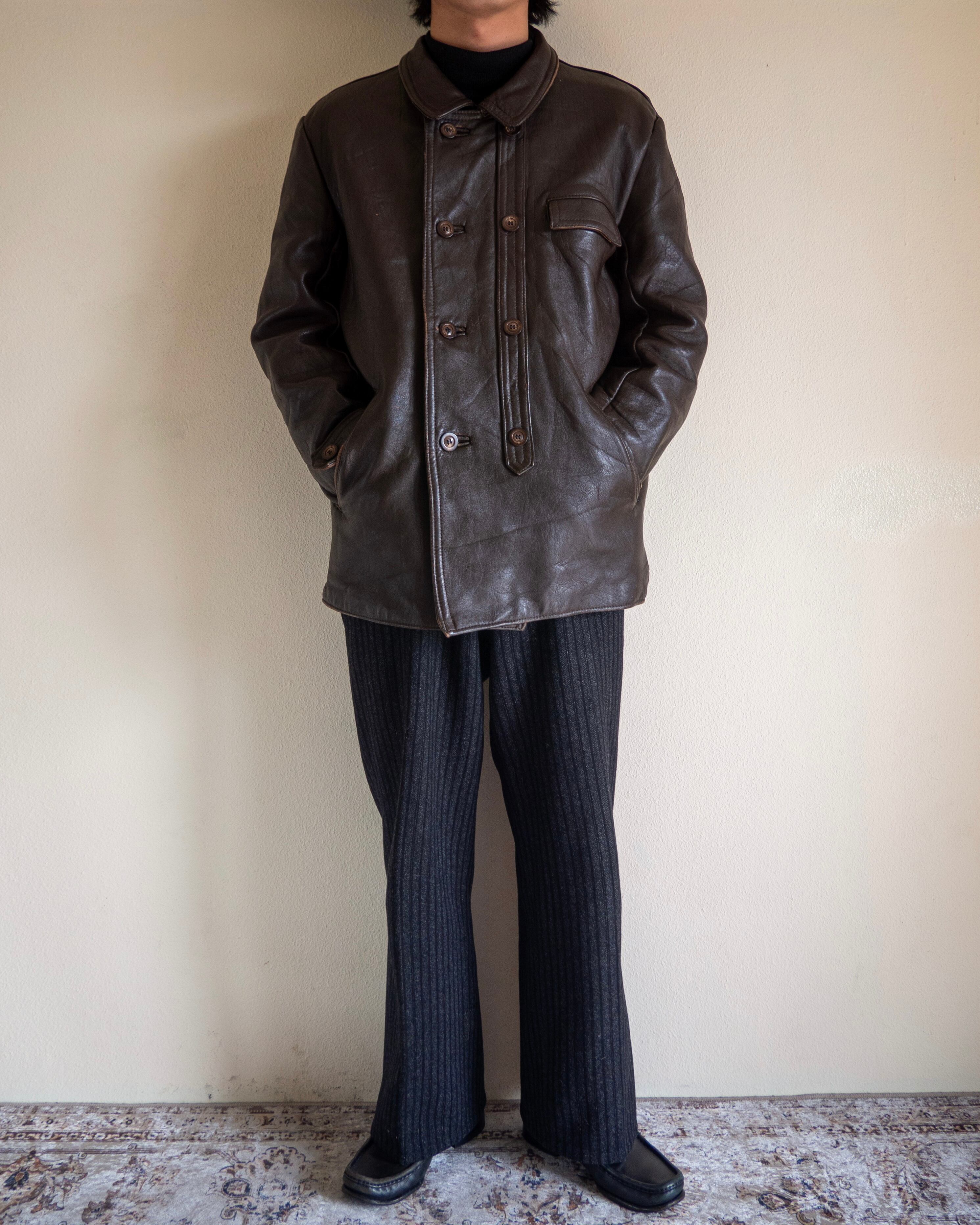 フランスの当時の国有企業や行政機関などの支給品であったダブルブレスト仕様のレザージャケットのご紹介です。