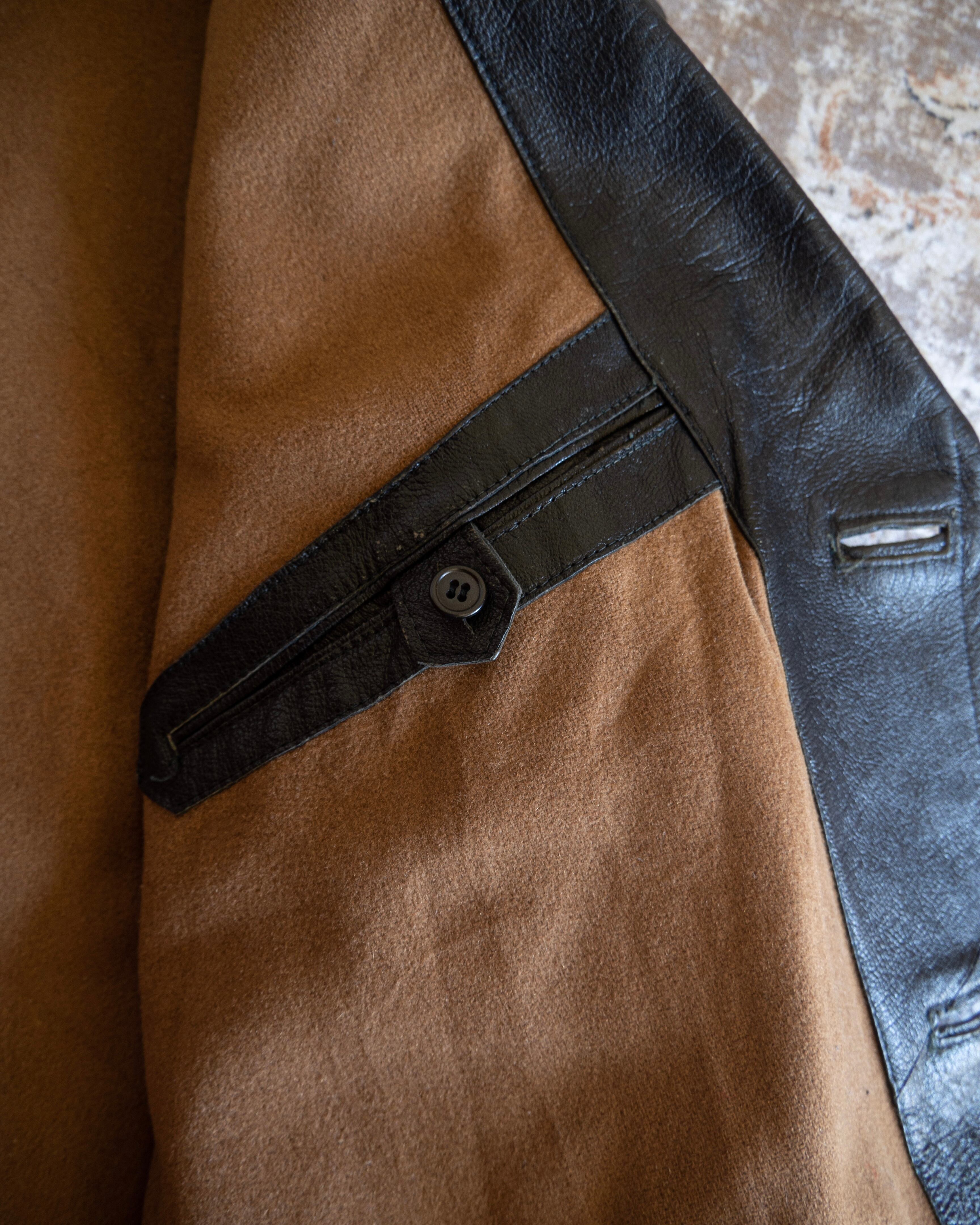 1950s Italy Goat Skin Double Breasted Leather Car Coat