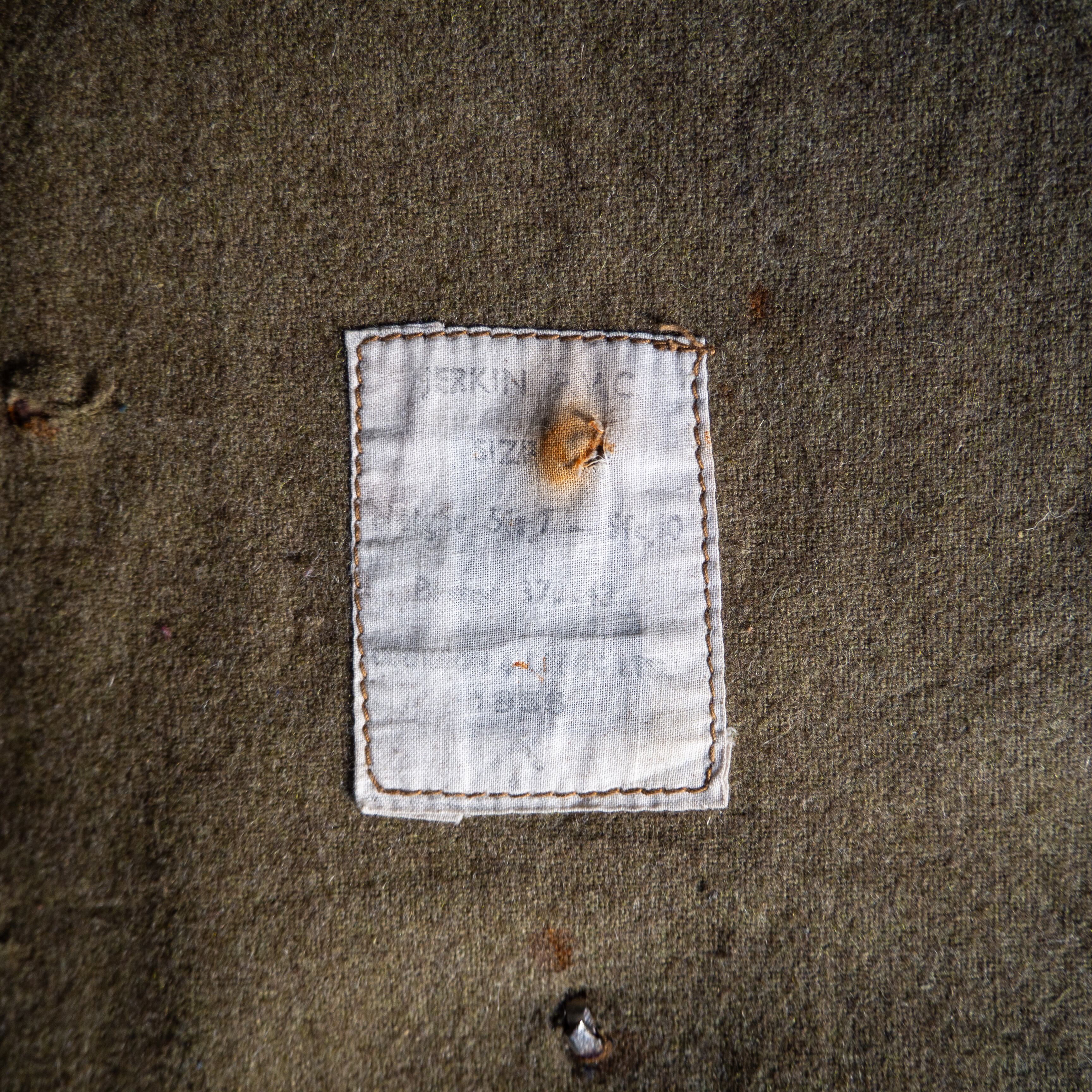 イギリス軍にてWW I期に開発され、主にコートなどの着丈の長い衣類の上から保温性を高める為のオーバーベストとして着用されていた<Jerkin Leather Vest>