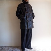 首元まで並ぶどっしりとしたダブルブレスト仕様の前合わせや、襟を立てるためのチンストラップは突風に立ち向かうパイロットやバイカーのための防風性を高めた作り。厚みのあるウール生地のライニングによって同時に保温性も確保された、まさに極限の環境で戦う男達のために生み出されたライディングウェア。