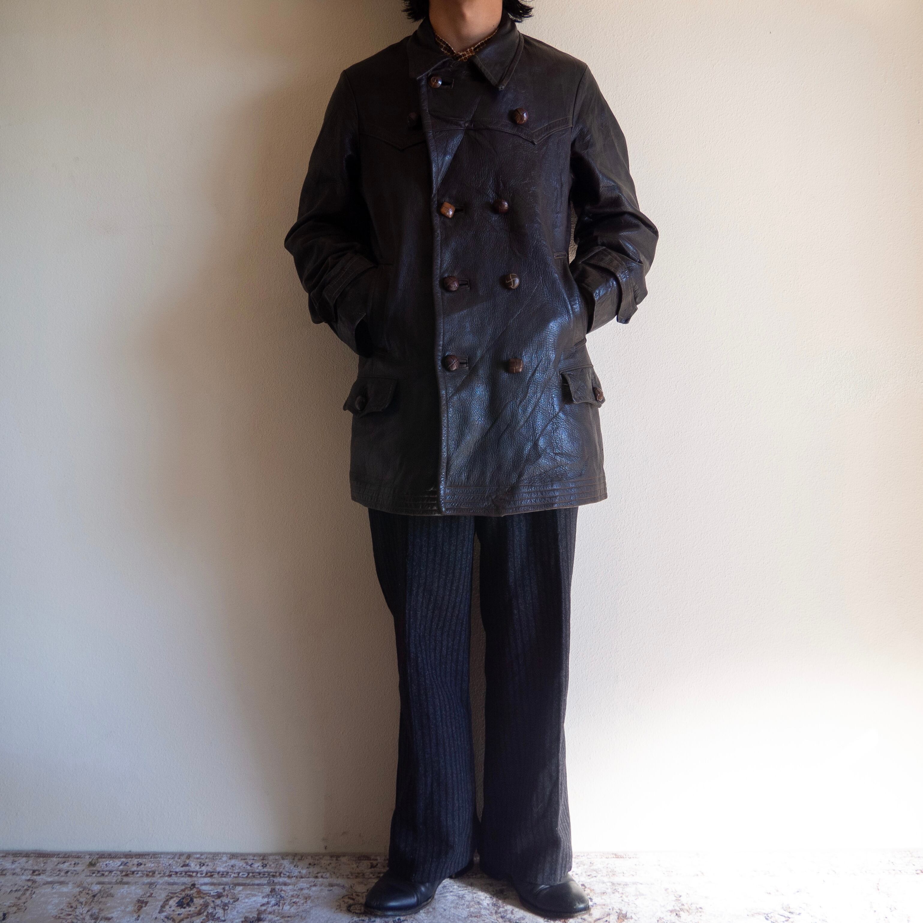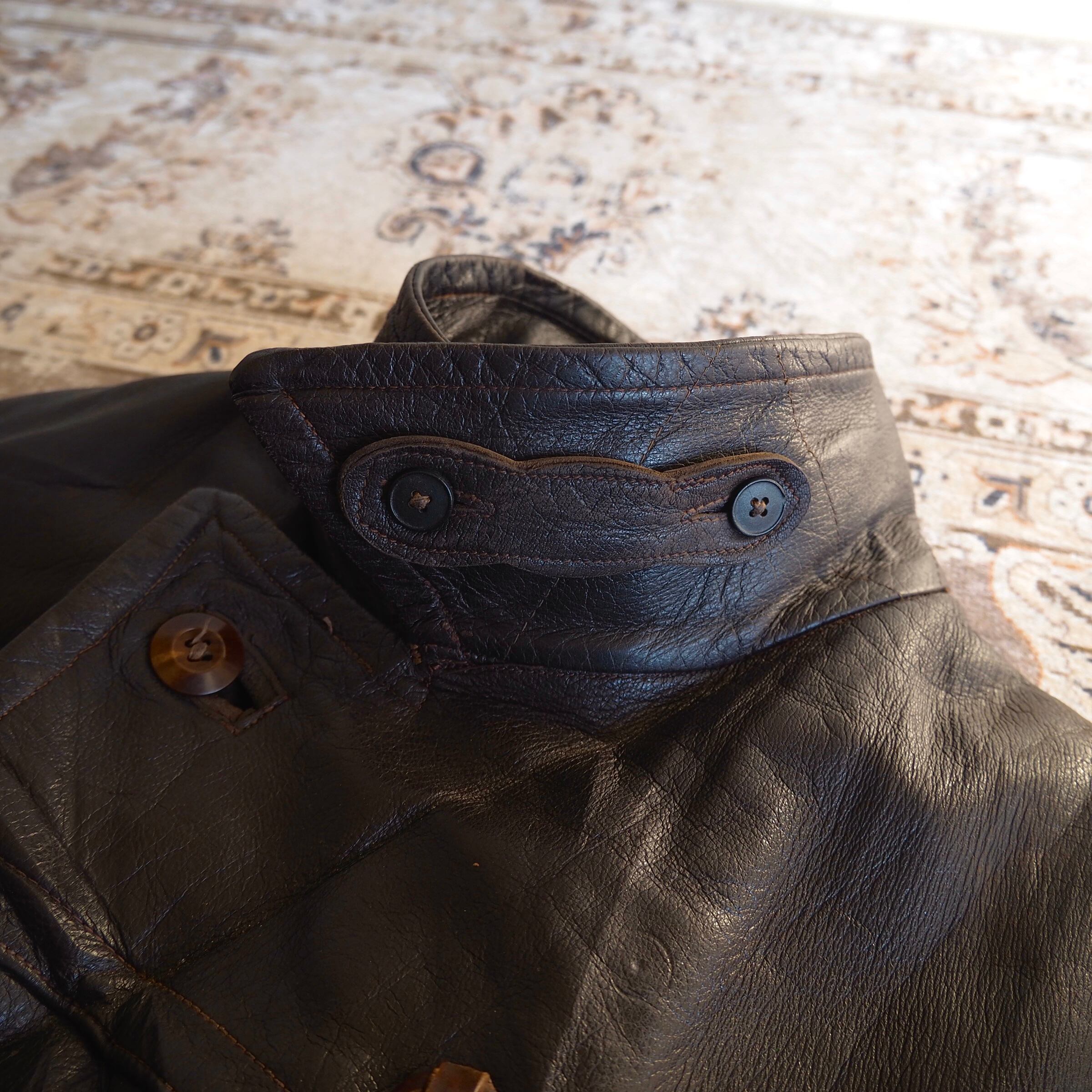 デザイン性のためか、機能性のためか、襟、胸、腕、脇、アーム、ポケット、左右バックヨークとあらゆる部位で生地を切り替える贅沢ぶり。物資不足の当時、レザーは非常に希少であったはずでしょうから、如何に当ジャケットが手の込んだ仕様であるかが窺えますね。