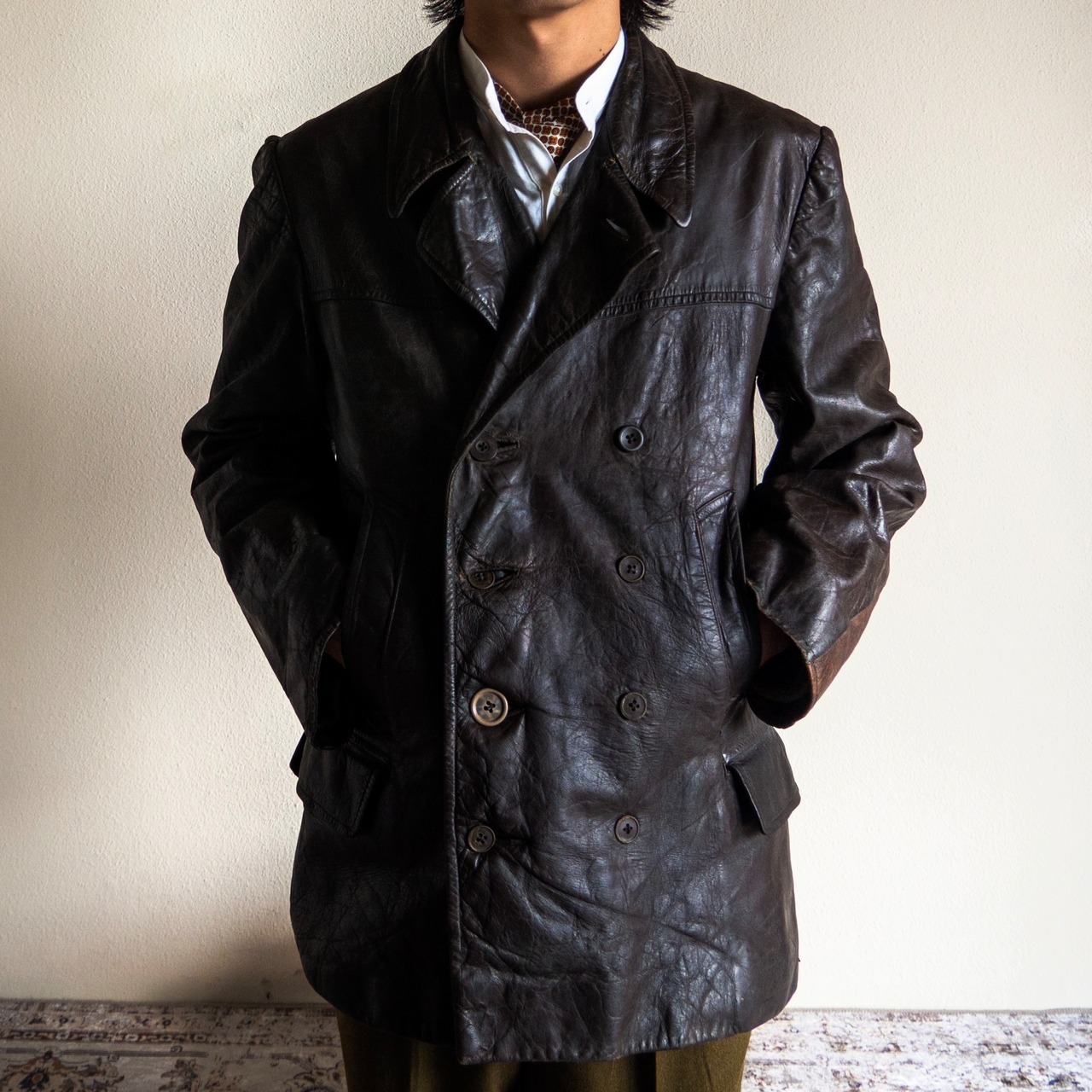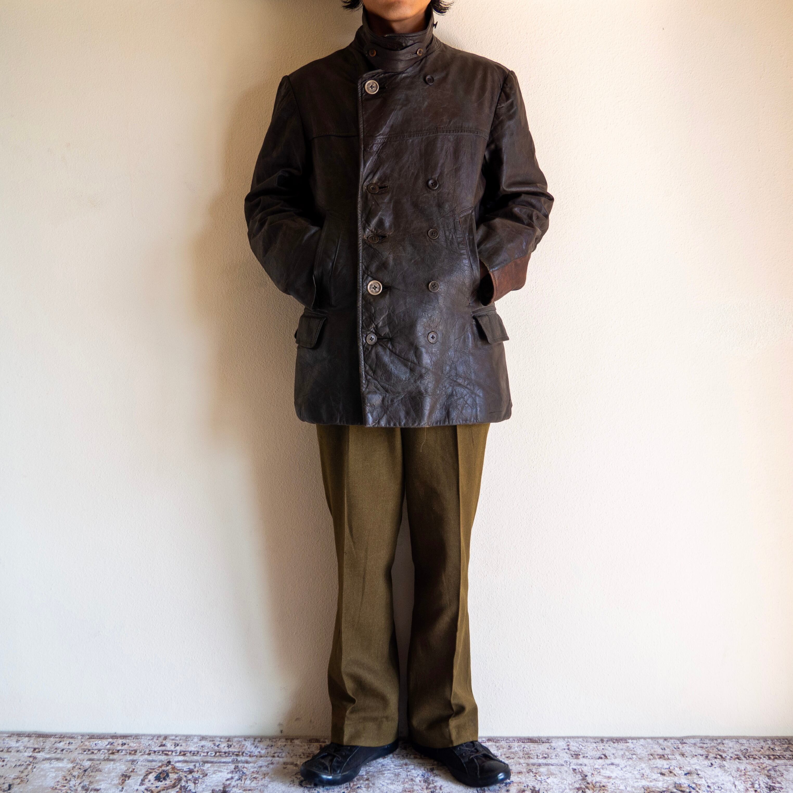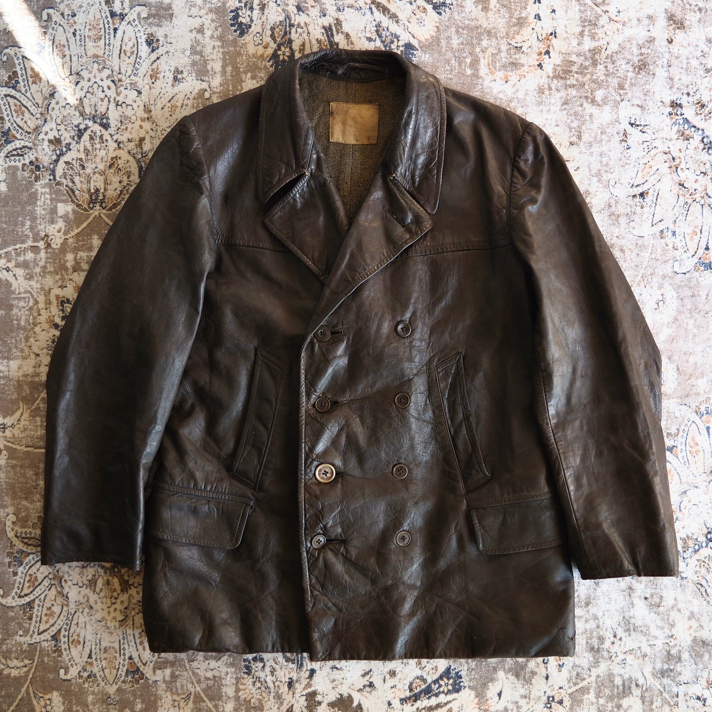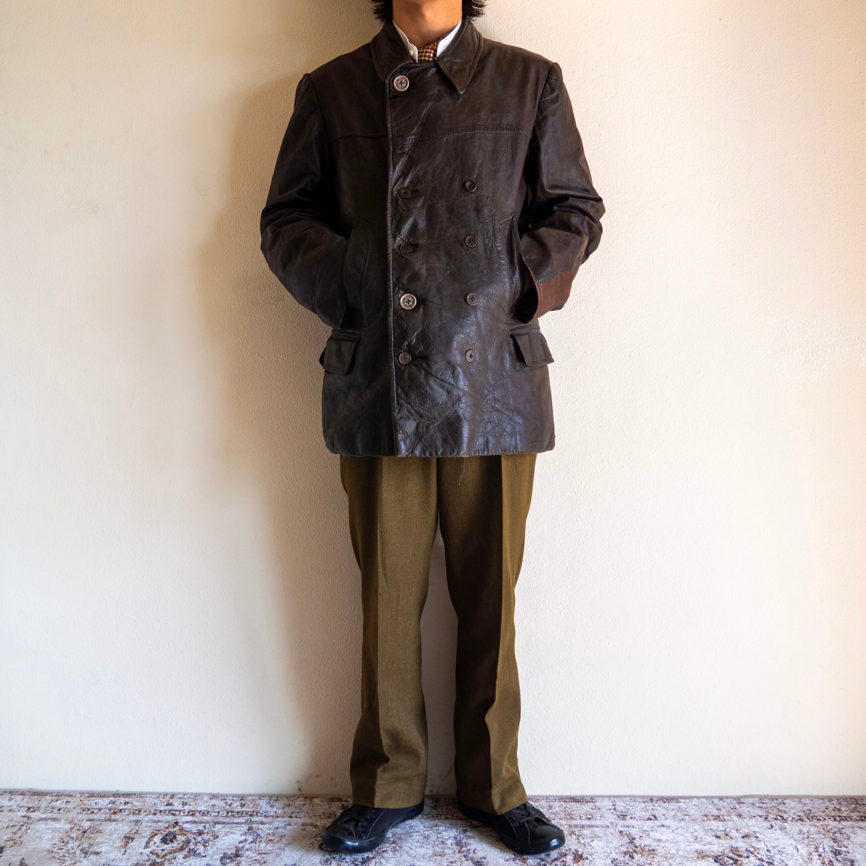 1940s German Army Horse Hide Double Breasted Leather Jacket