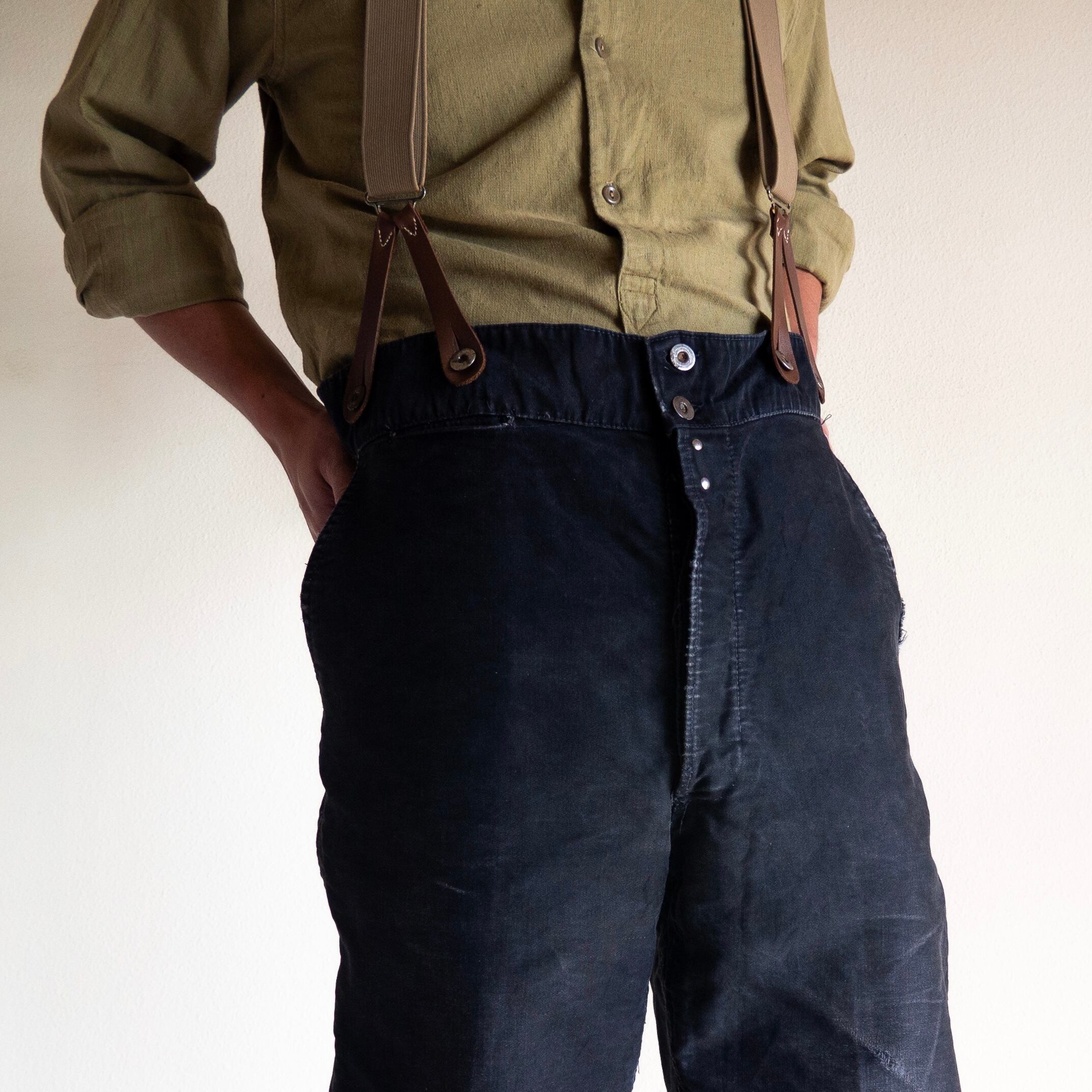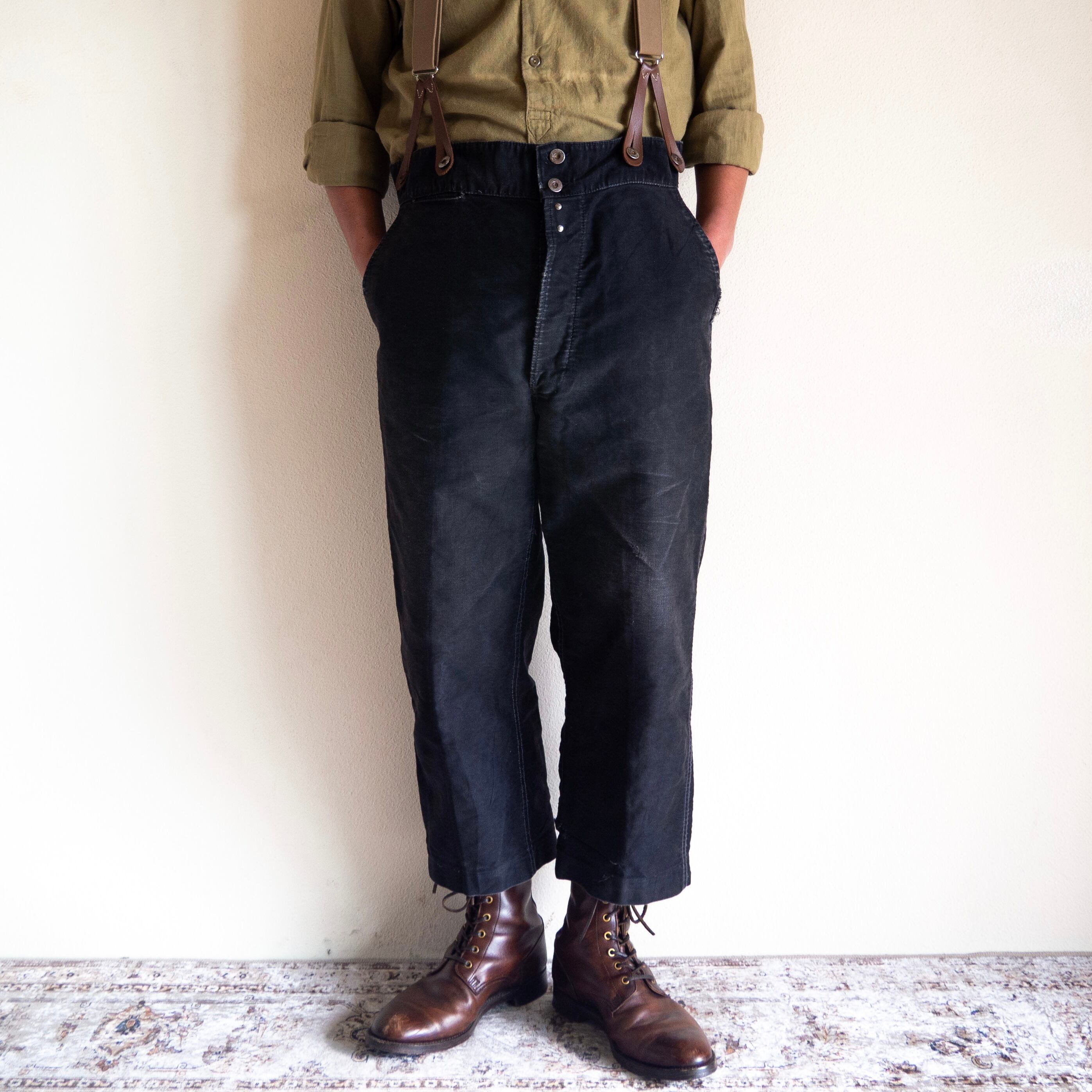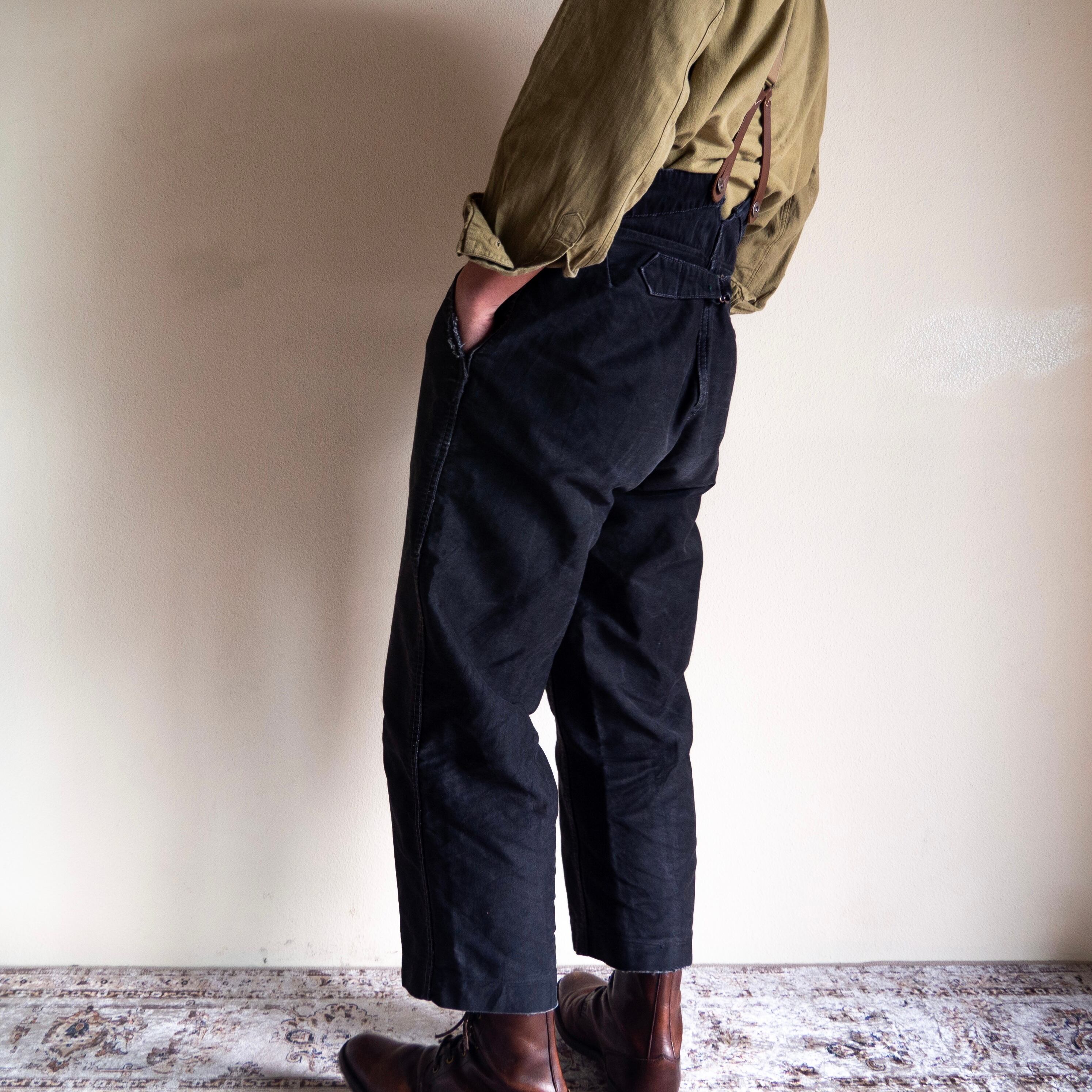 1940年代頃にフランスで着用されていたブラックモールスキン生地のワークトラウザーズのご紹介です。