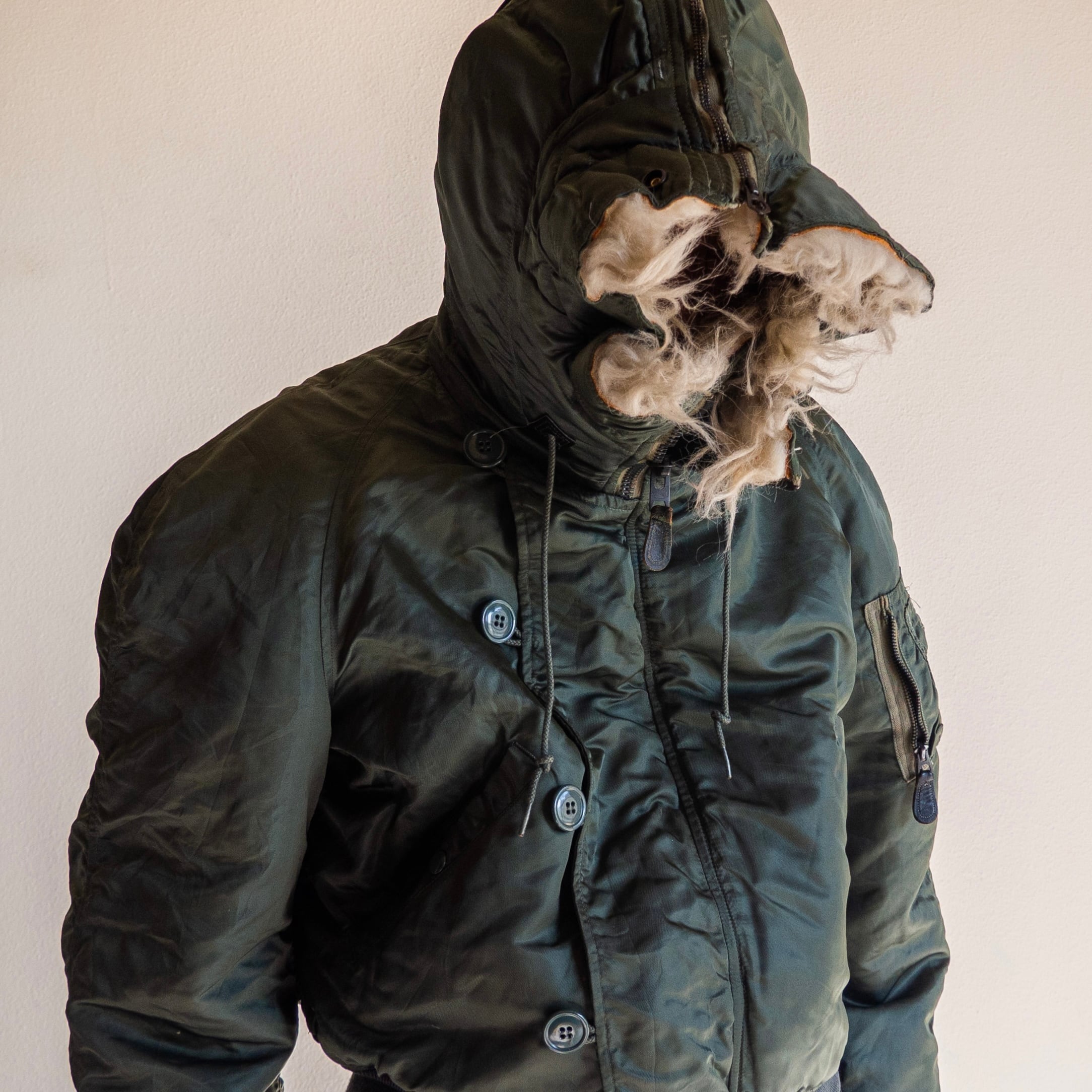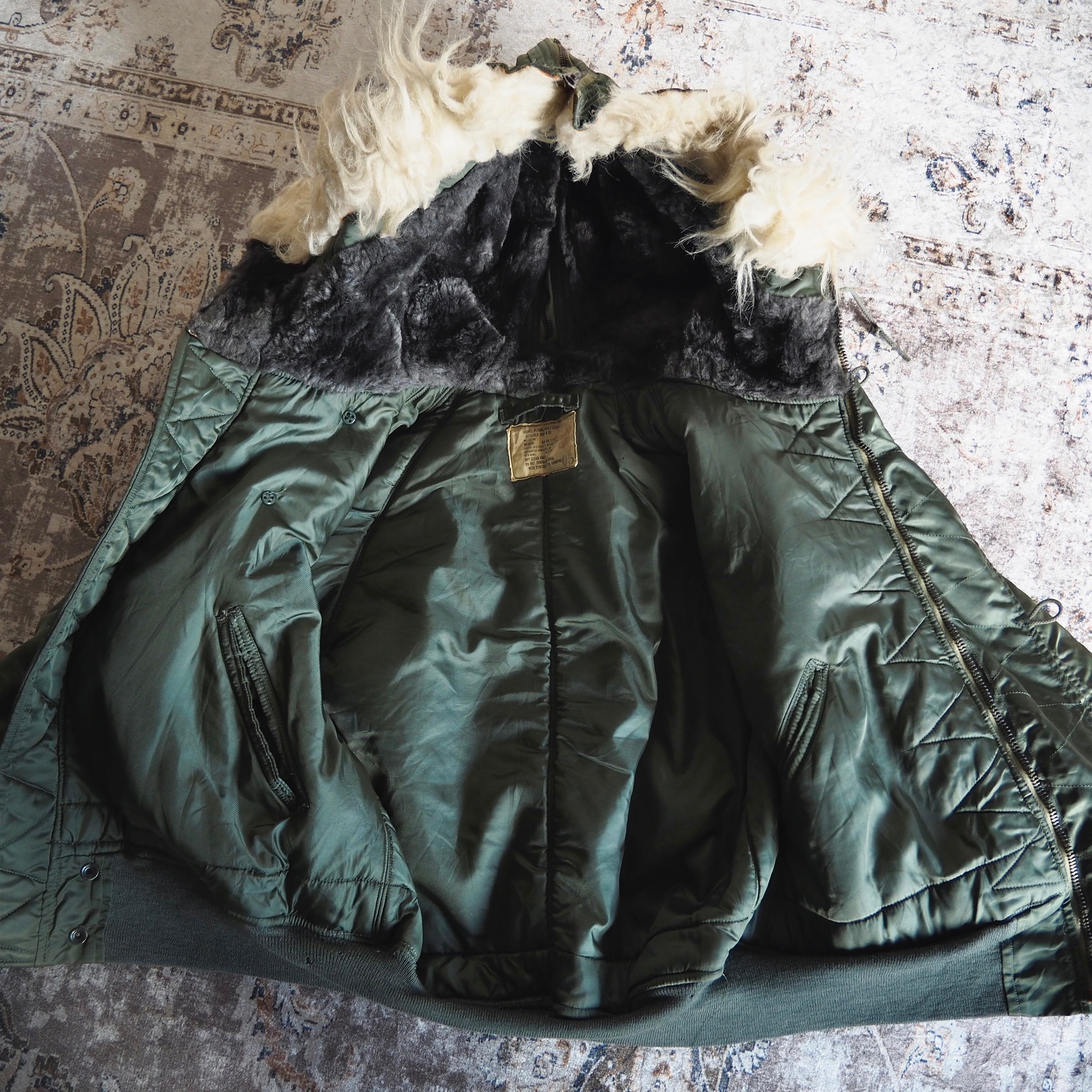 こちらは「6278E」ウールコットンのバッキングにシンシナテックファーが付属する、パイロット用としてのN-2Bの最終支給型。1970年代後半からは航空機の性能向上に伴い、素材が全て化学繊維に変更されミルスペックタグからも「FLYING」の文字が消えます。